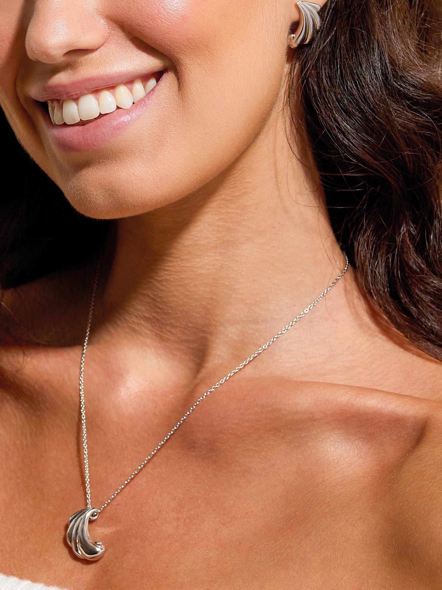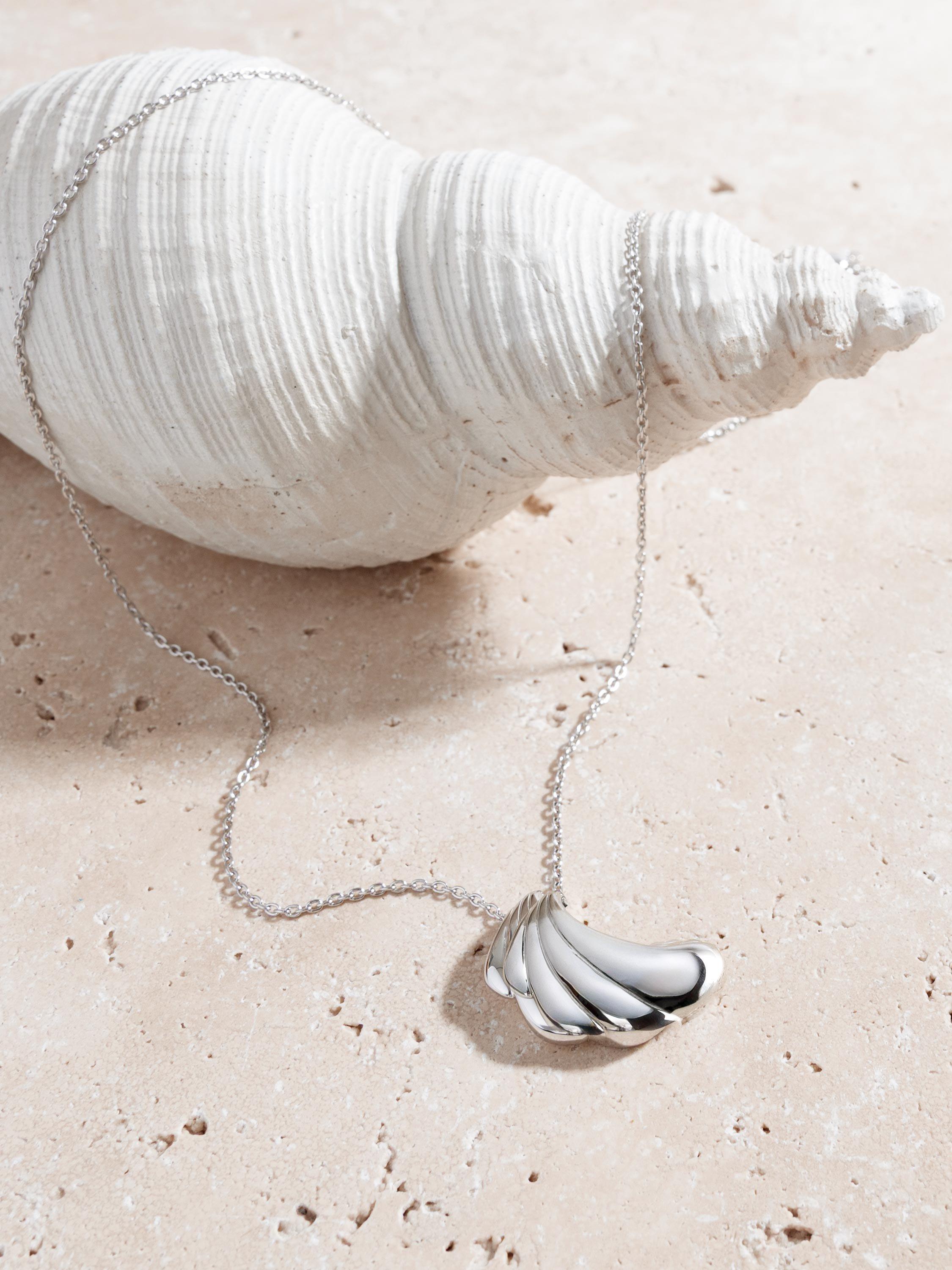 The Océane Shell Echo Grande Necklace captures the sweeping, fluid curves of the ocean in a bold and confident design. Crafted in Sterling Silver, its sculpted, elongated form flows in a smooth, continuous line, echoing the strength, grace, and natural rhythm of the sea. Polished to a brilliant high shine, this necklace creates a striking yet effortlessly wearable statement, balancing sculptural artistry with everyday elegance. With its flowing silhouette and ocean-inspired energy, it reinterprets the power and beauty of the waves, offering a modern, sophisticated piece that embodies movement, confidence, and timeless coastal charm.