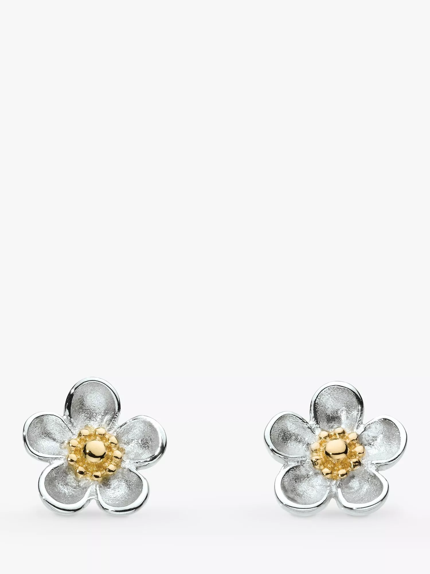 Whimsical by design, these classic and iconic Wood Rose sterling silver flower stud earrings are beautifully crafted with a sandblasted finish on the petals and a contrasting 18ct gold plated centre. For a small, delicate pair of stud earrings, these little beauties have received the true love and attention to detail owed to every piece of Kit Heath.