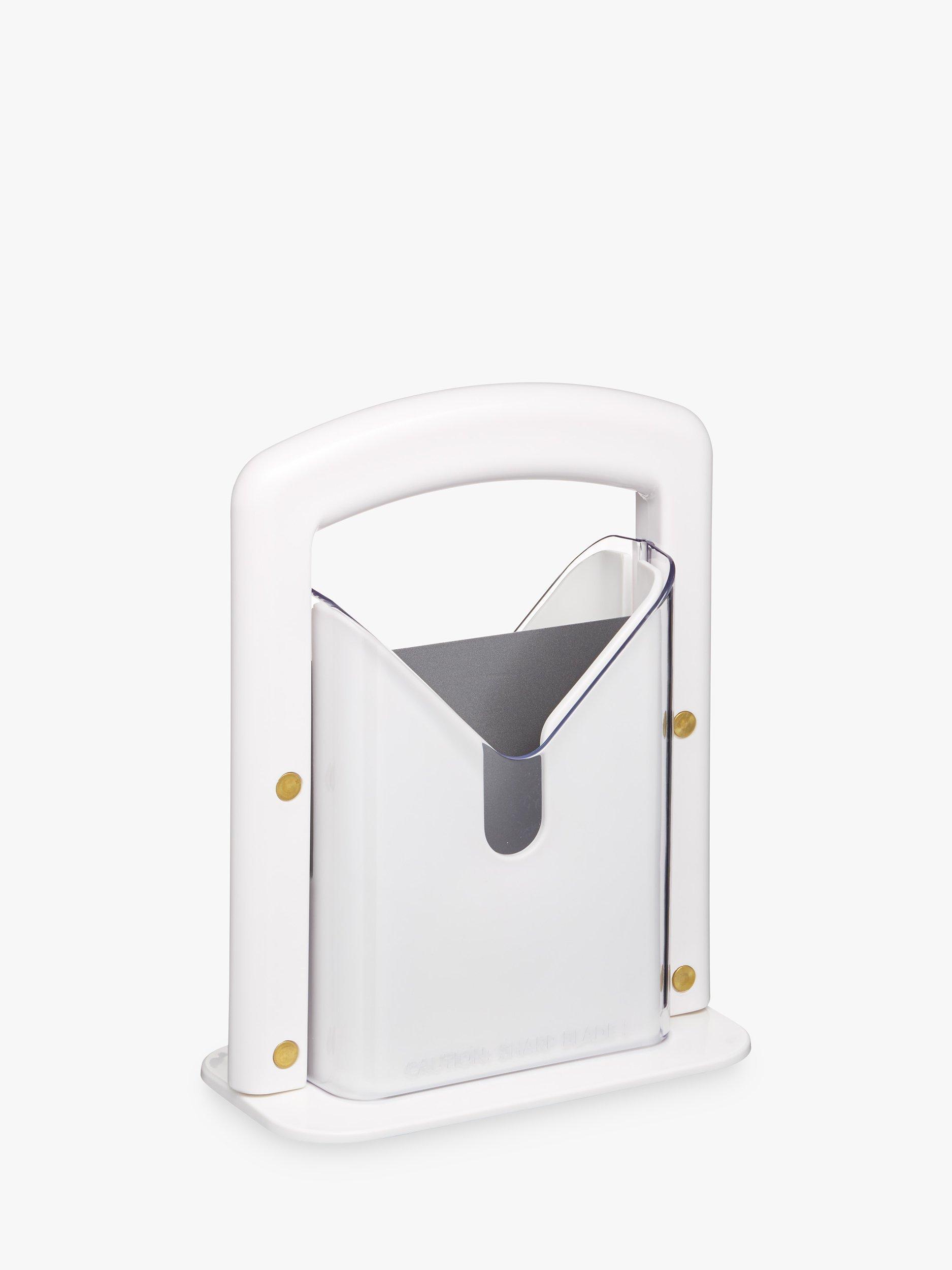 Quick and easy to use, this slicer cuts any size bagel neatly in half in a single stroke.