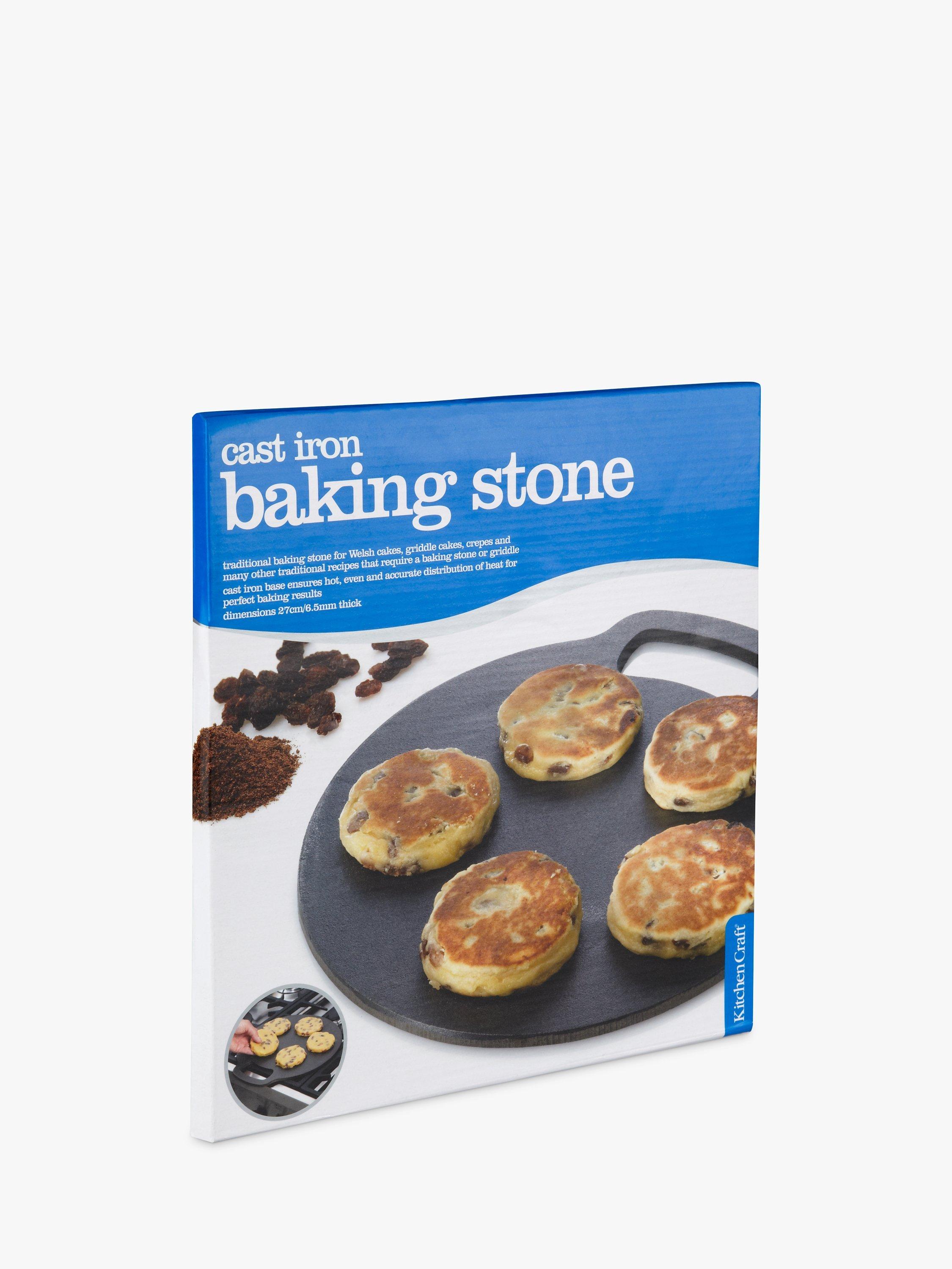 The traditional way of cooking Welsh cakes. This 27cm baking stone is made from cast iron, offering excellent heat retention while reducing hot spots. This helps to cook the food evenly wherever it is placed on the stone. Features an integrated handle for easy transport to and from the oven.