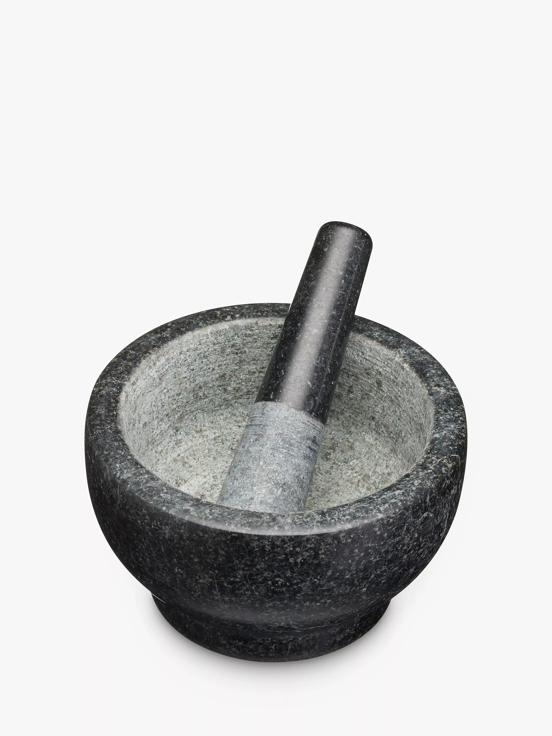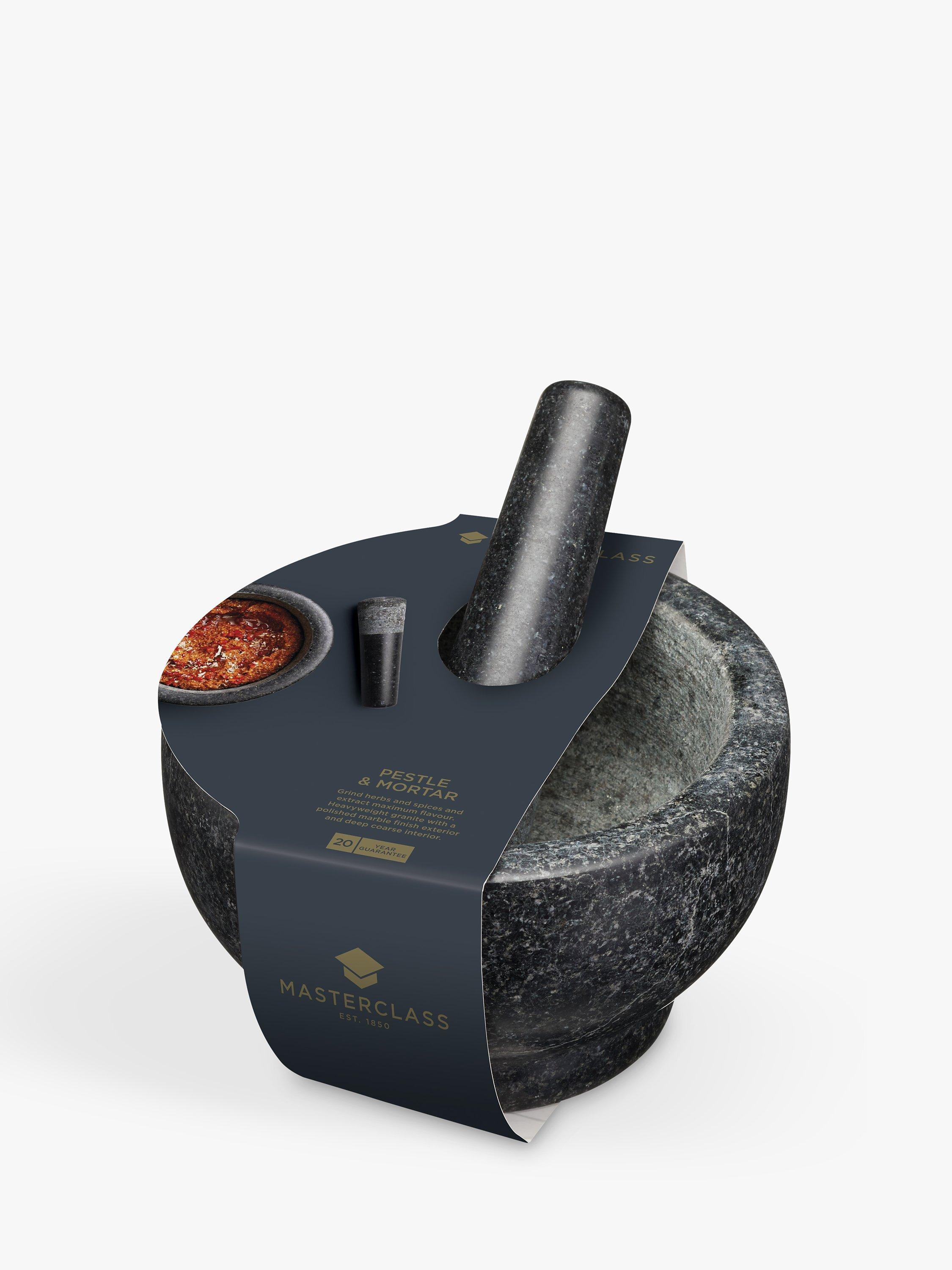 This MasterClass pestle and mortar from Kitchen Craft is stylish and made of granite with a textured interior that aids crushing and grinding herbs and spices to infuse flavour into your food. The quarry heavyweight granite is highly durable and keeps the set stable.