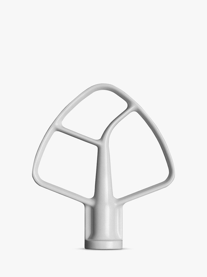 Used for normal to heavy mixtures such as cakes, frostings, cookies and mashed potatoes. The flexible edge design guarantees faster mixing, without stopping the motor and using a spatula. Coated metal with silicone side. Dishwasher-safe.