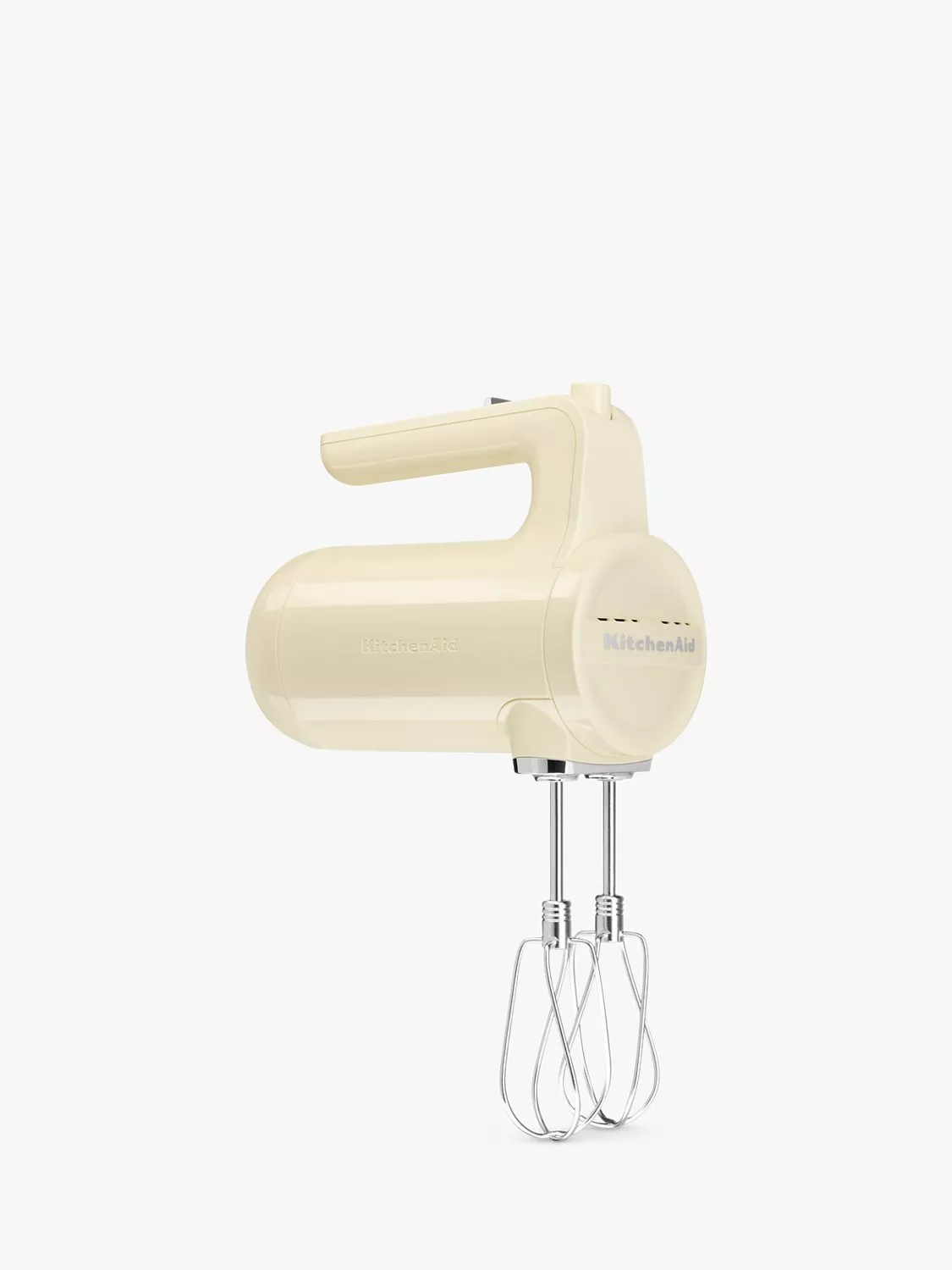 Go where ambition takes you with the cordless hand mixer from KitchenAid. It delivers all the power you expect, without the cord. Designed with a powerful rechargeable Lithium Ion battery, the new cordless hand mixer delivers optimal runtime and performance. You can make up to 200 cookies on a full charge* and the battery indicator light lets you know when you need to recharge. With 7 speeds, you can stir, mix, whip and blend your favourite recipes at the perfect speed. A soft-start feature means less splatter from ingredients and the self-standing design lifts the beaters off the work space for less mess. The convenient charger is included. This product is not designed to be used outside.