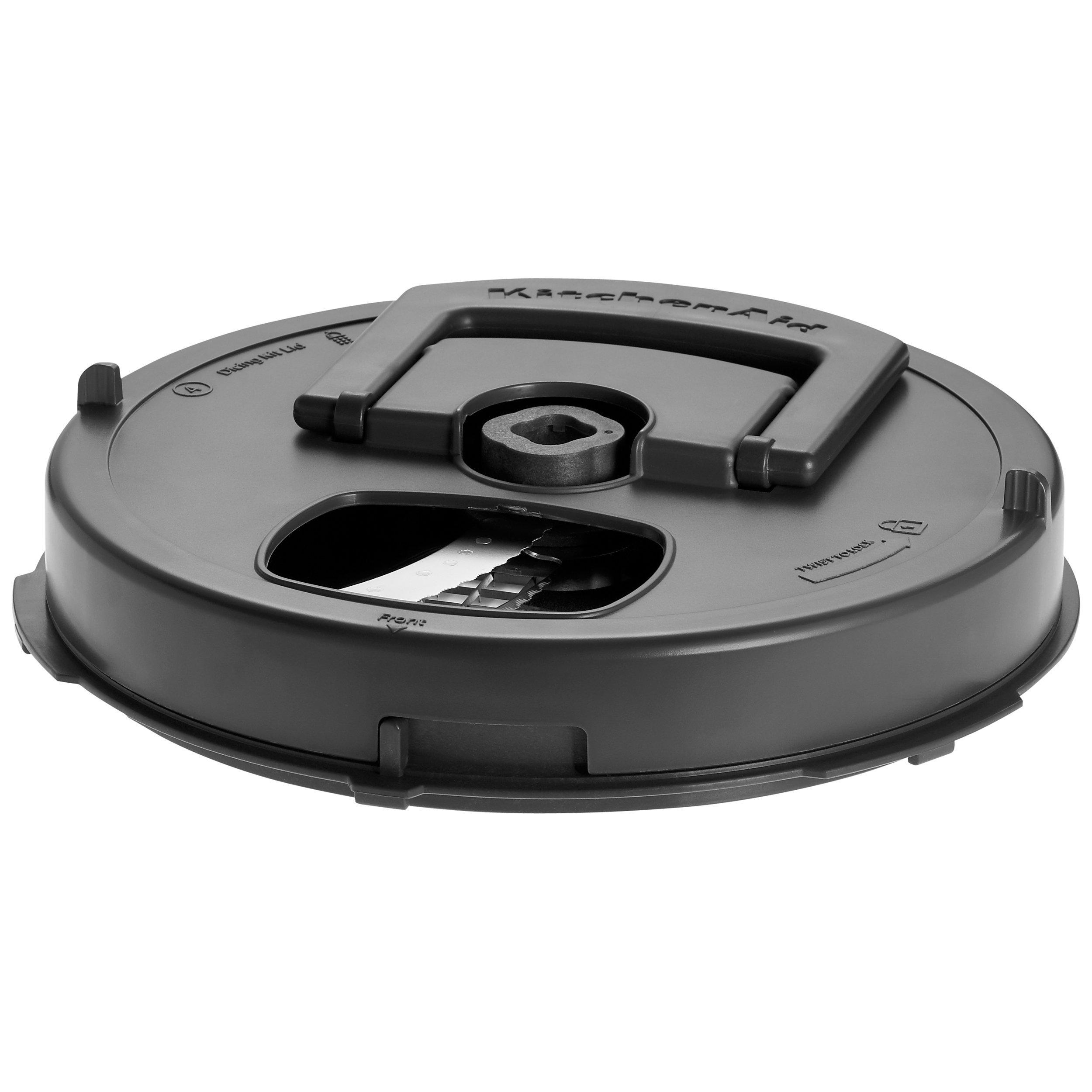 Externally adjustable slicing disc, dicing kit, 3 discs, 2 stainless steel blades and 1 dough blade with ultralight silicone seal