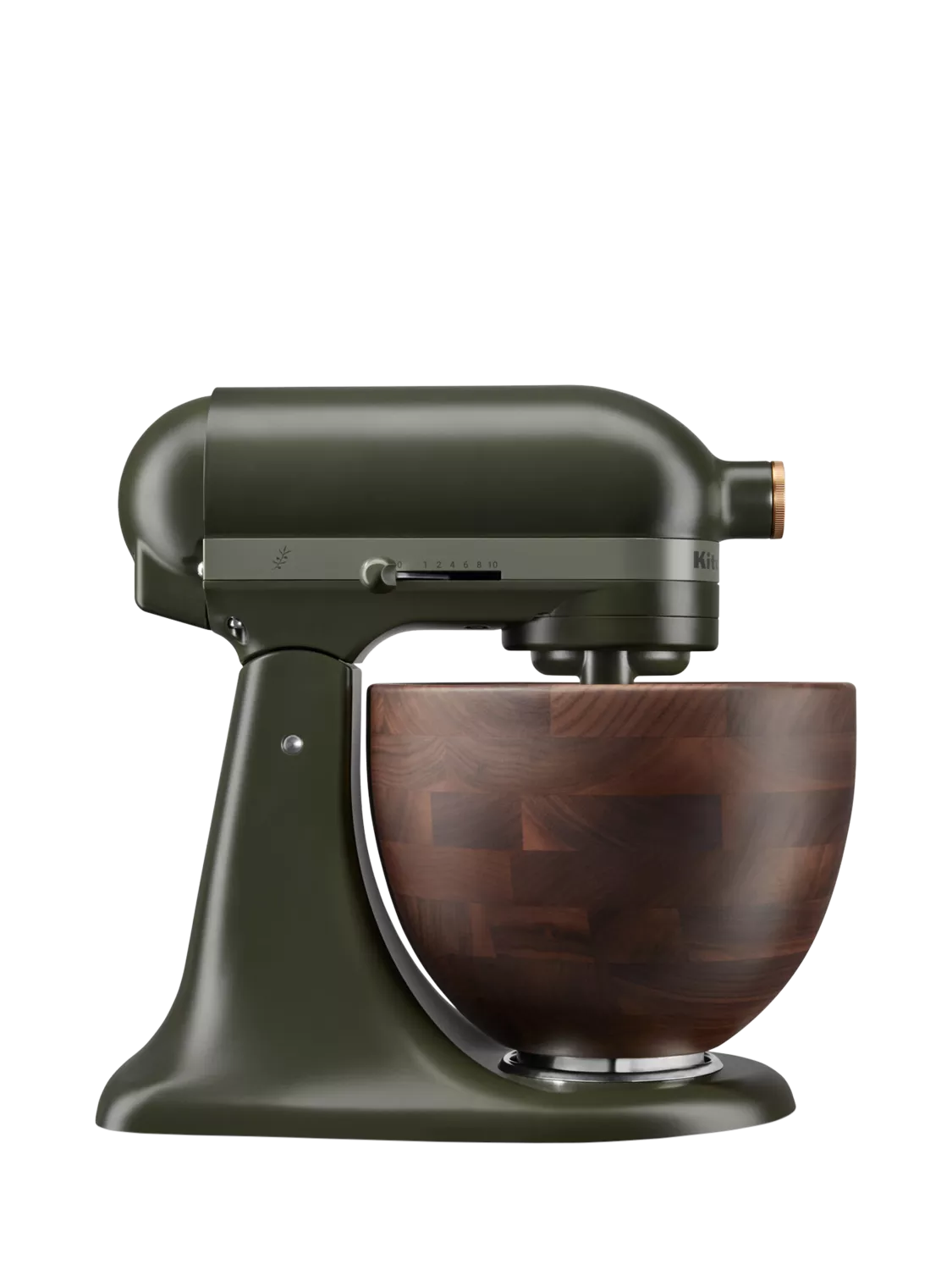 - Die-cast zinc mixer base, walnut wood bowl, stainless steel accessories