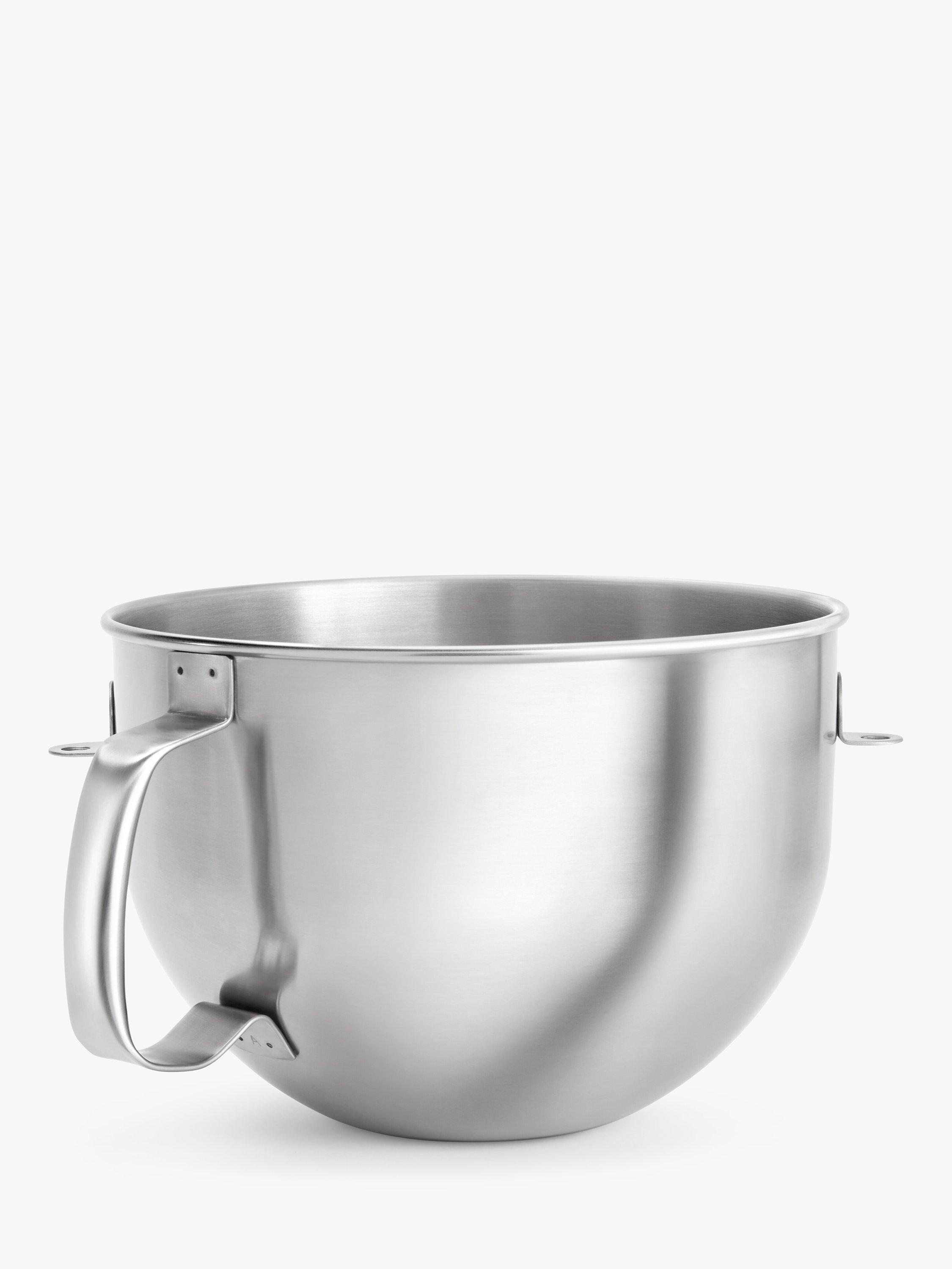- 5.6L brushed stainless steel bowl with ergonomic handle Secure fit pouring shield Metal 6-wire whisk Silver coated spiral dough hook Silver coated flat beater