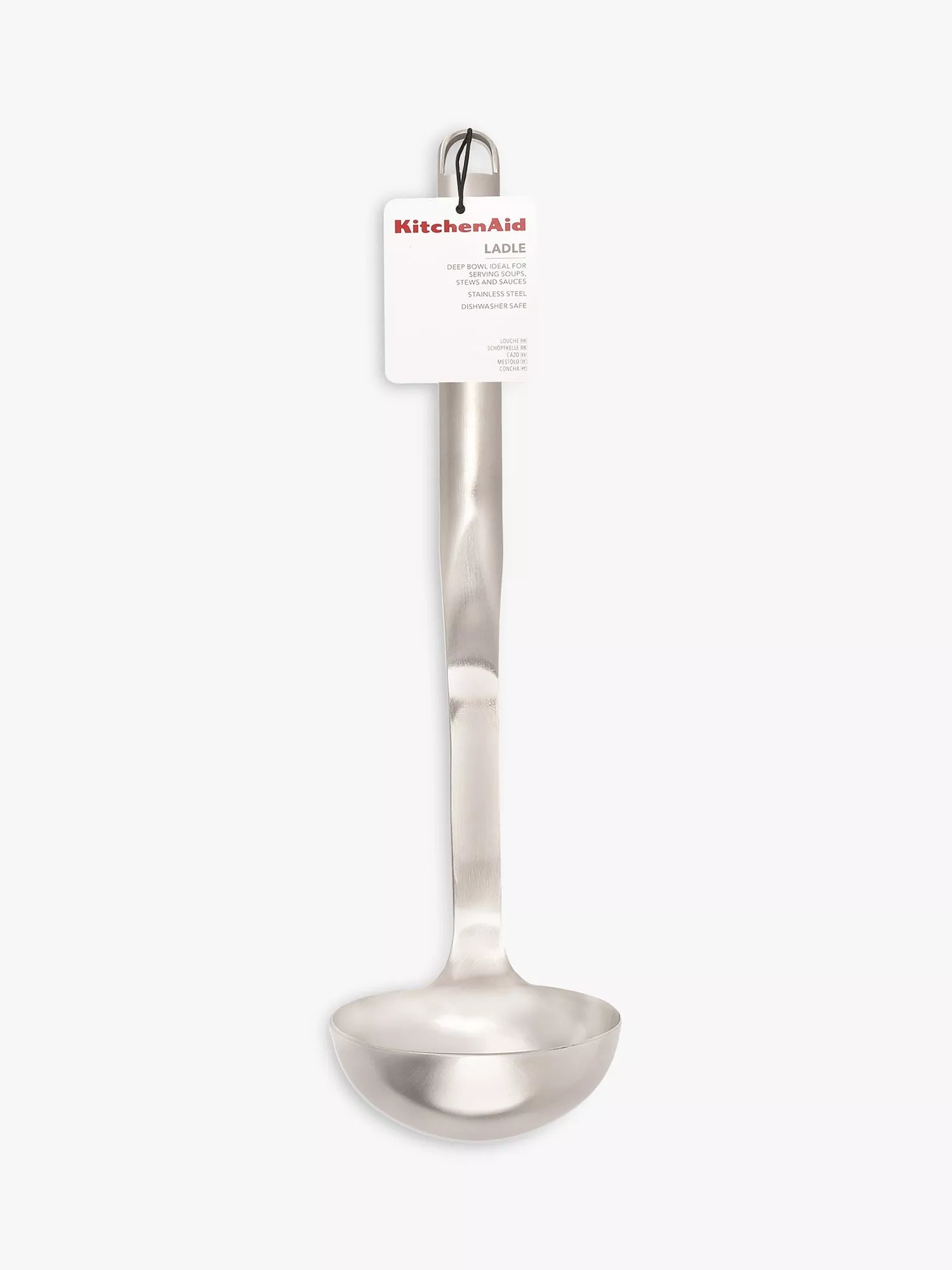This KitchenAid Premium Ladle is a kitchen essential. This large ladle's depth is perfect for dishing out gravies, soups, stews, liquid dishes, dressings and sauces. Durable for everyday use, this piece is made from stainless steel, which gives it a sleek, modern look. Plus, it's dishwasher-safe for easy and hygienic cleaning.