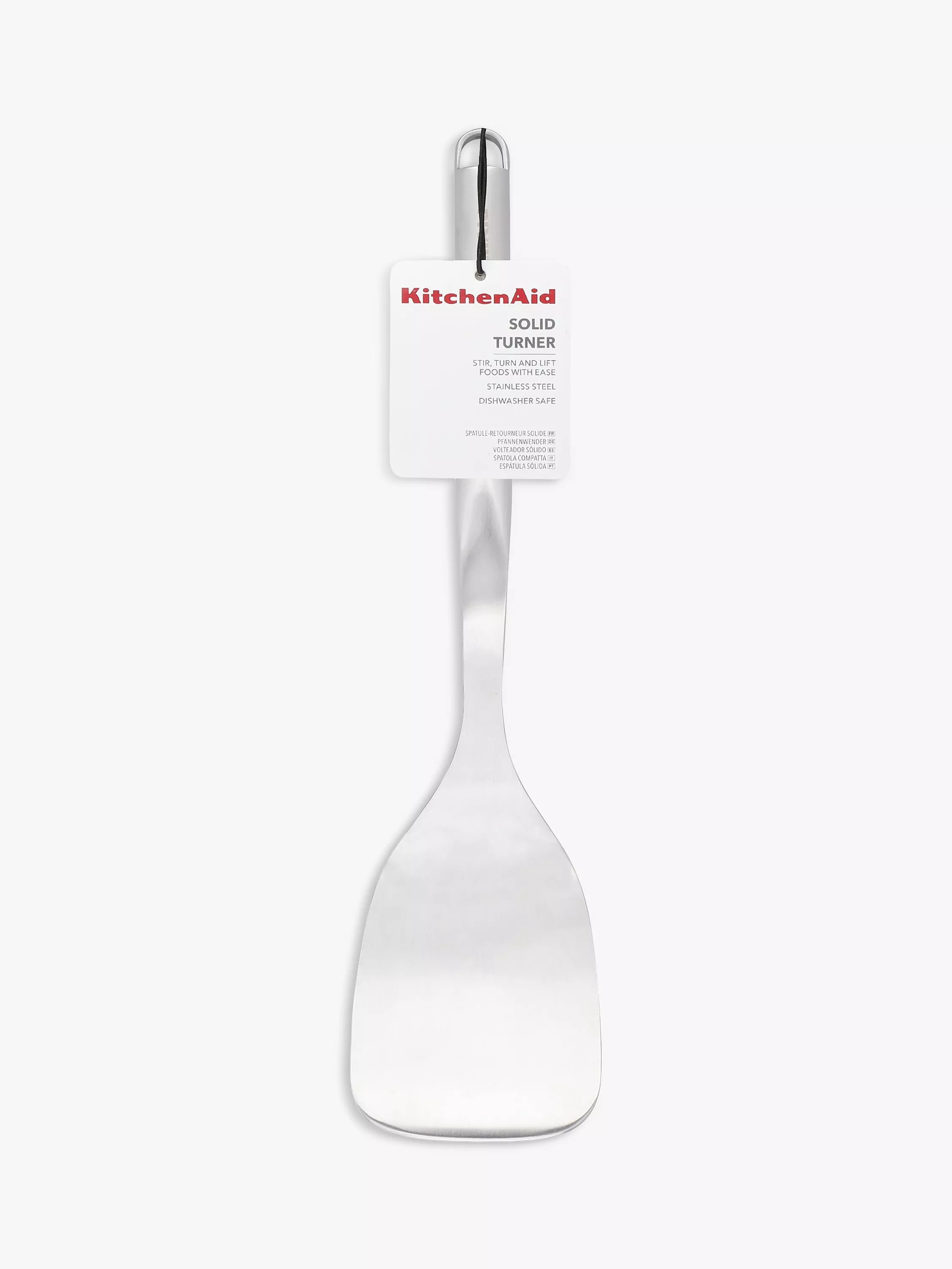 This KitchenAid Premium Solid Turner is a kitchen essential. Use it to stir, turn and lift foods with ease. Durable for everyday use, this piece is made from polished stainless steel, which gives it a sleek, modern look. Plus, it's dishwasher-safe for easy and hygienic cleaning.
