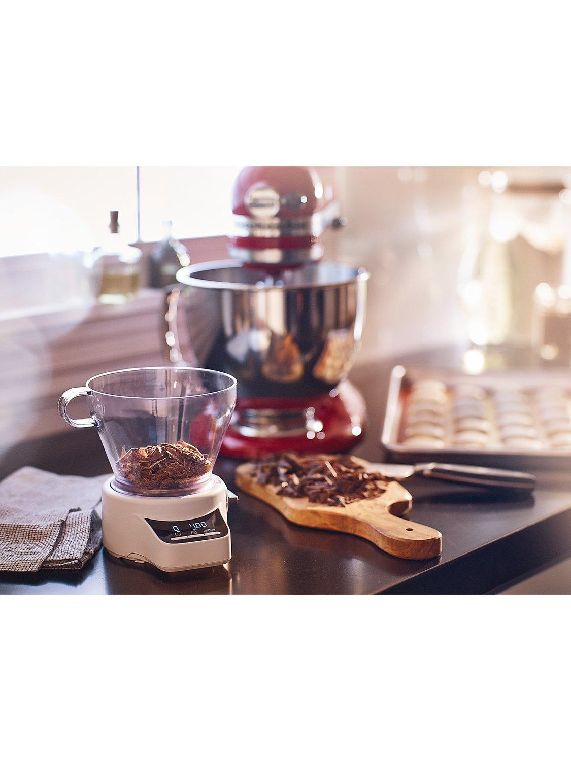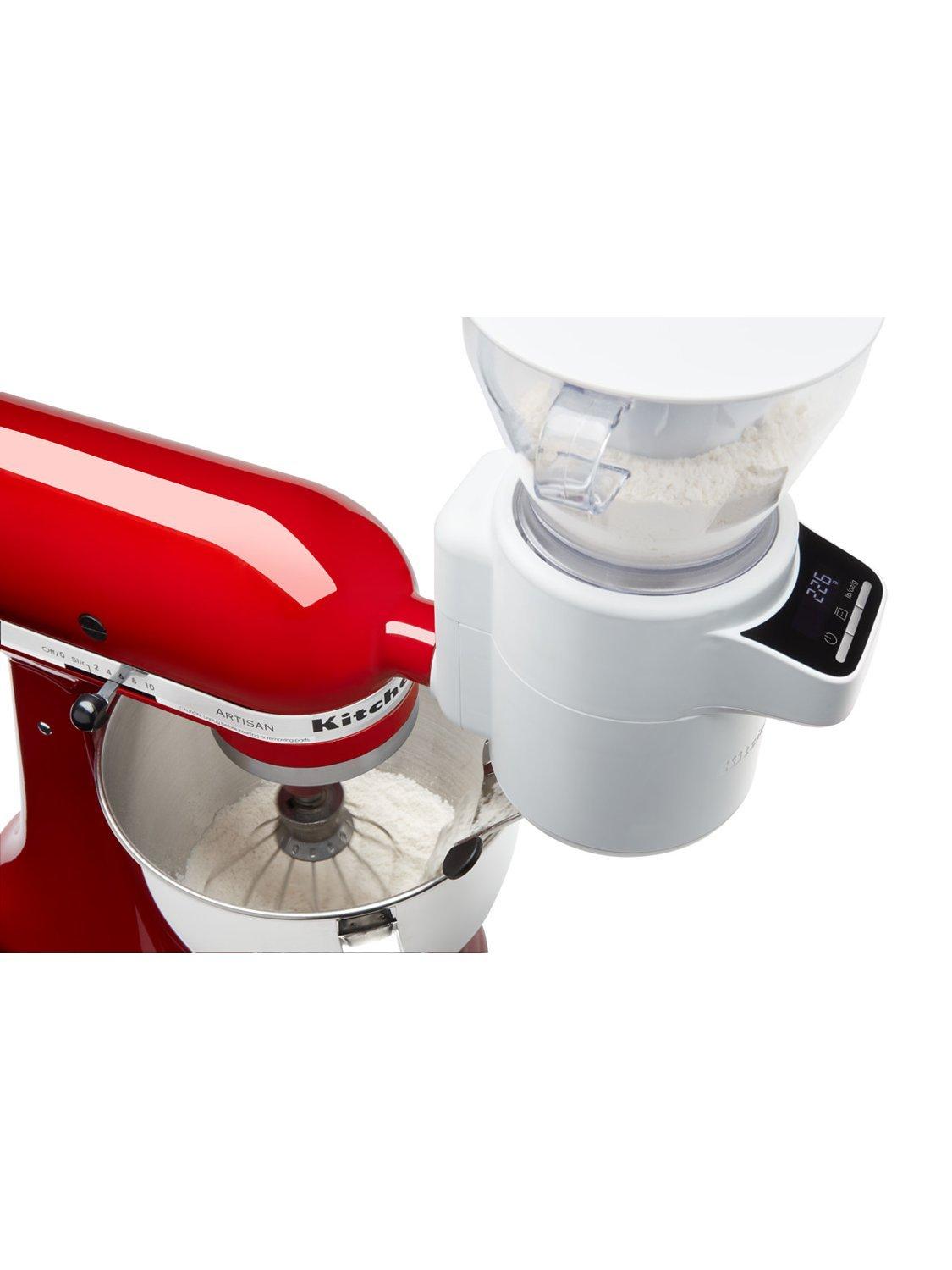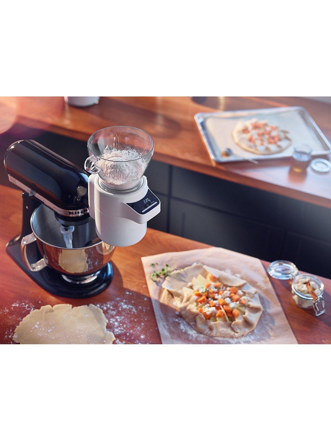 The KitchenAid Sifter and Scale attachment is the all-in-one baking tool for handsfree, automatic sifting and weighing.