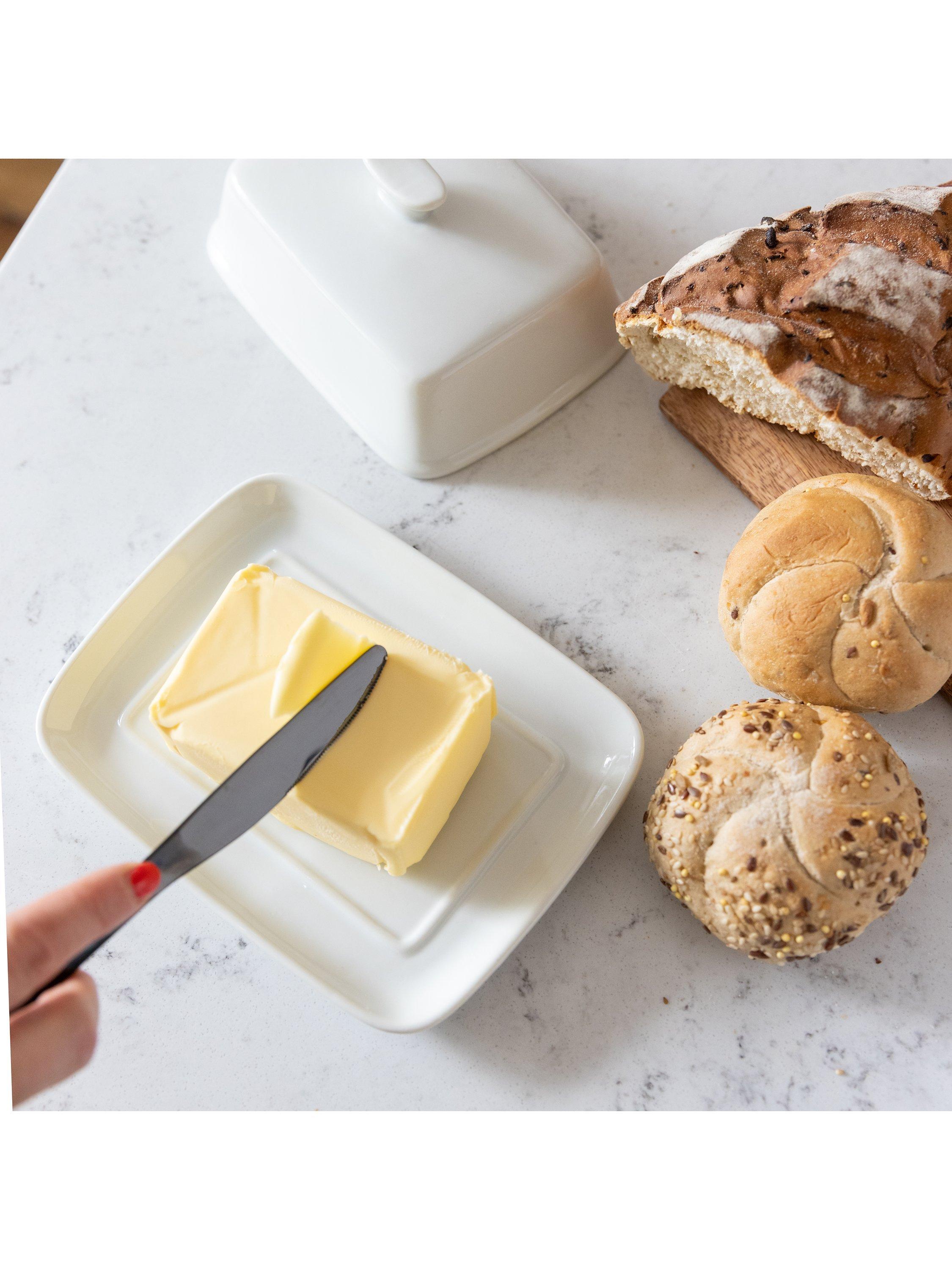 Don't rip up fluffy loaves trying to spread cold, hard butter straight from the fridge. Your bread deserves better. This traditional white dish keeps butter soft and fresh, so it's easy to spread and your bread stays fluffy and intact.