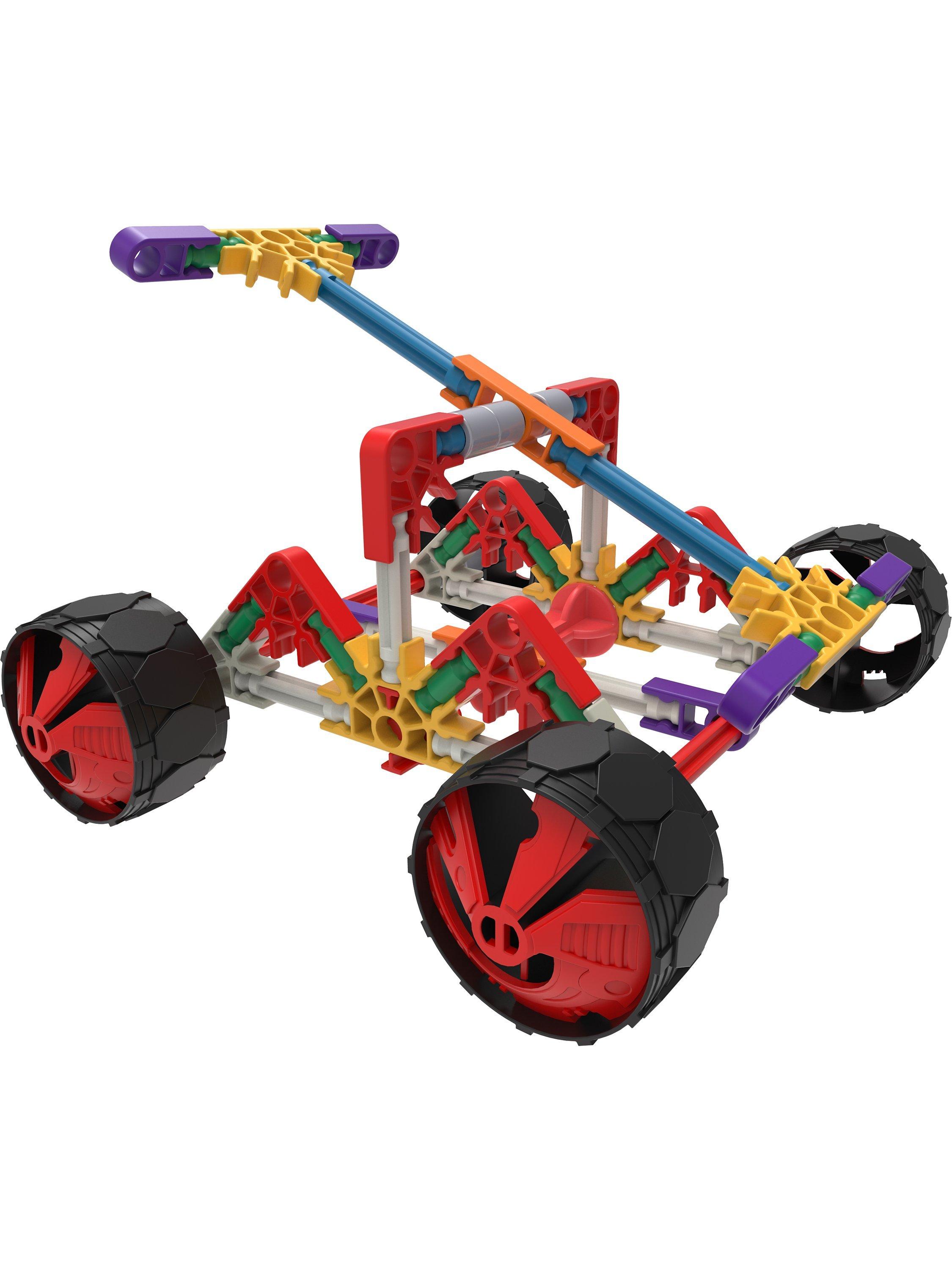 The new parts – a barbell shaped rod that easily sandwiches between 2 connectors, and a flat panel piece that provides structural support – were specifically designed to address the needs of younger builders, who can easily build 2 flat shapes and then connect them together into a 3-D creation! Plus, newly designed wheels pop right on – they’ll be on the go in no time!