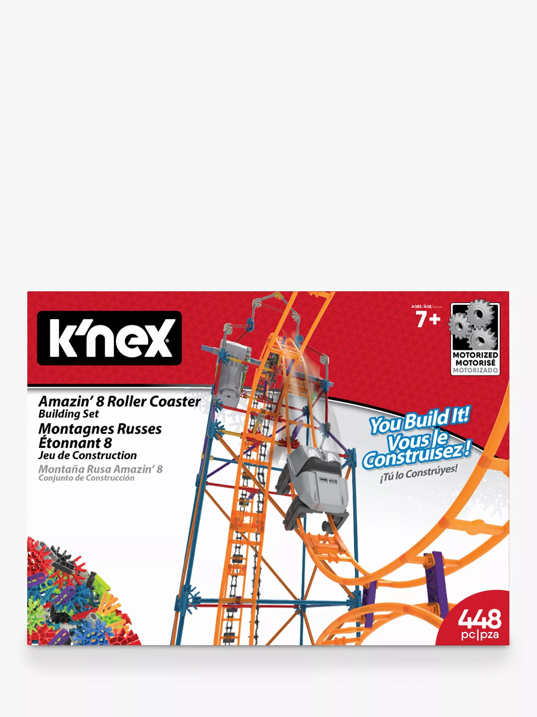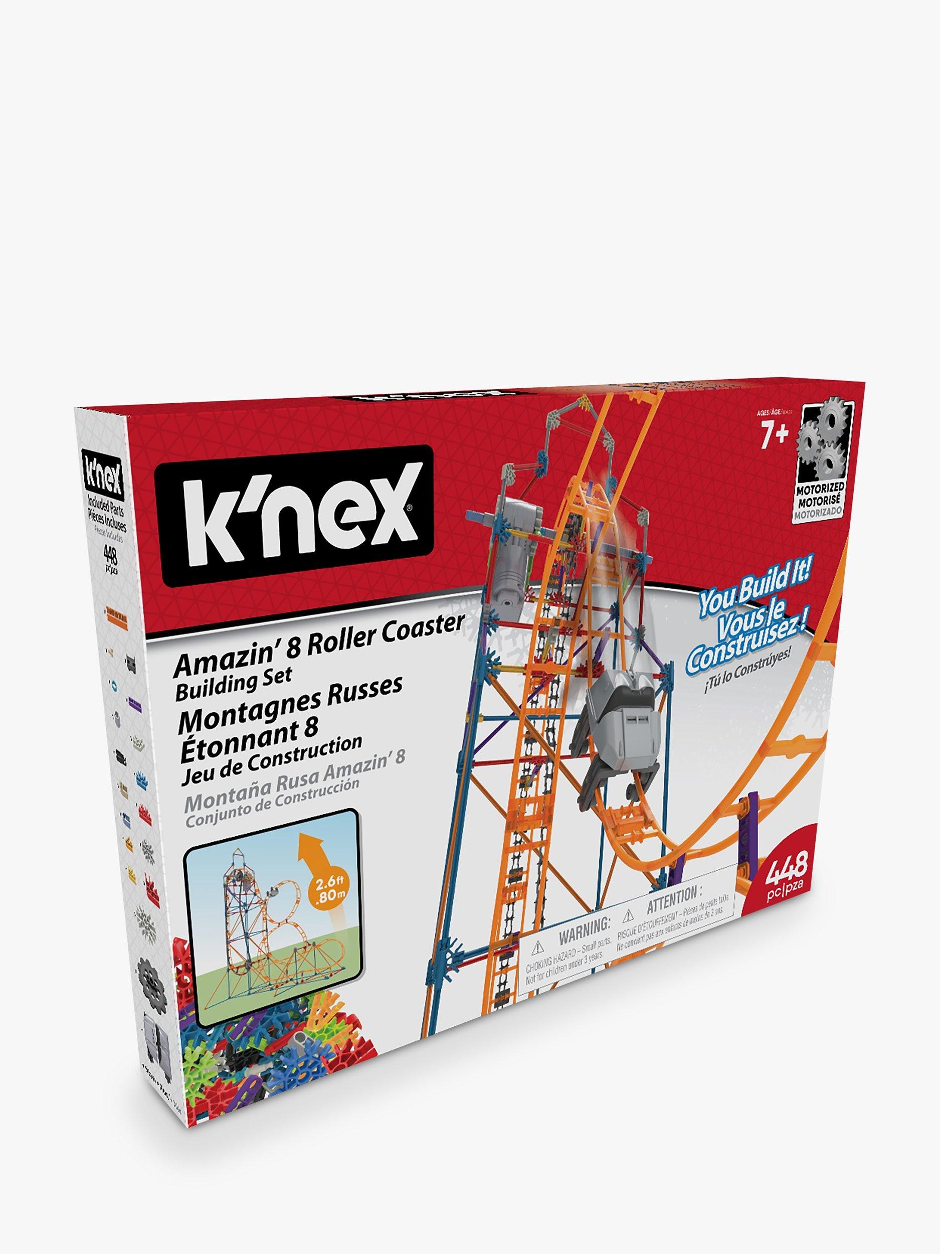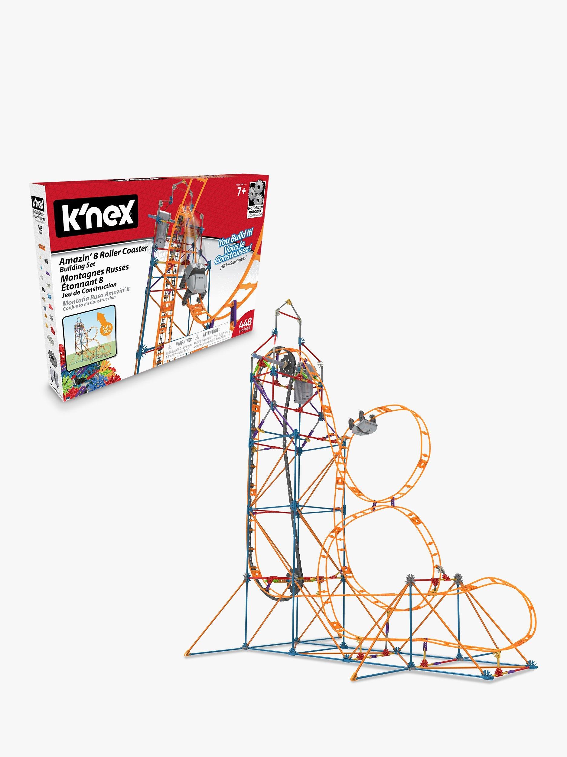 Twist, Turn, Dive & Swoop... The K’NEX Amazin' 8 Coaster building set lets you build a real working roller coaster! A motorized chain lift sends the coaster car screaming through twists and turns 76m high.