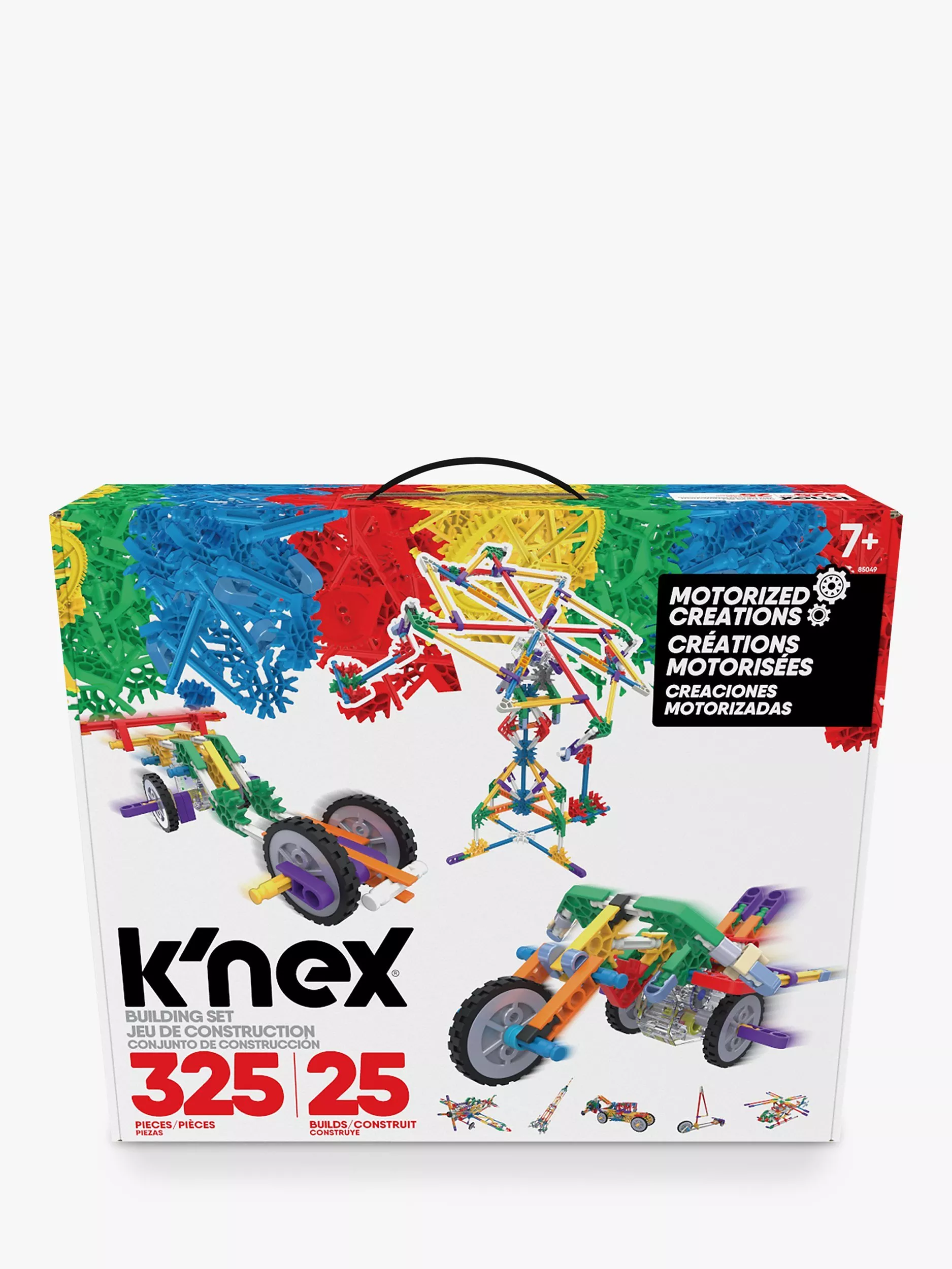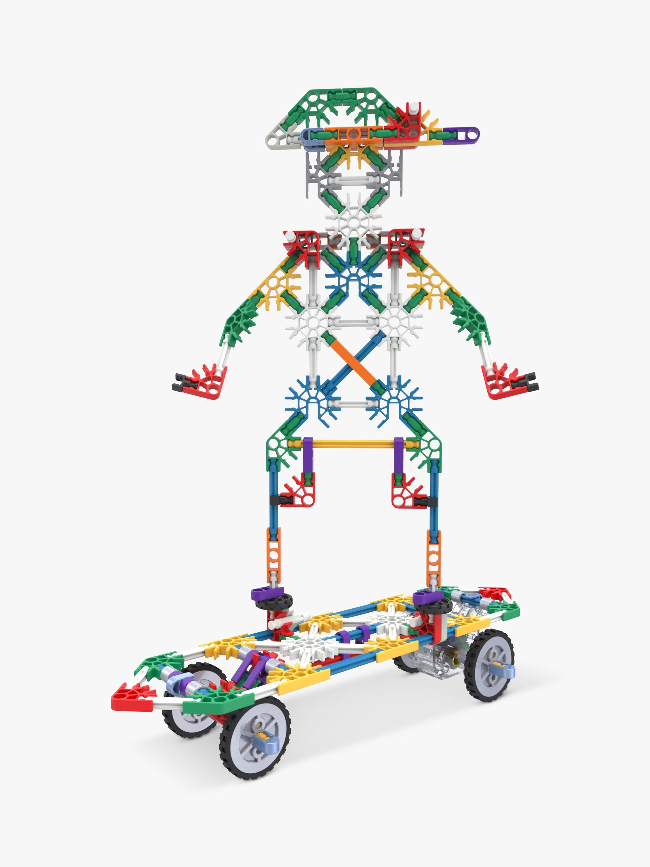 This building set from K'NEX comes with 325 different rods, connector pieces and a wind-up spring motor, which can be assembled into 3D configurations.