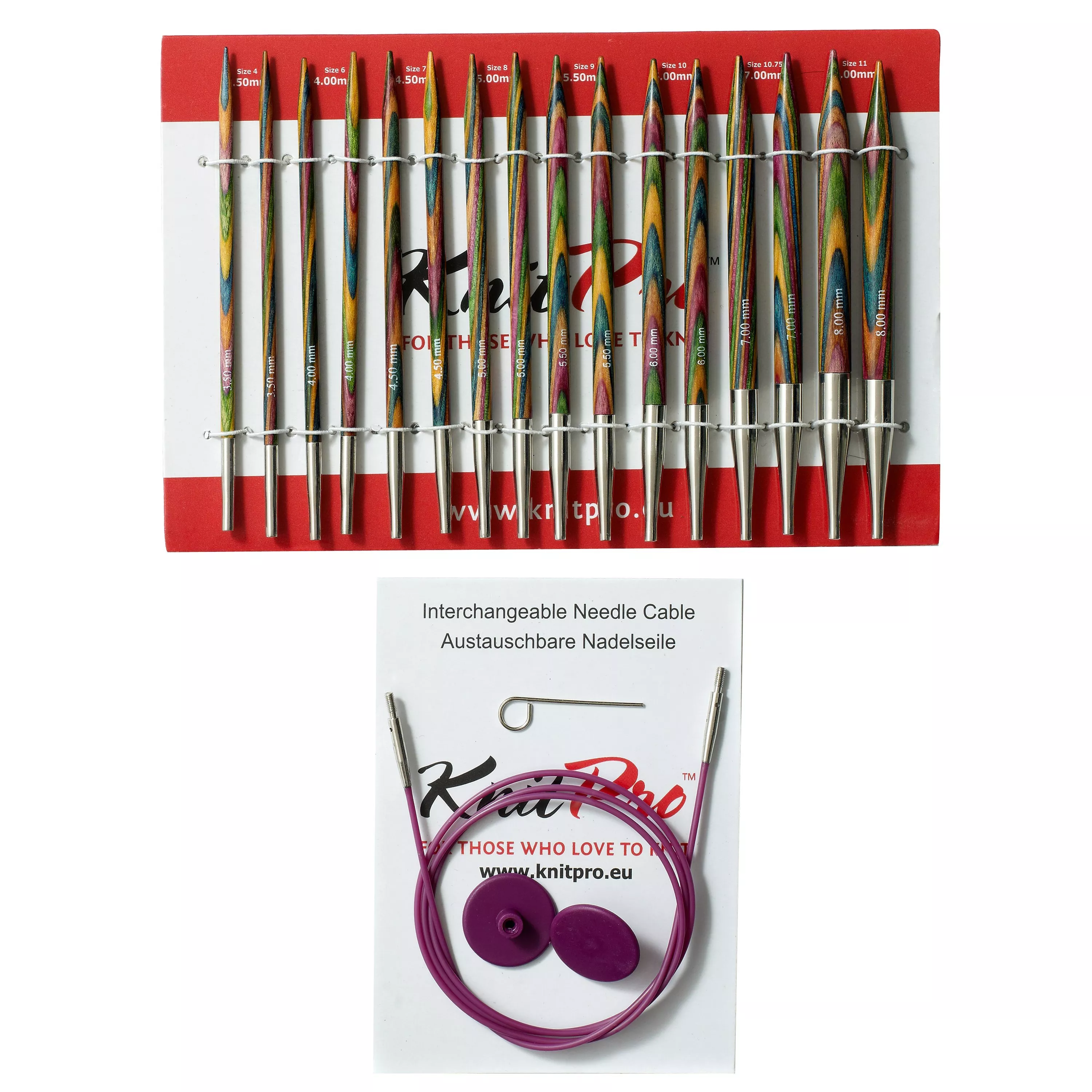 This deluxe knitting needle set by Knit Pro is the ultimate knitting equipment you need if you are a beginner or an intermediate. The set includes an interchangeable cable and various needles. Sizes range from 3.5mm to 8mm.