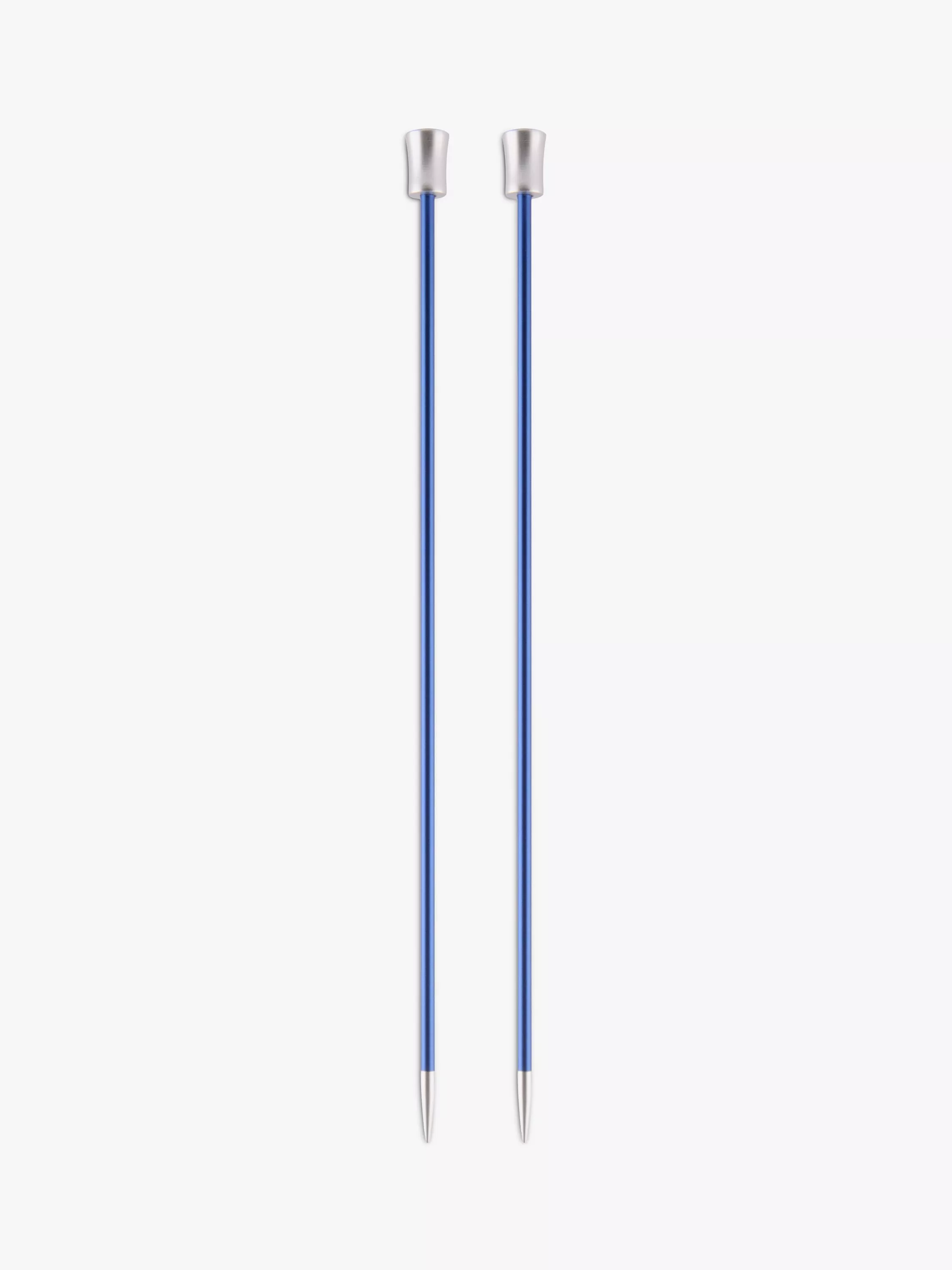 Aluminium knitting needles in a spectrum of bright and lively colours with beautiful silver tips.