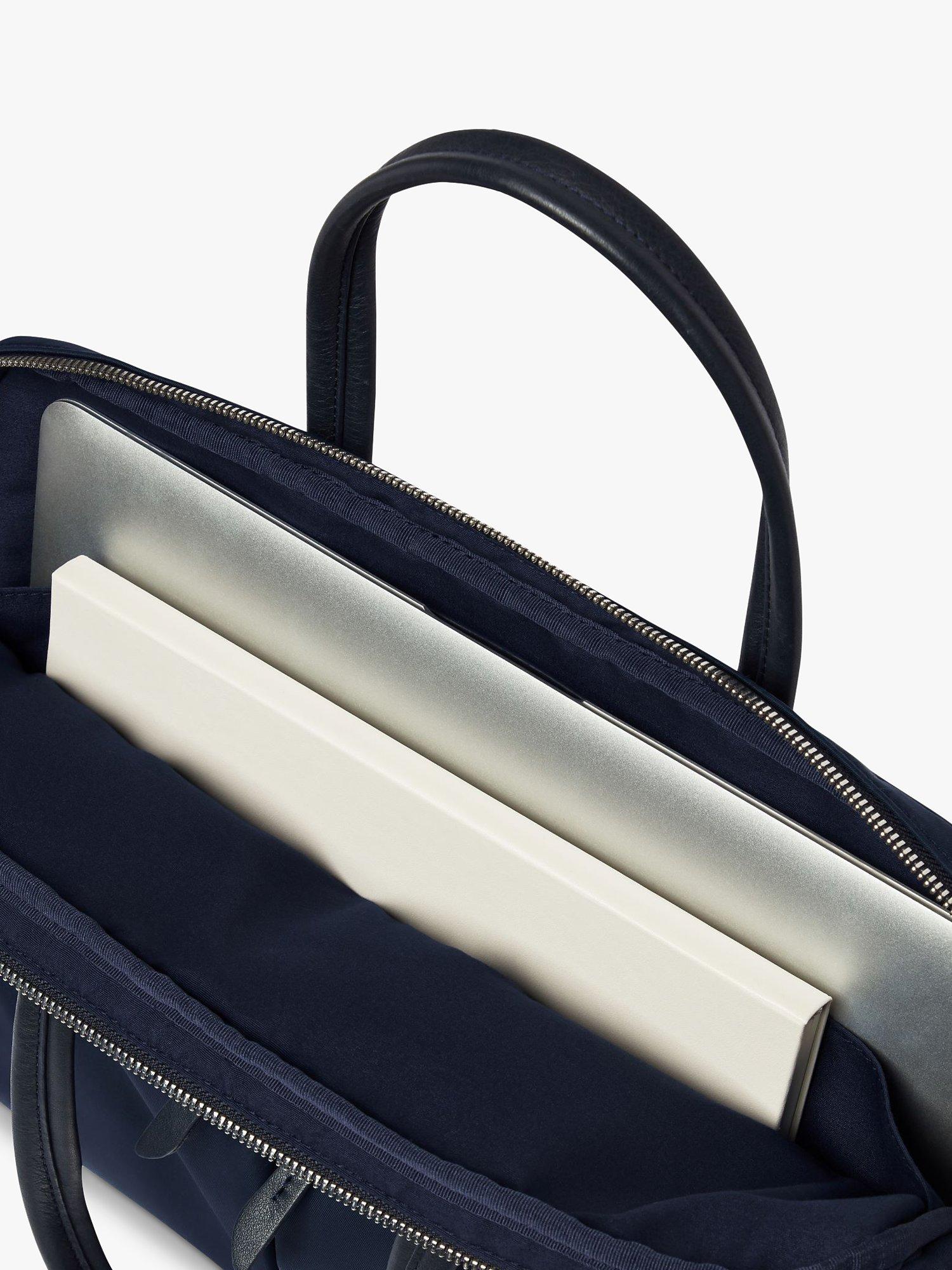 Created from splash-resistant nylon with full-grain leather touch-points, Knomo’s Hanover briefcase for 14” laptops has a stylish, yet practical design.