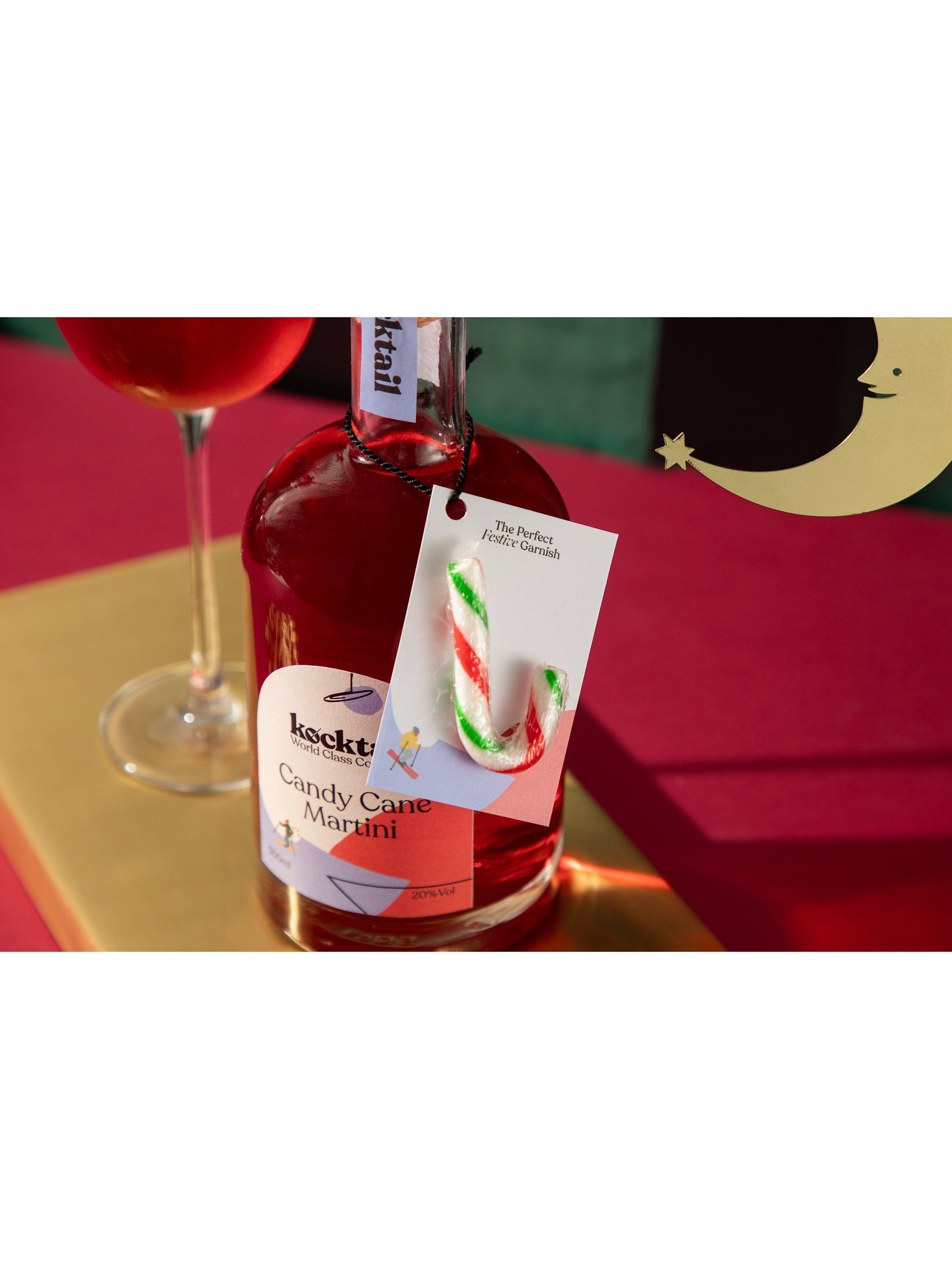 Simply shake with ice and strain into a coupé glass for the ideal serve. Garnish with mini candy cane.