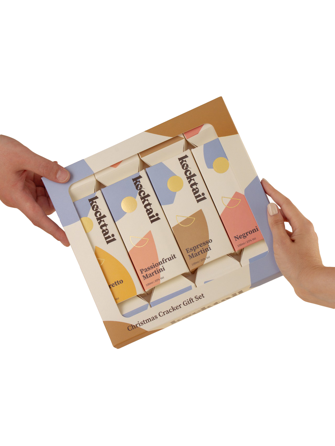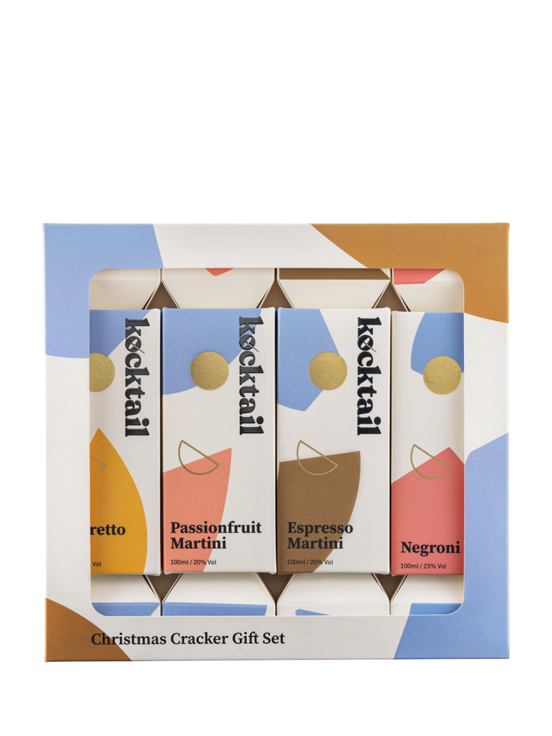 This gift pack of four Christmas crackers is sure to surprise and delight, open to find a 10cl cocktail bottle inside: Espresso Martini, Amaretto Sour, Passion Fruit Martini and Negroni.
