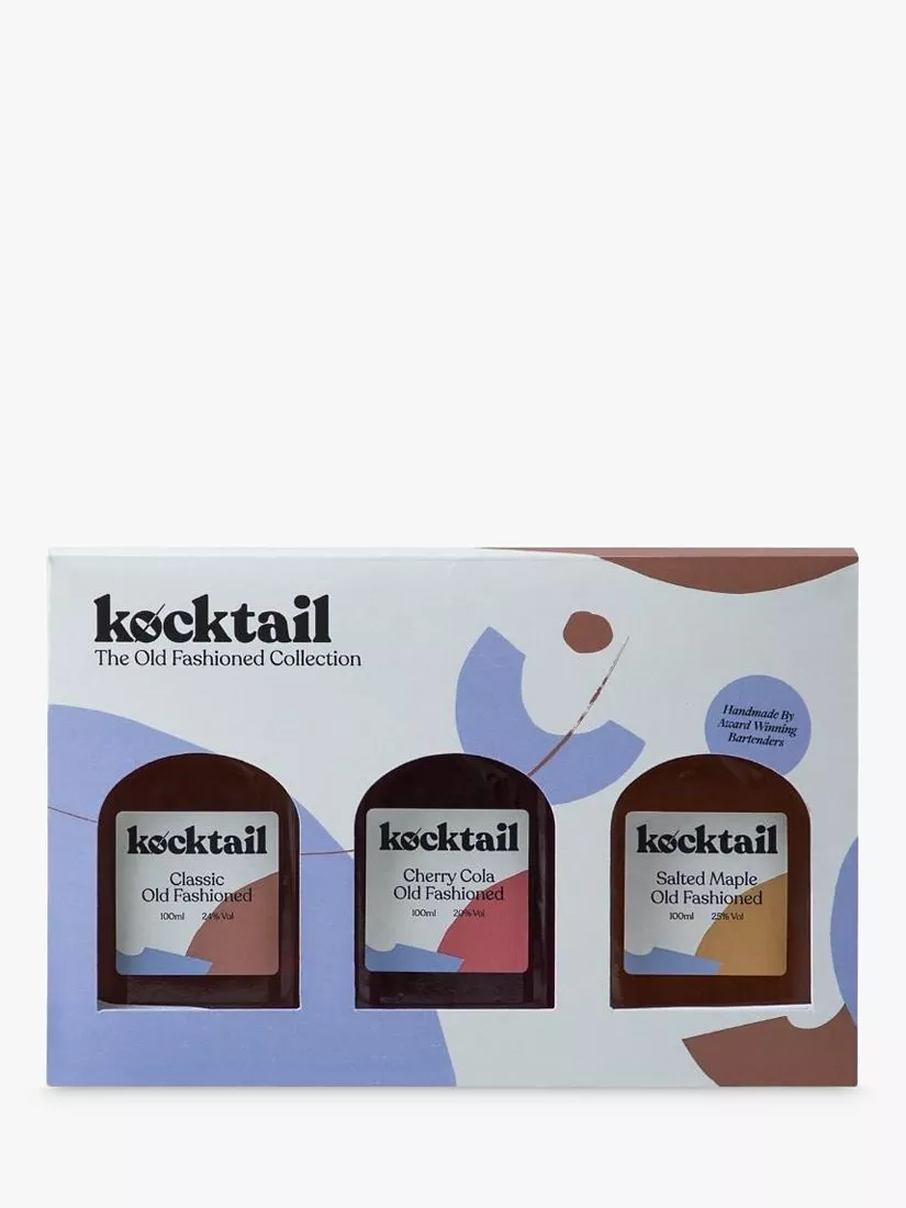 This collection features three different styles of the Old Fashioned cocktail in single serve 100ml bottles. These include a Classic Old Fashioned, Cherry Cola Old Fashioned and Salted Maple Old Fashioned. Simply pour over ice to enjoy.