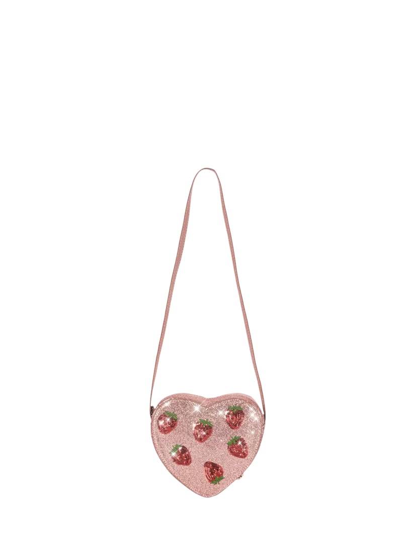 Heart shaped shoulder bag with a sparkling glitter front and slim shoulder strap. Perfect for all the little essentials.