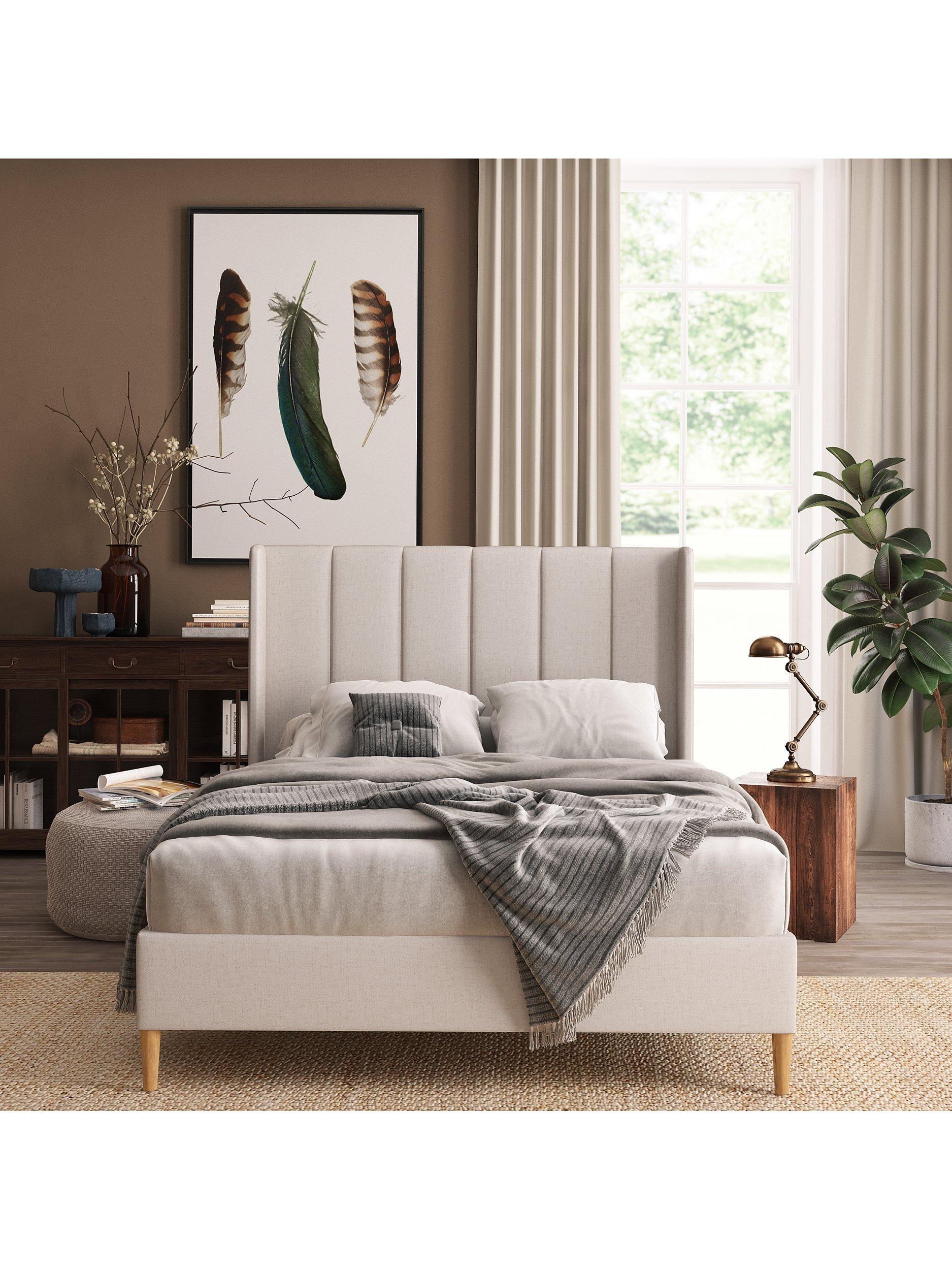 Koti Home's Adur bed frame is designed with winged detailing which adds interest and gives a chic contemporary look. It's robust base has solid slats which provide a firmer foundation for your mattress. Handcrafted in the UK, each frame is made to order by a team of skilled craftsmen.