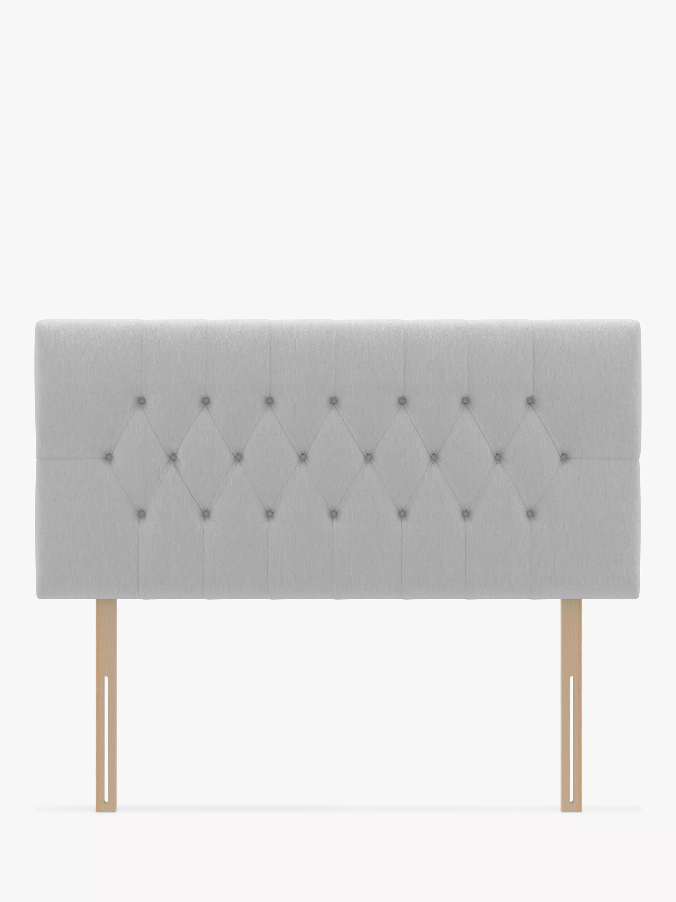 The button detailing gives the Koti Home's Eden headboard a classic look which lends itself to any bedroom setting. Pair with a luxurious fabric such as silk for a touch of grandeur, or opt for crisp white bedding for a more minimalist contemporary look. Choose from a selection of fabrics offered in a variety of colours. This headboard is available in a number of sizes. Handcrafted in the UK and each frame is made to order by a team of skilled craftsmen.