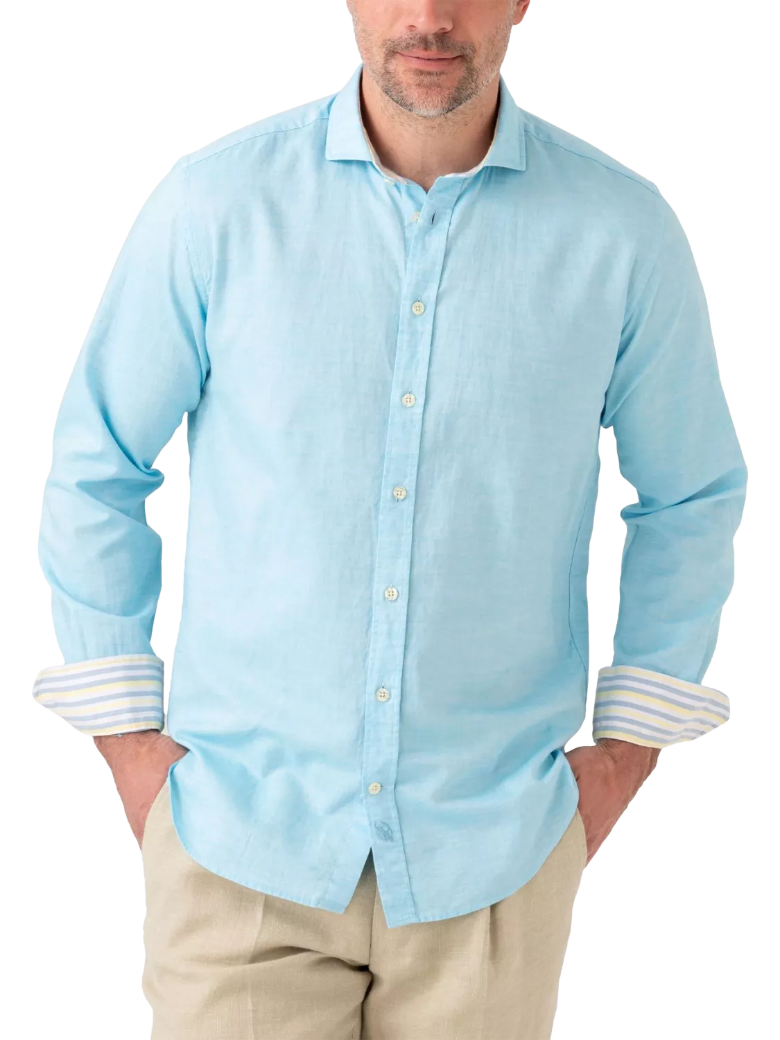 Luxurious blend of Cotton and Linen with eye-catching touches of striped African Kikoy fabric. The striking detailing gives this shirt a unique touch with a powerful story and meaning behind it.