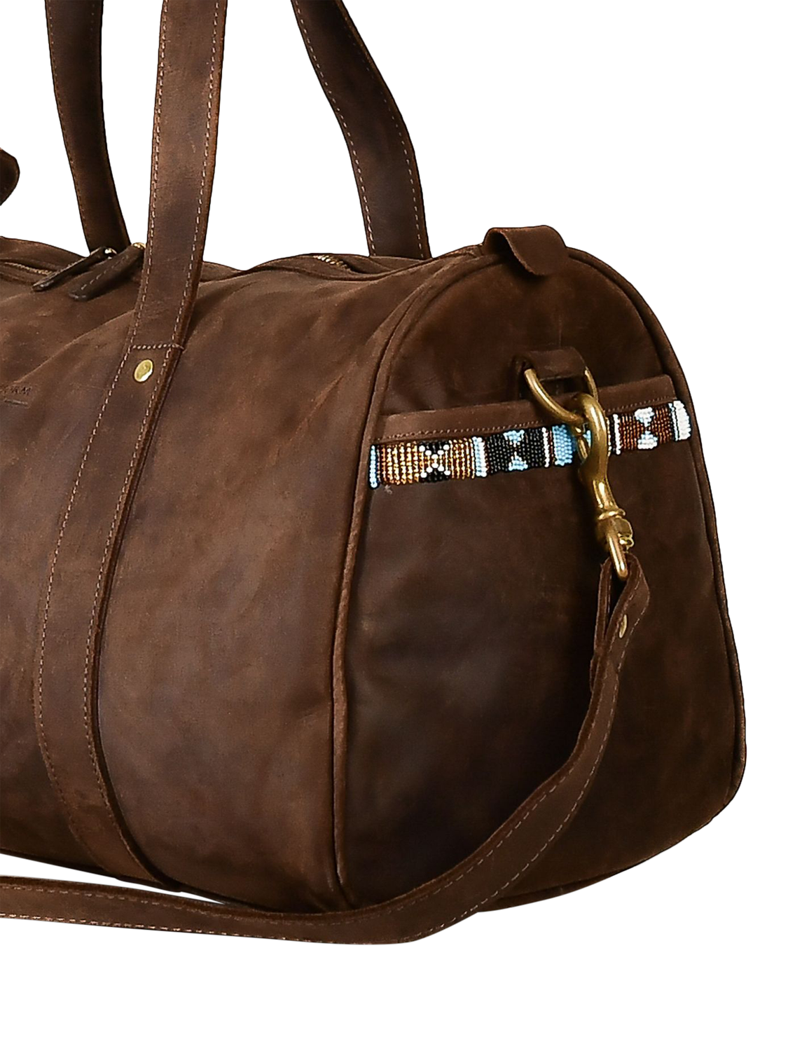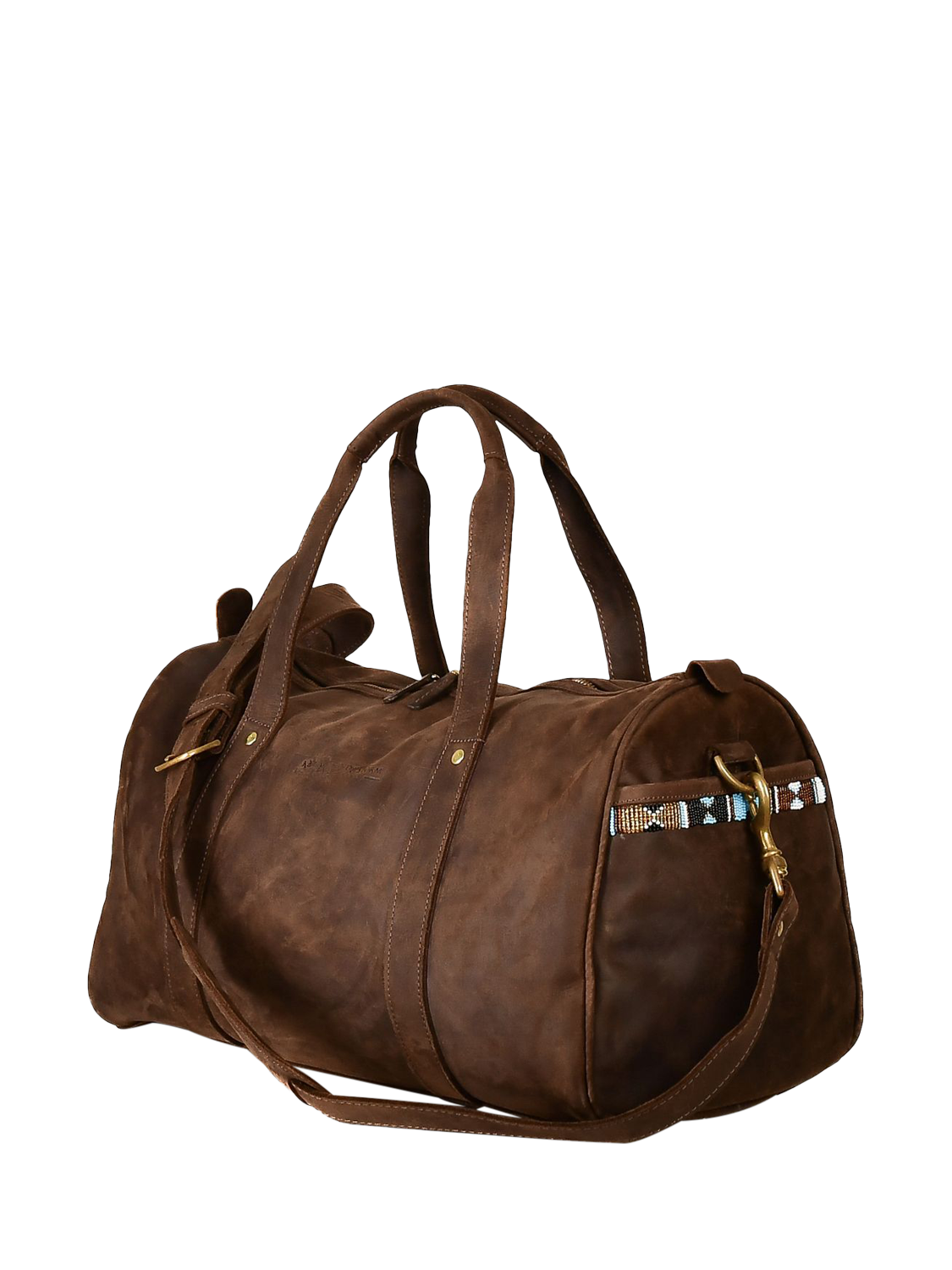 Get set for travelling with this duffle bag from KOY, crafted from rich leather. Each bag is meticulously handmade using Kenyan materials whenever possible, with their personal touch of hand-woven Kenyan Kikoy fabric detailing.