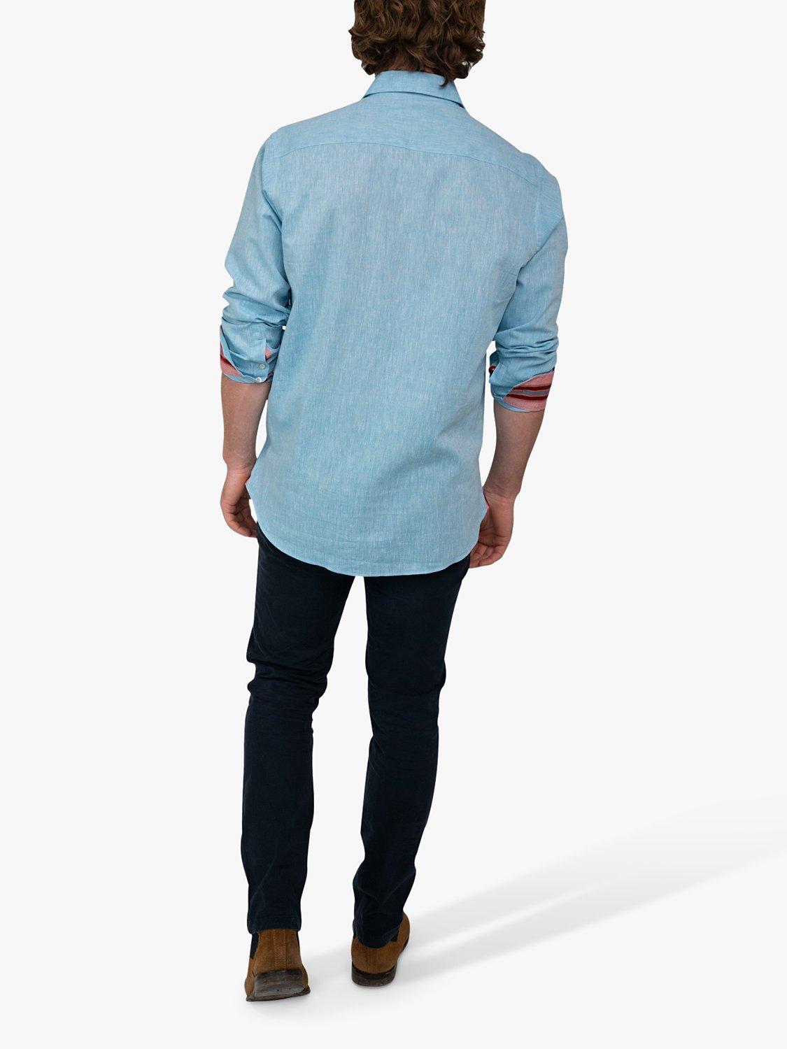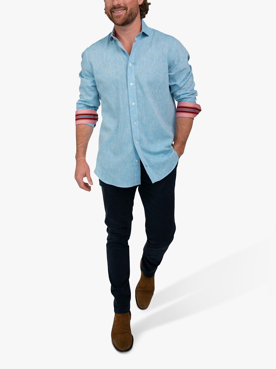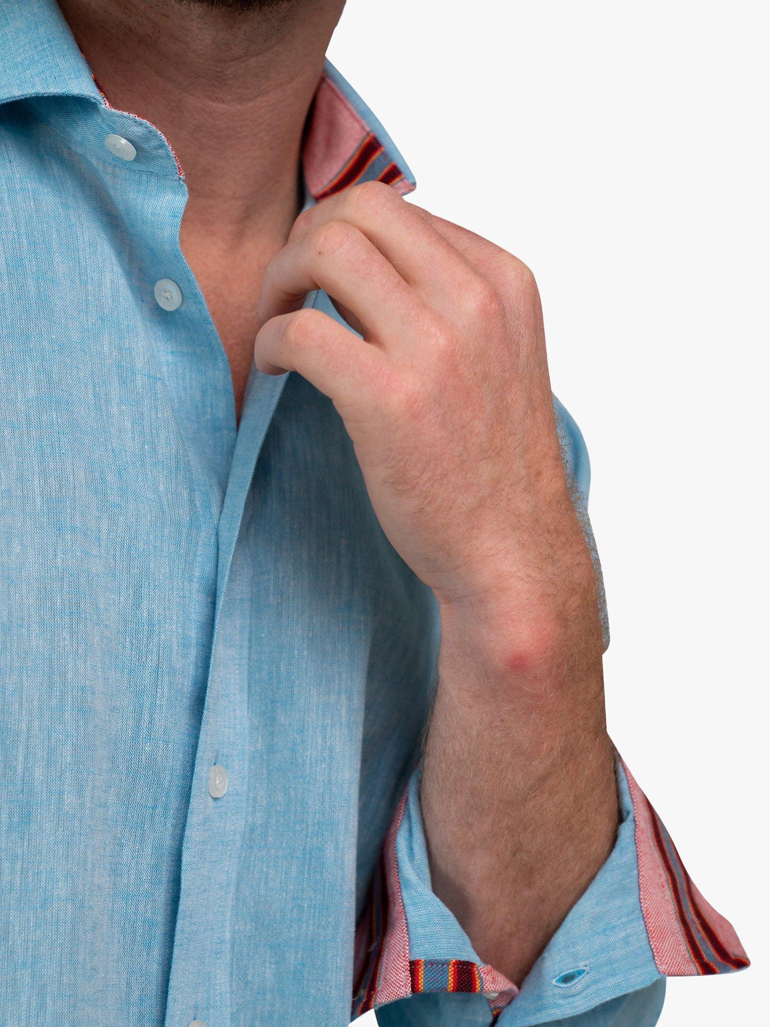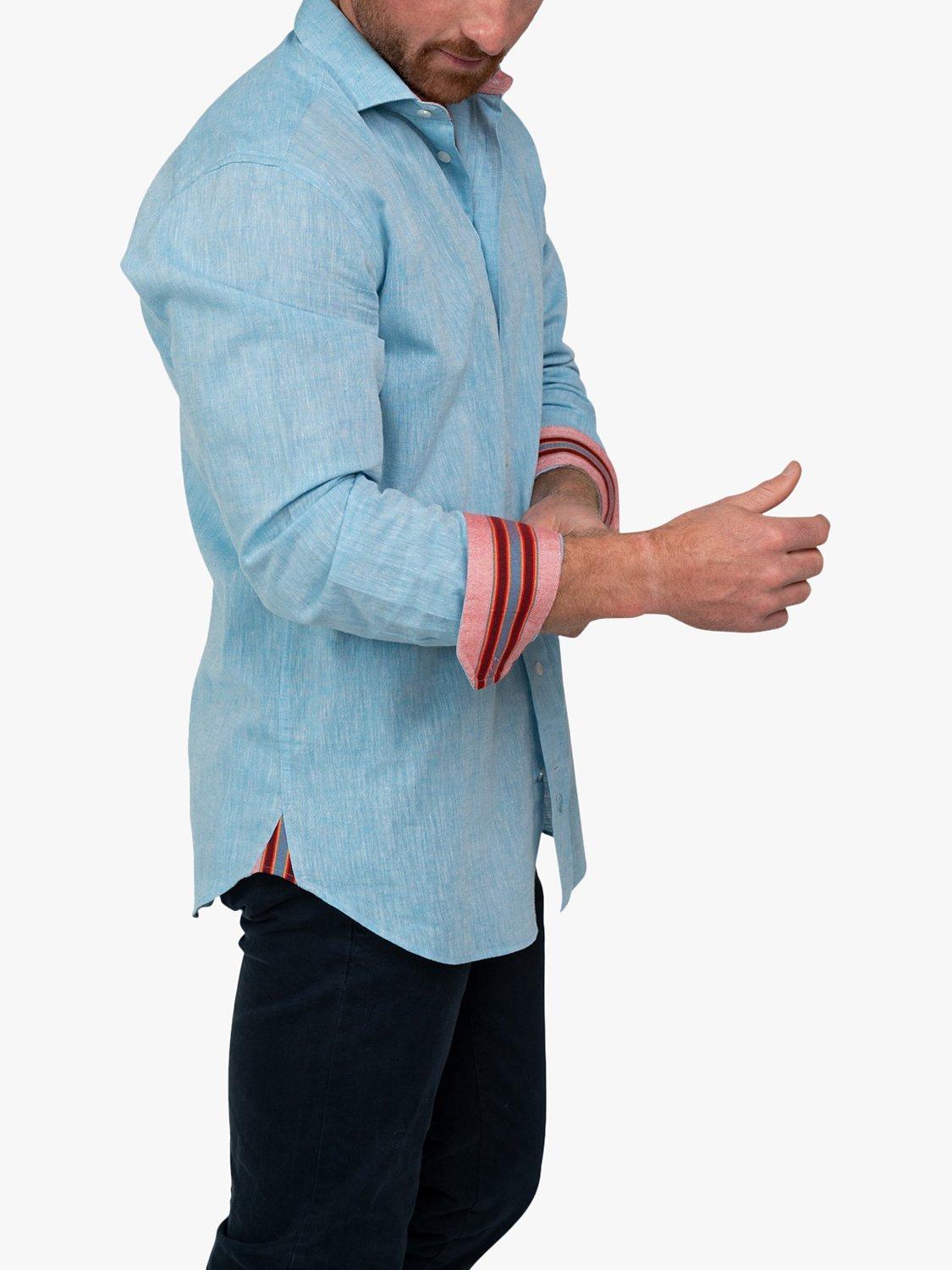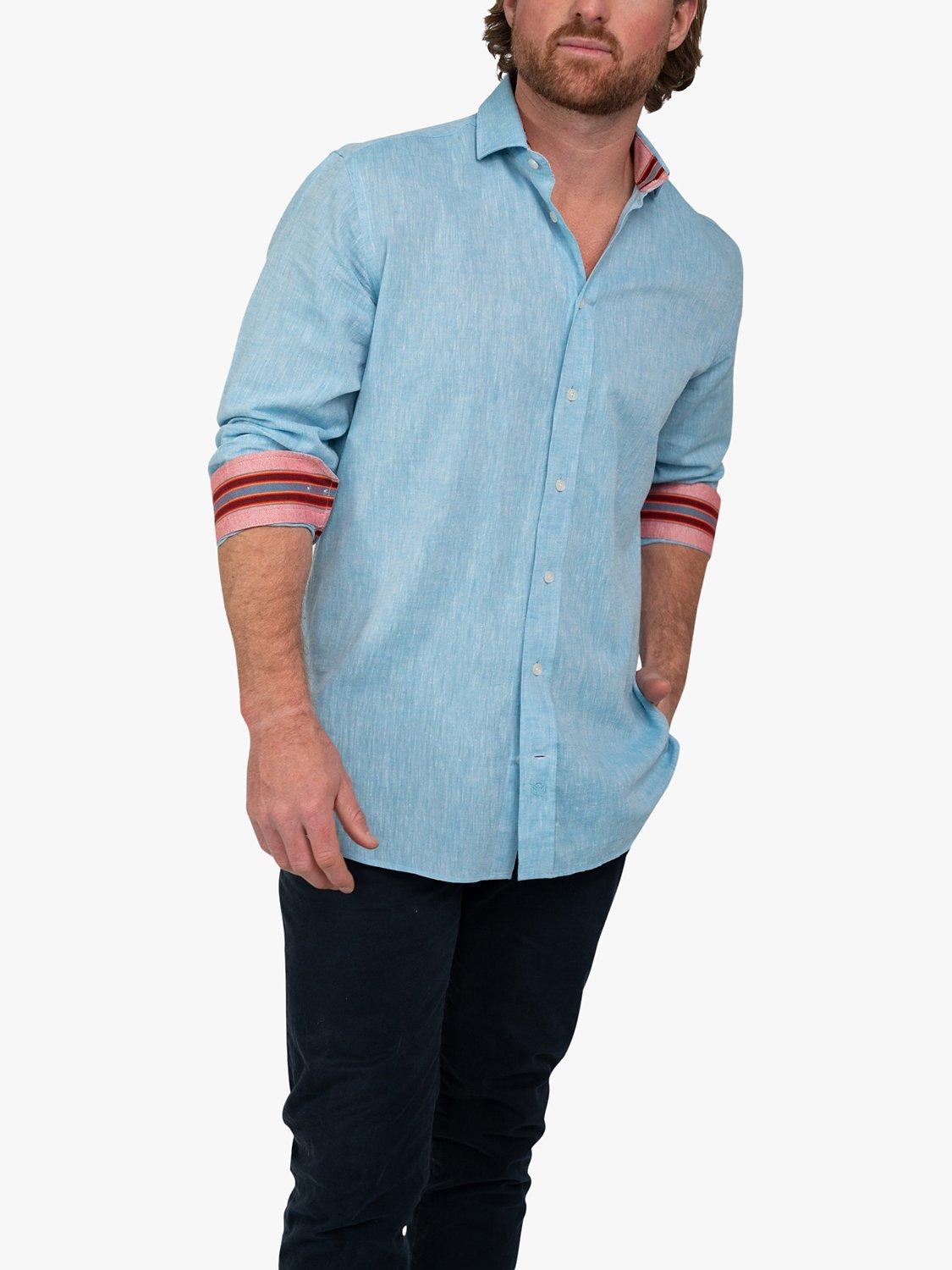 A luxurious blend of cotton and linen with eye-catching touches of striped African Kikoy fabric. The striking detailing gives this shirt a unique touch with a powerful story and meaning behind it.