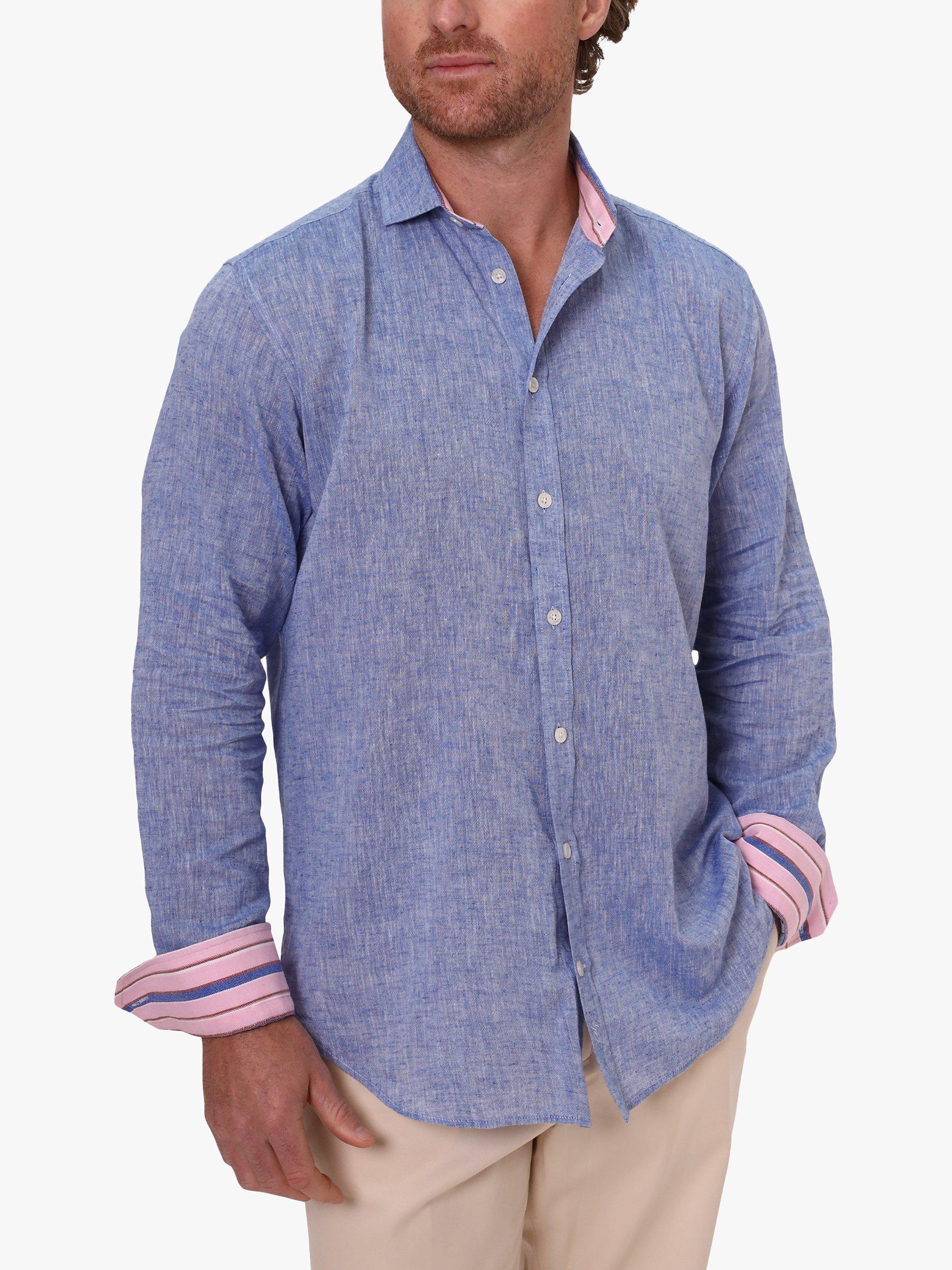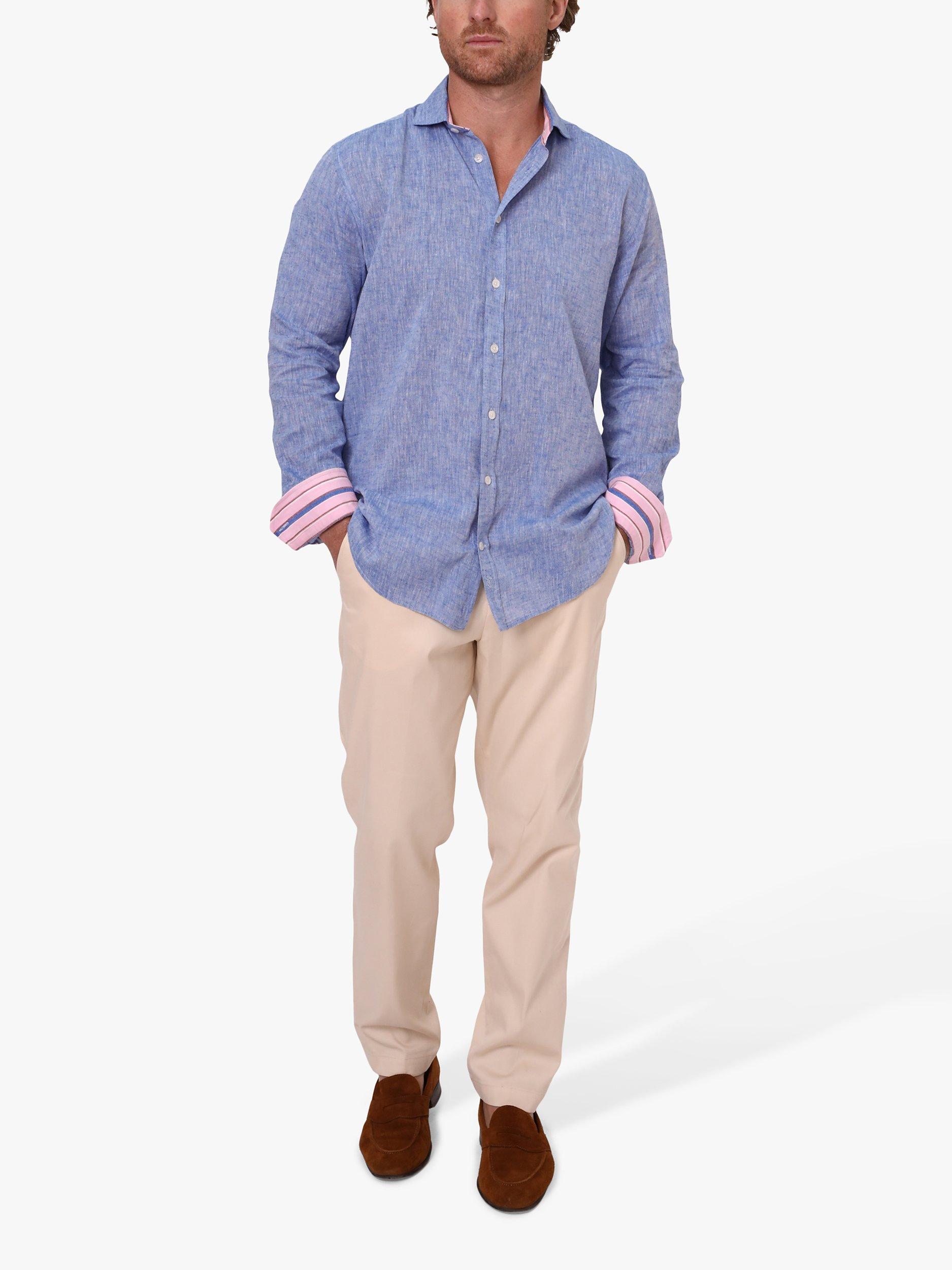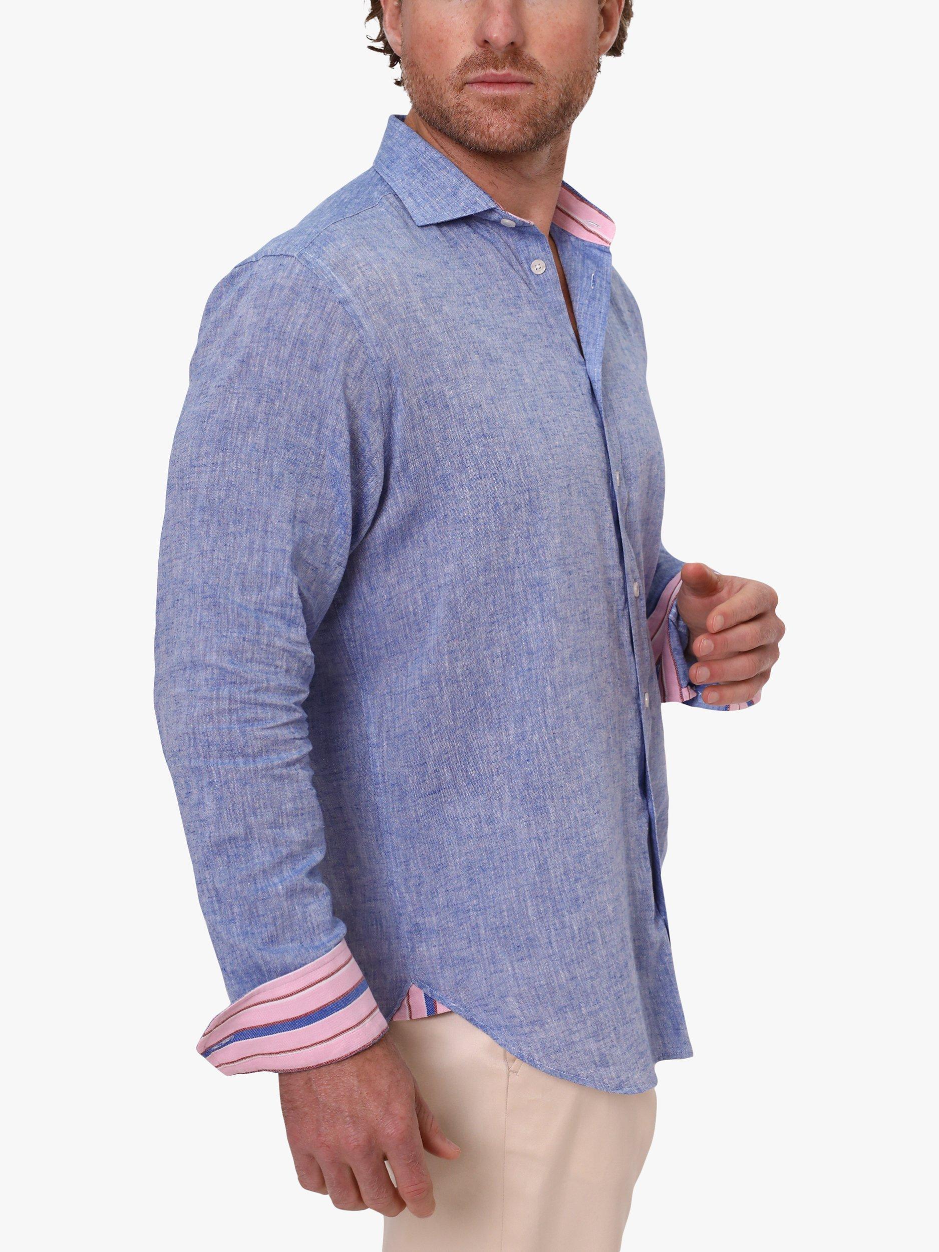 A luxurious blend of cotton and linen with eye-catching touches of striped African Kikoy fabric. The striking detailing gives this shirt a unique touch with a powerful story and meaning behind it.