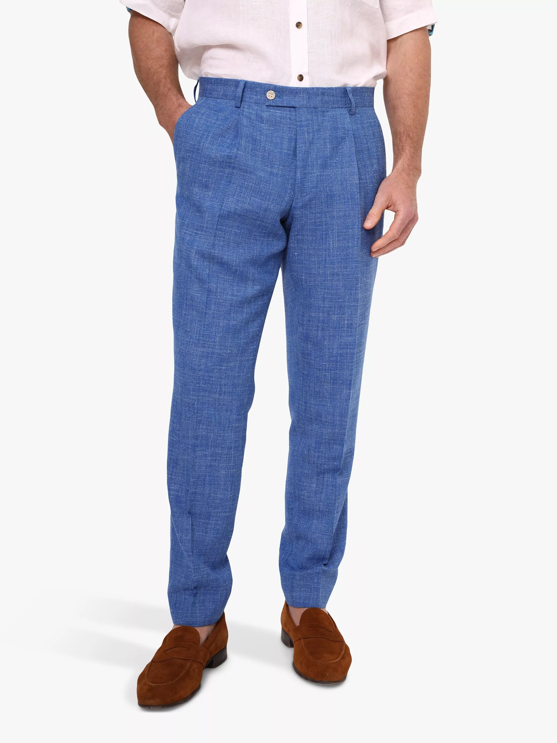 KOYLinen Blend Suit Trousers, Mid Blue