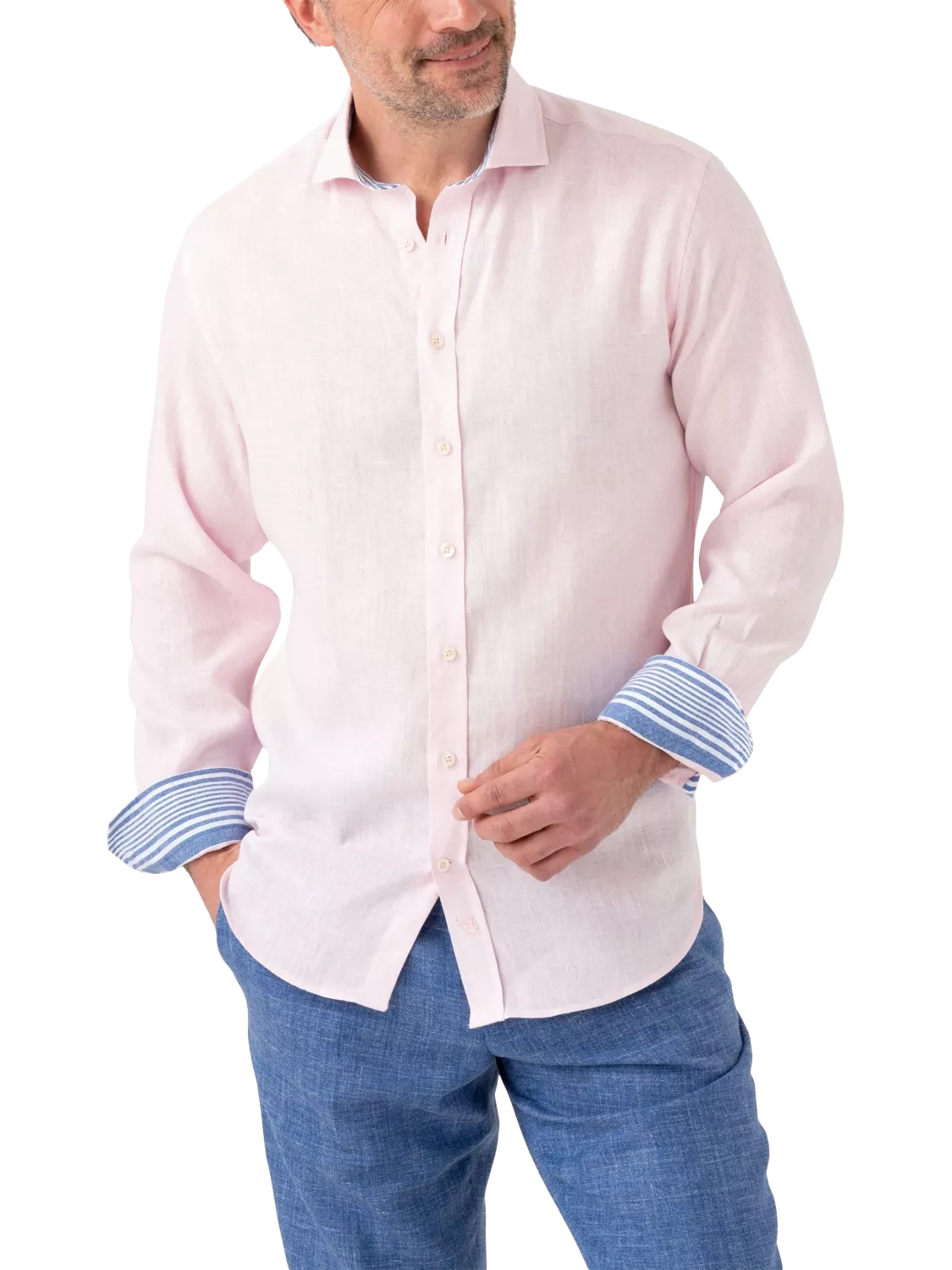 Bringing effortless style to summer city wandering and holiday adventures, this light and breezy linen shirt from KOY iadds a touch of African Kikoy detailing with striped under cuffs and is cut to a fluid fit that transitions from daytime escapades to after-dark soirées.