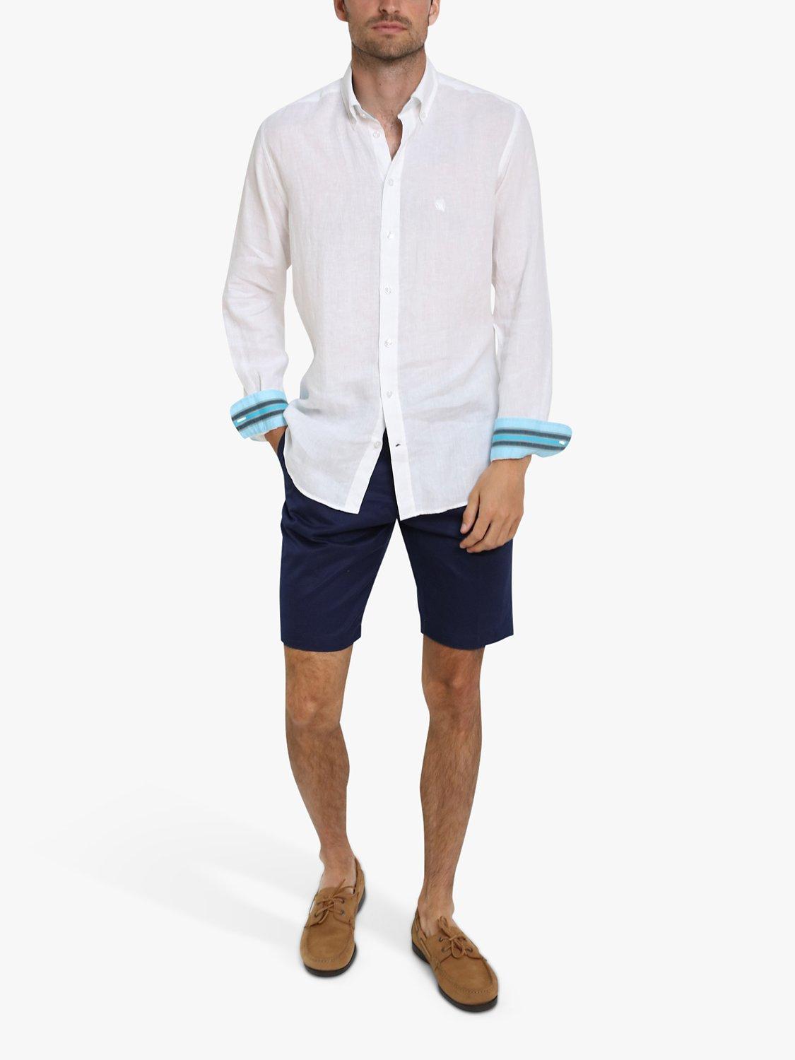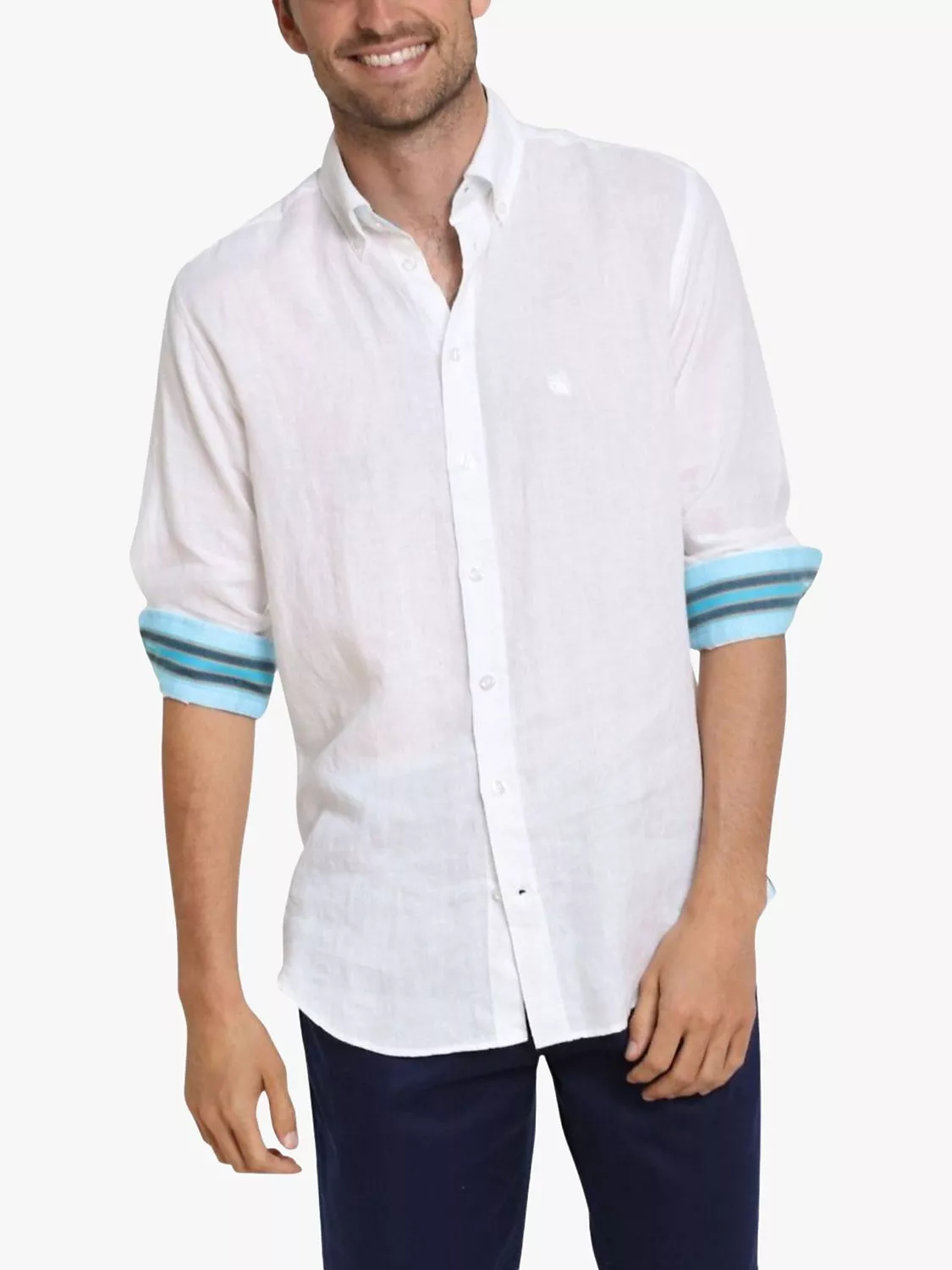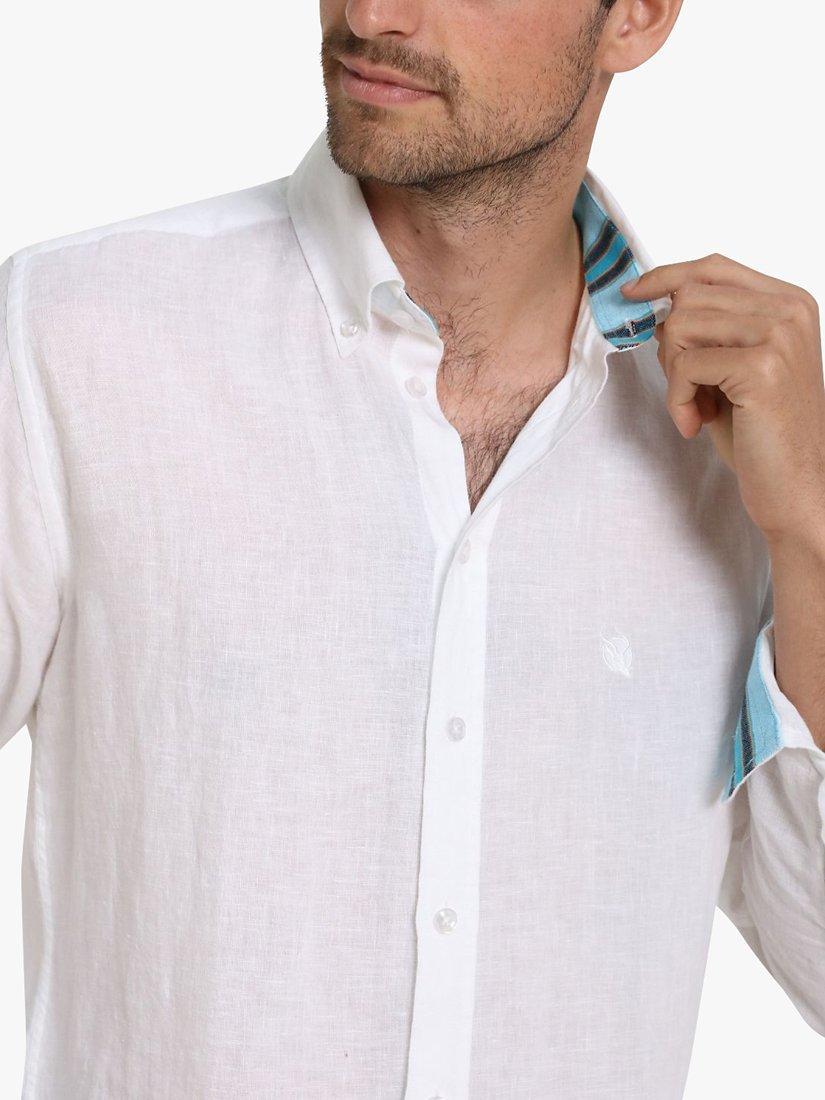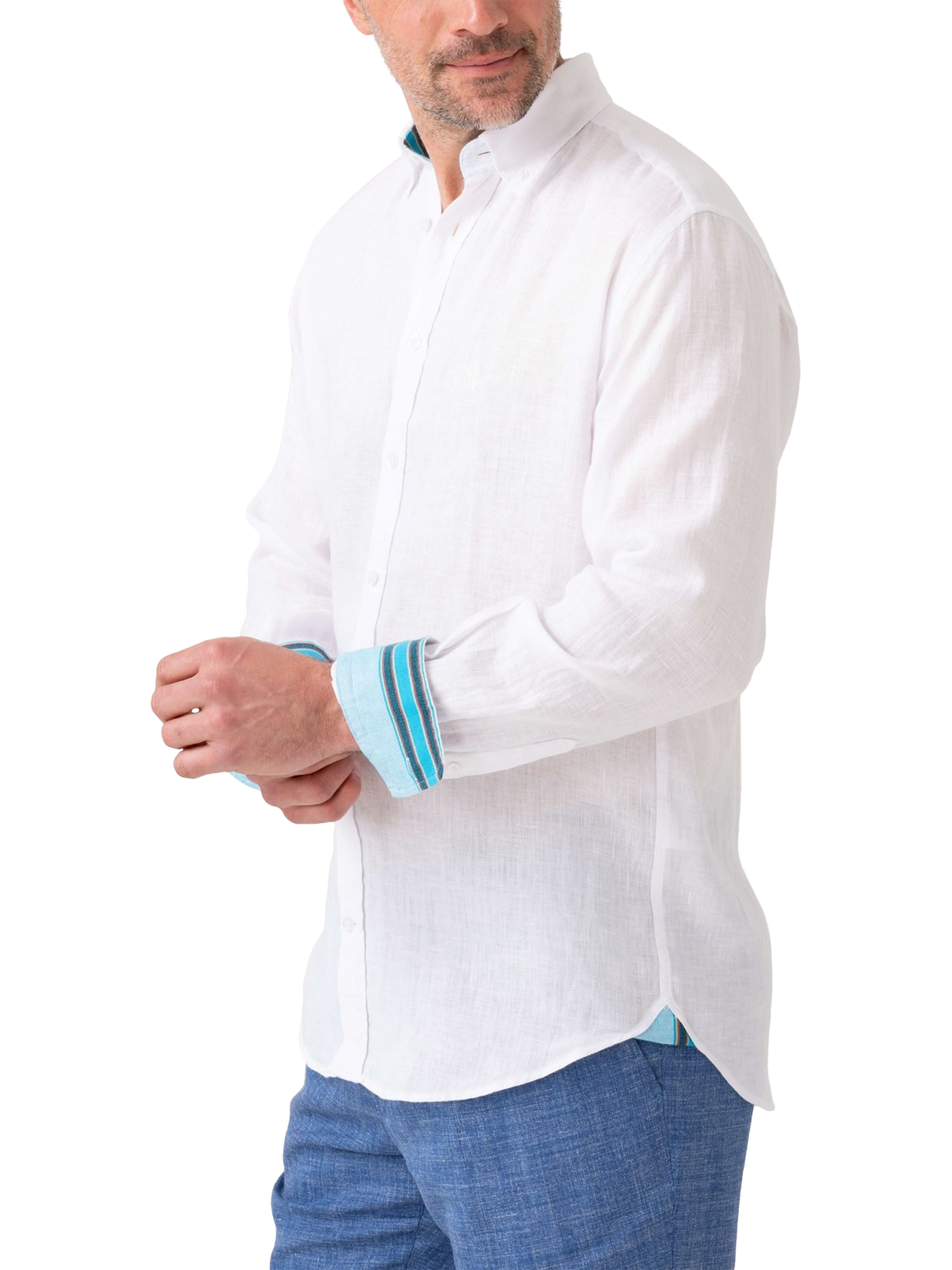 Bringing effortless style to summer city wandering and holiday adventures, this light and breezy linen shirt from KOY iadds a touch of African Kikoy detailing with striped under cuffs and is cut to a fluid fit that transitions from daytime escapades to after-dark soirées.