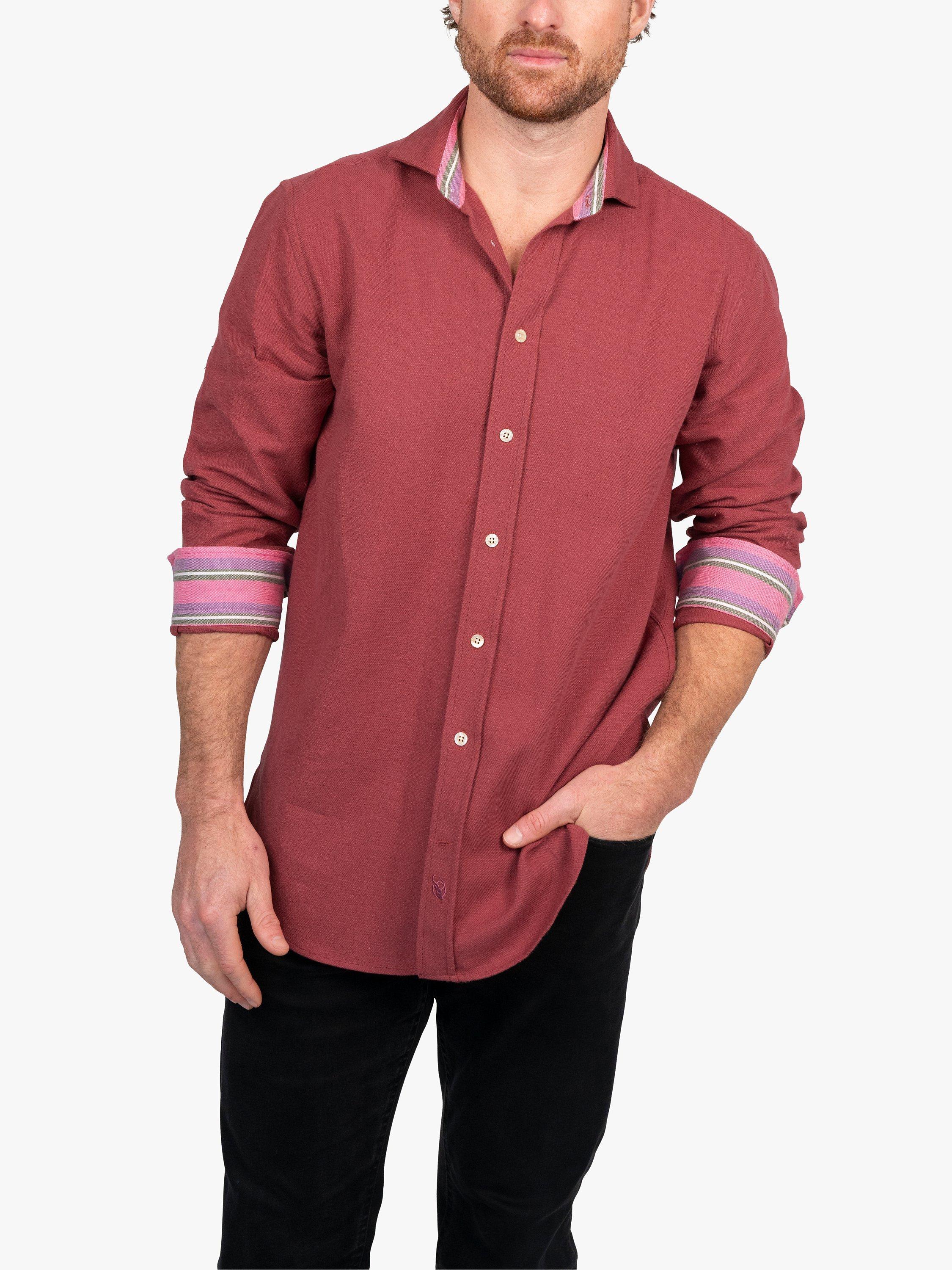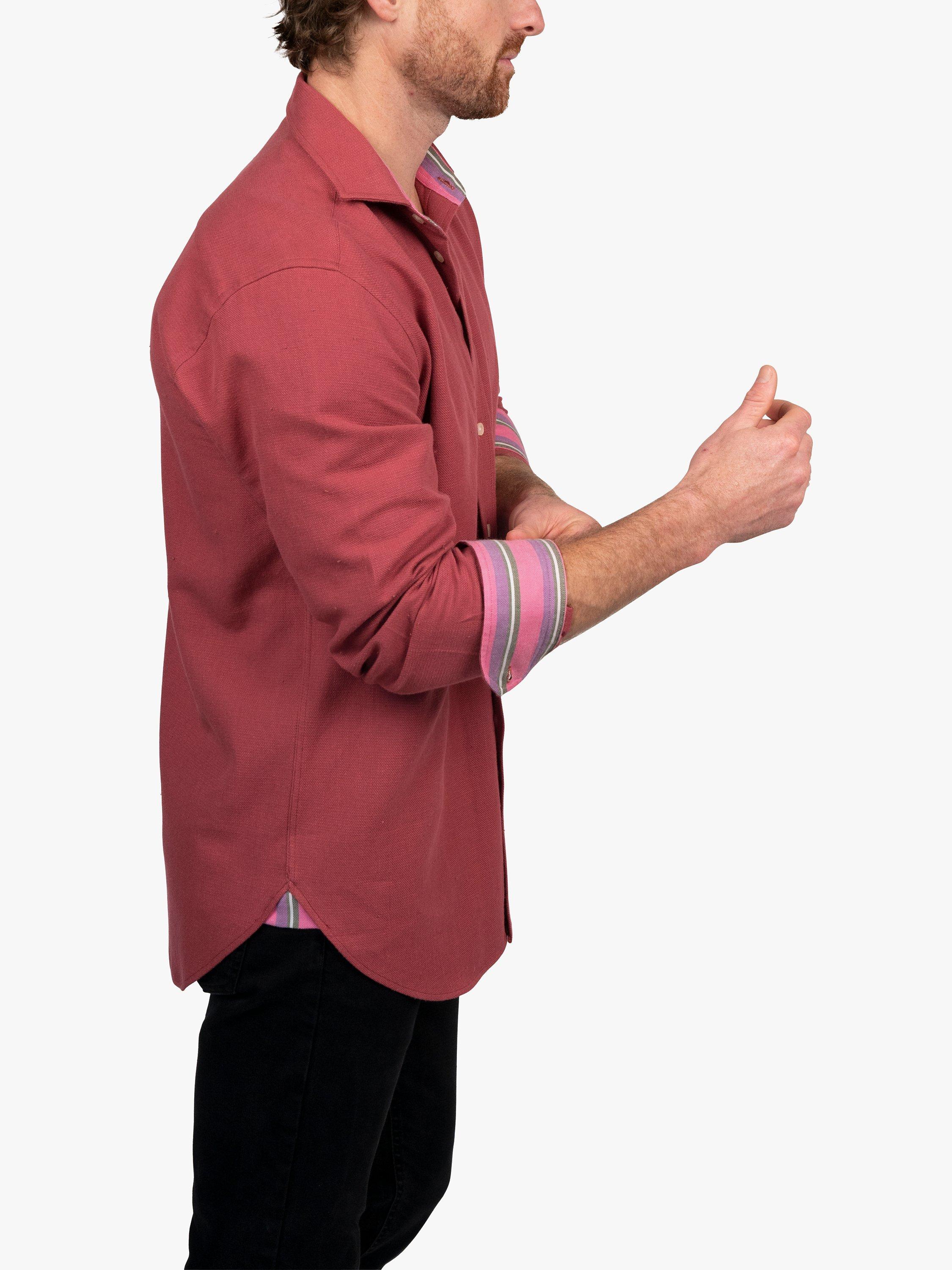 Offering a soft and durable handle, this crisp shirt from KOY has a touch of authentic African Kikoy striped detail and is cut to a fluid fit that transitions from daytime escapades to after-dark soirées.