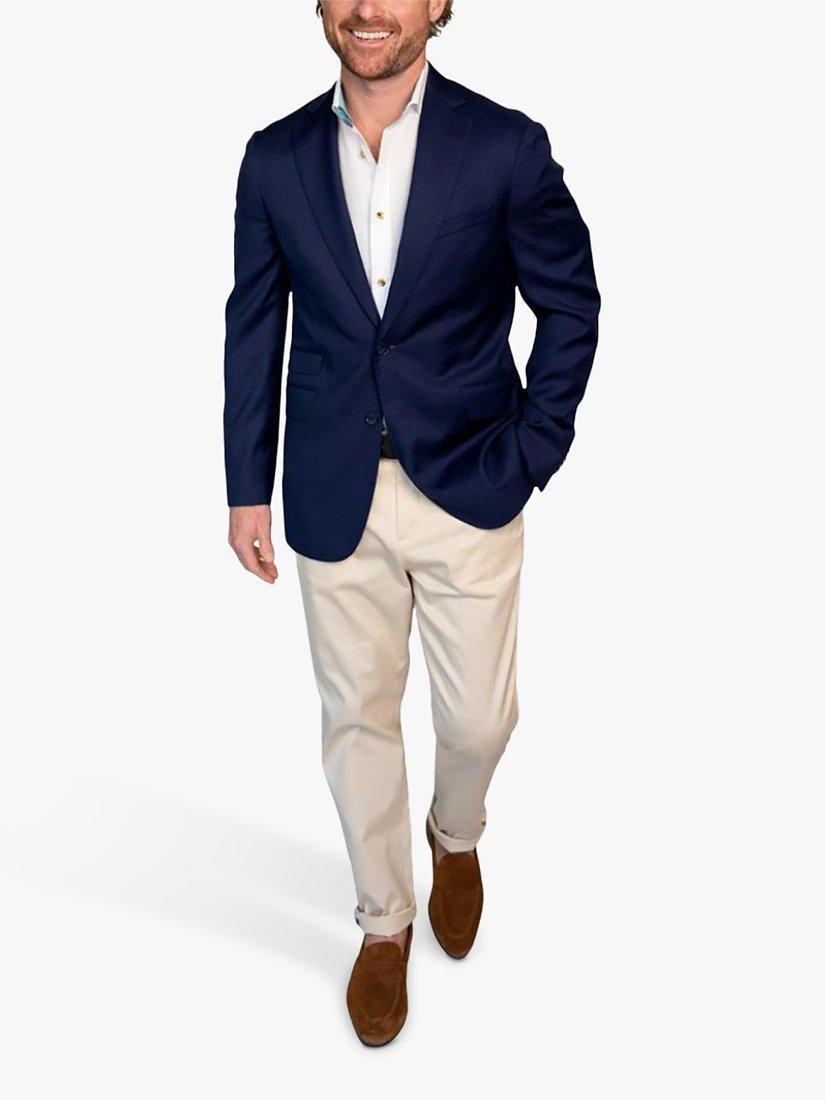This KOY blazer is combines pure British wool with subtle detailing of the brand's signature authentic Kenyan Kikoy fabric.