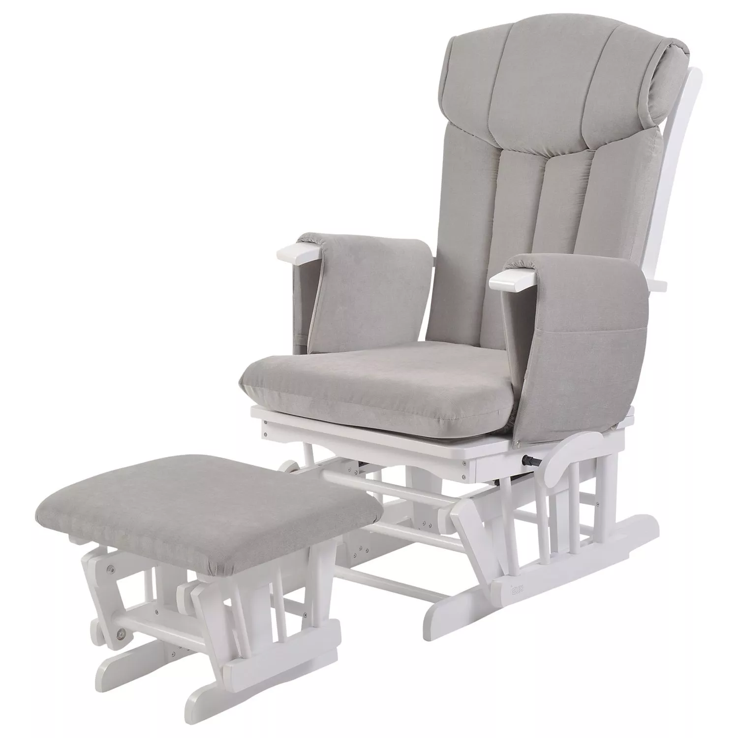 Kub's Chatsworth glider nursing chair is designed with seven reclining positions, so you can find the best position to feed your baby or simply enjoy a well-earned rest. This chair, which has a wooden base and soft cushions, features a sleigh backrest and a roomy wide seat, and it comes with a matching footstool for extra comfort.