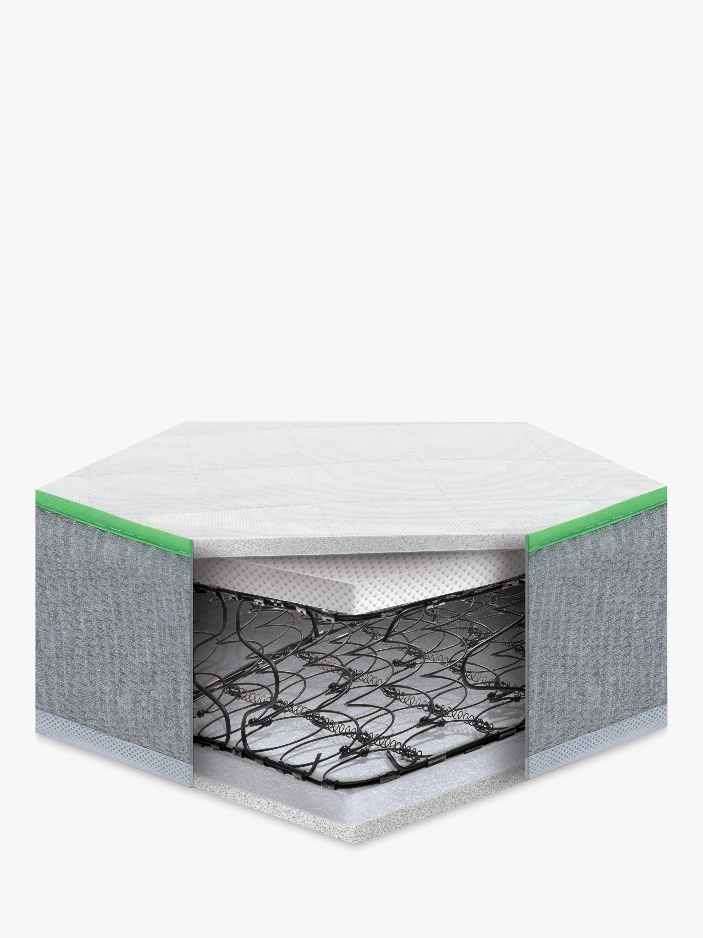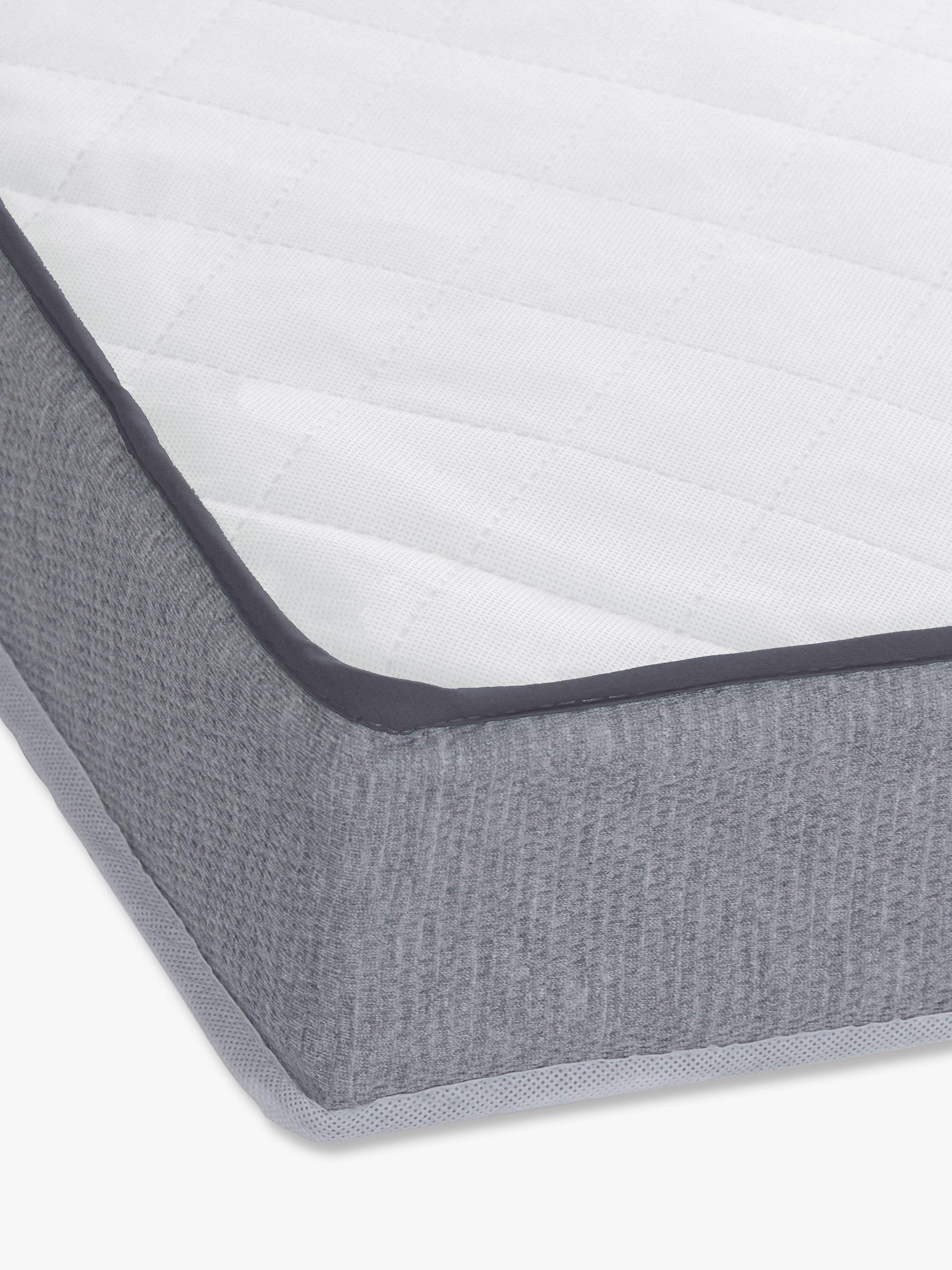 Handcrafted in Britain, this premium mattress combines responsive Sensi spring units with dent-resistant Eco fibre. It features an innovative dual-cover design - a water-repellent 'Innercare' layer protects the core, while the soft quilted outer cover is removable for easy cleaning. The unique open-cell structure adapts to your baby's temperature and shape for optimal comfort and breathability. Designed with your baby's safety in mind, this firm sleep surface follows recommended safe sleep guidelines.