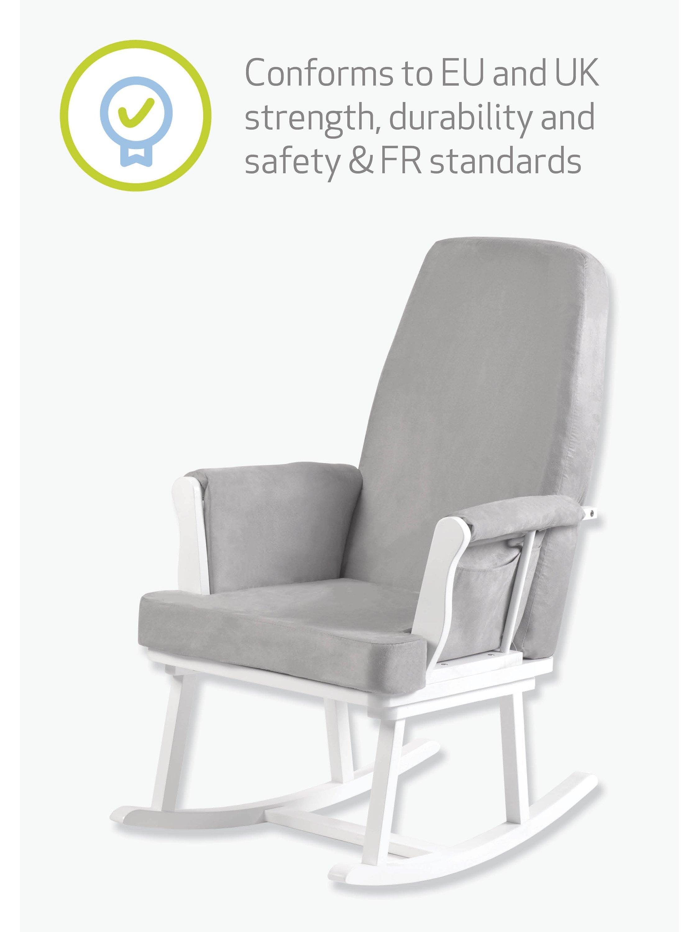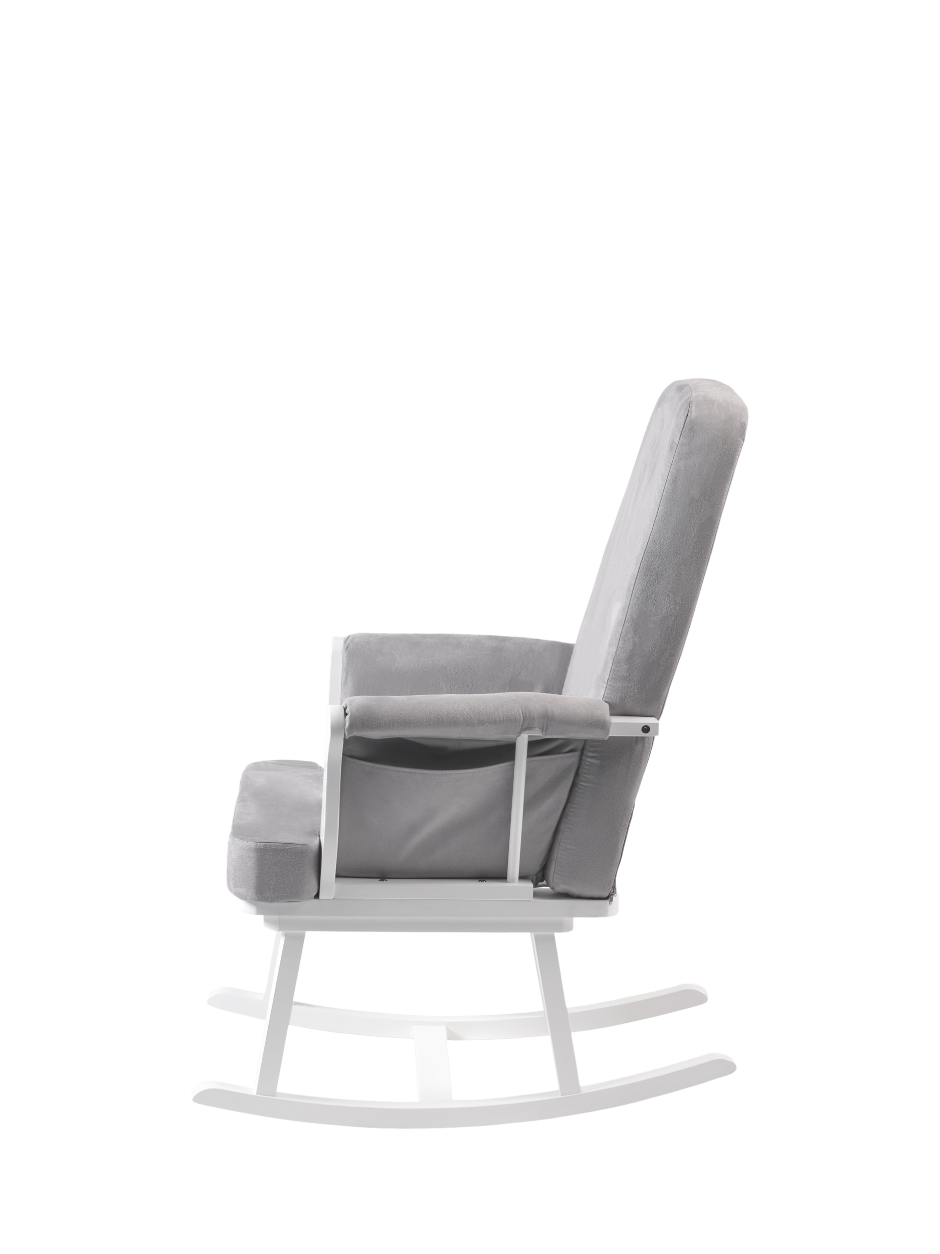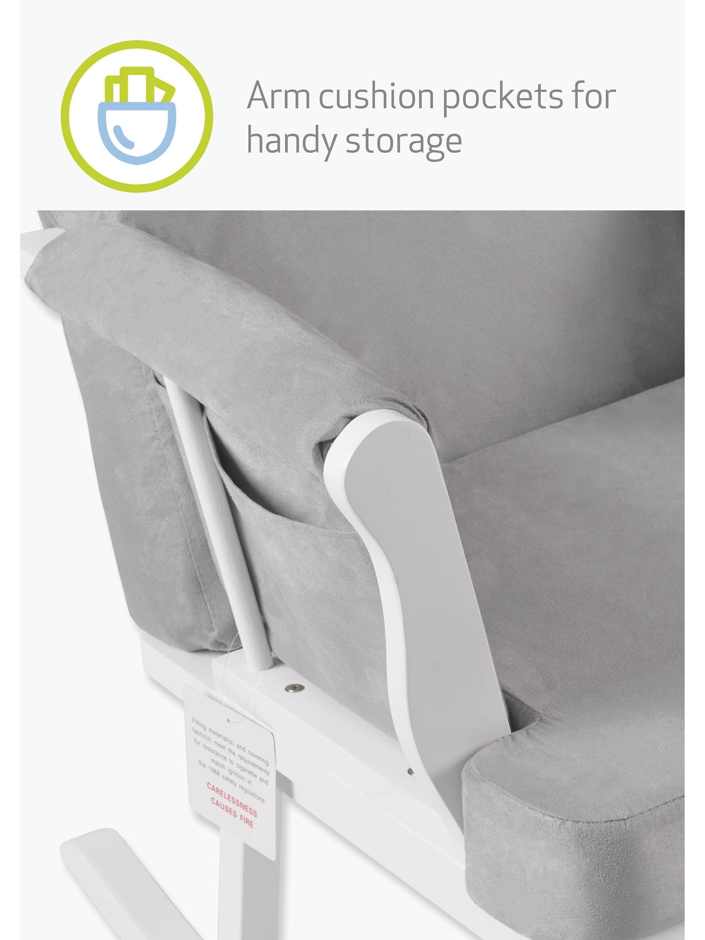 The contemporary sleek design is finished with comfortable soft microfibre fabric, making it perfect for rocking or relaxing in style and comfort. Made from solid wood and upholstered with coloured fabric, the chair also features convenient side pockets which are great for holding any essentials.