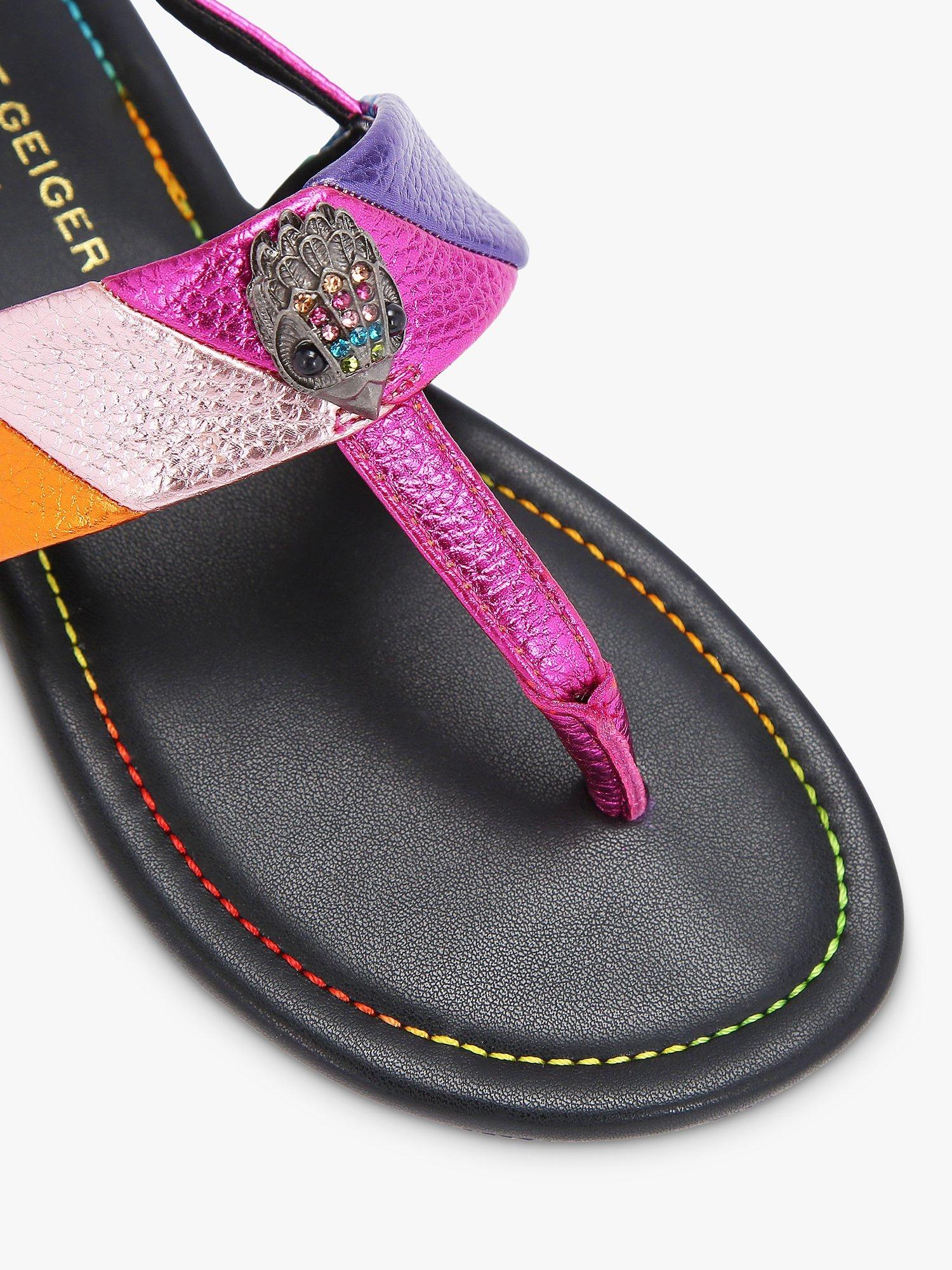 Kurt Geiger LondonKids' Mini Kensington Leather Flat T-Bar Sandals, Multi