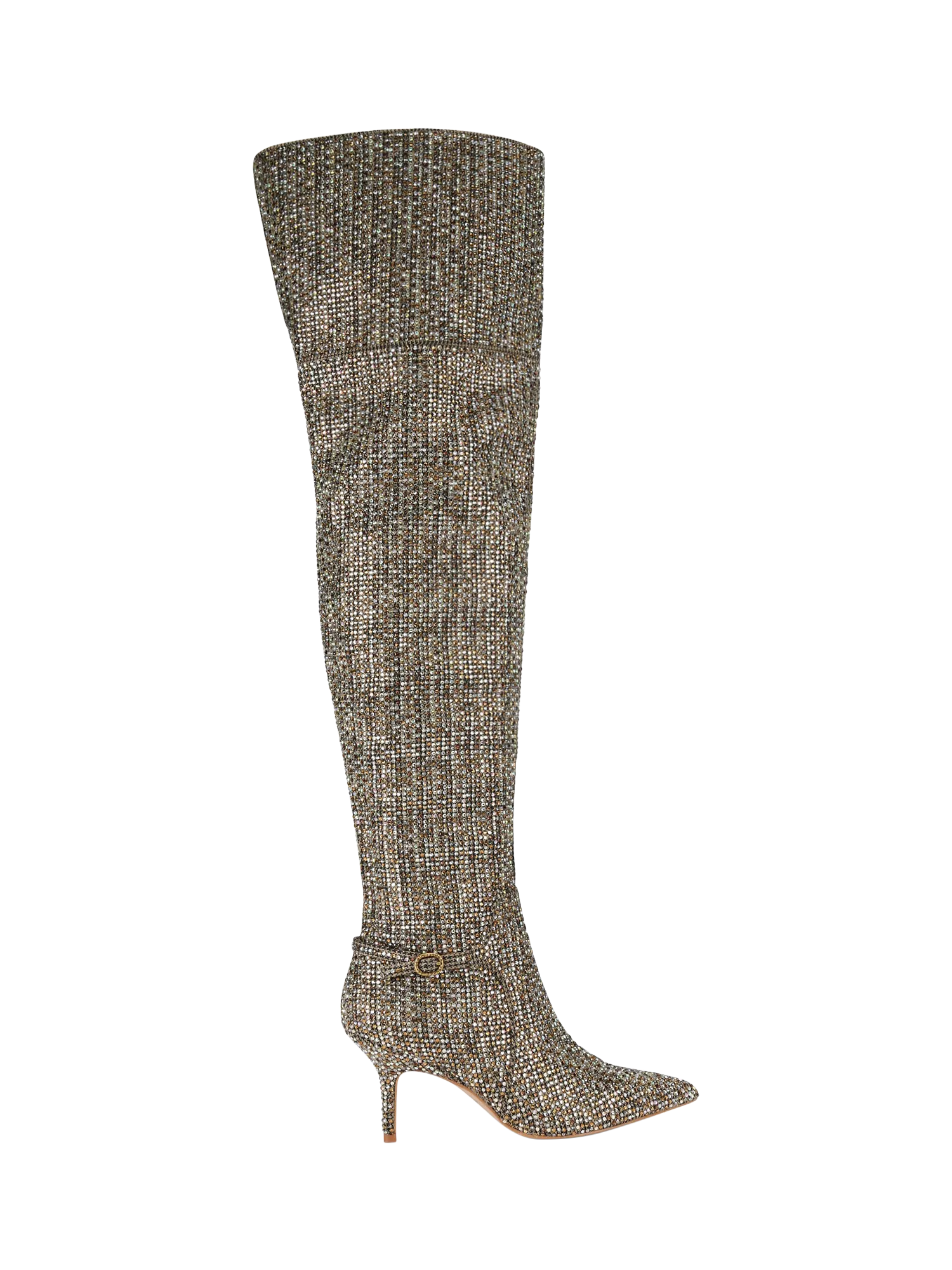 Kurt Geiger London over the knee boots. The pointed, closed toe and embellished design add a clever twist, while the stiletto heel ensures you move confidently and comfortably.