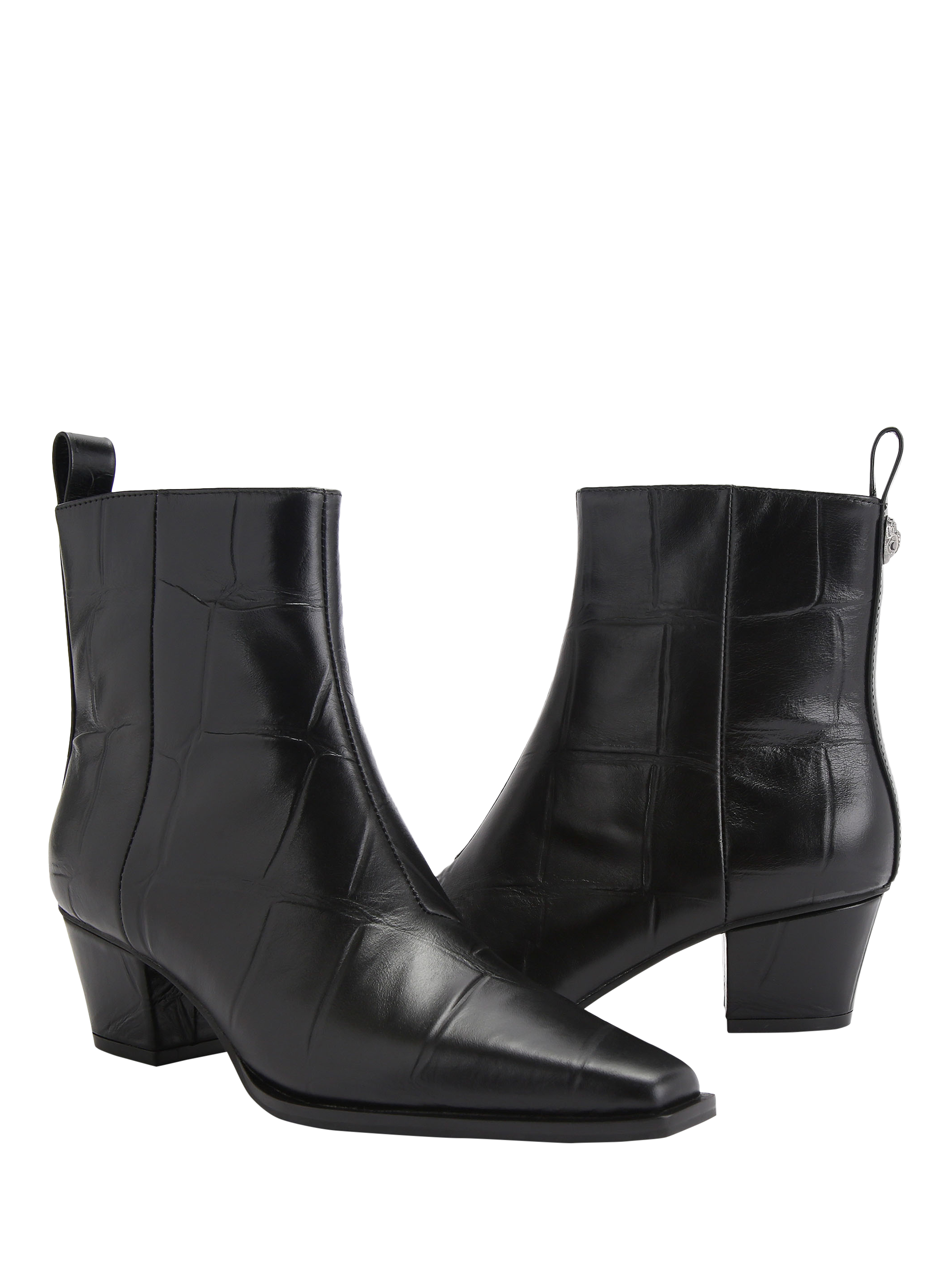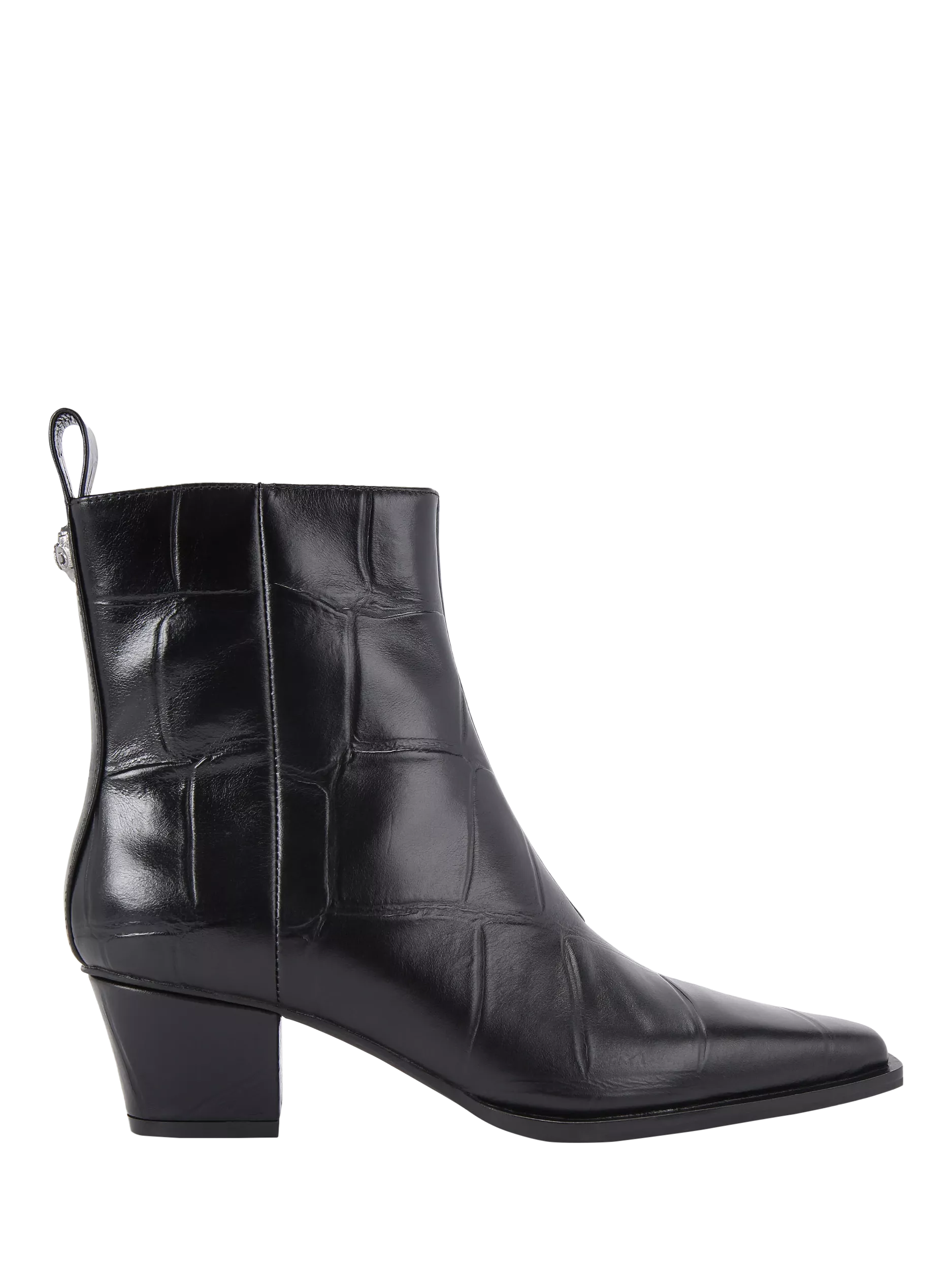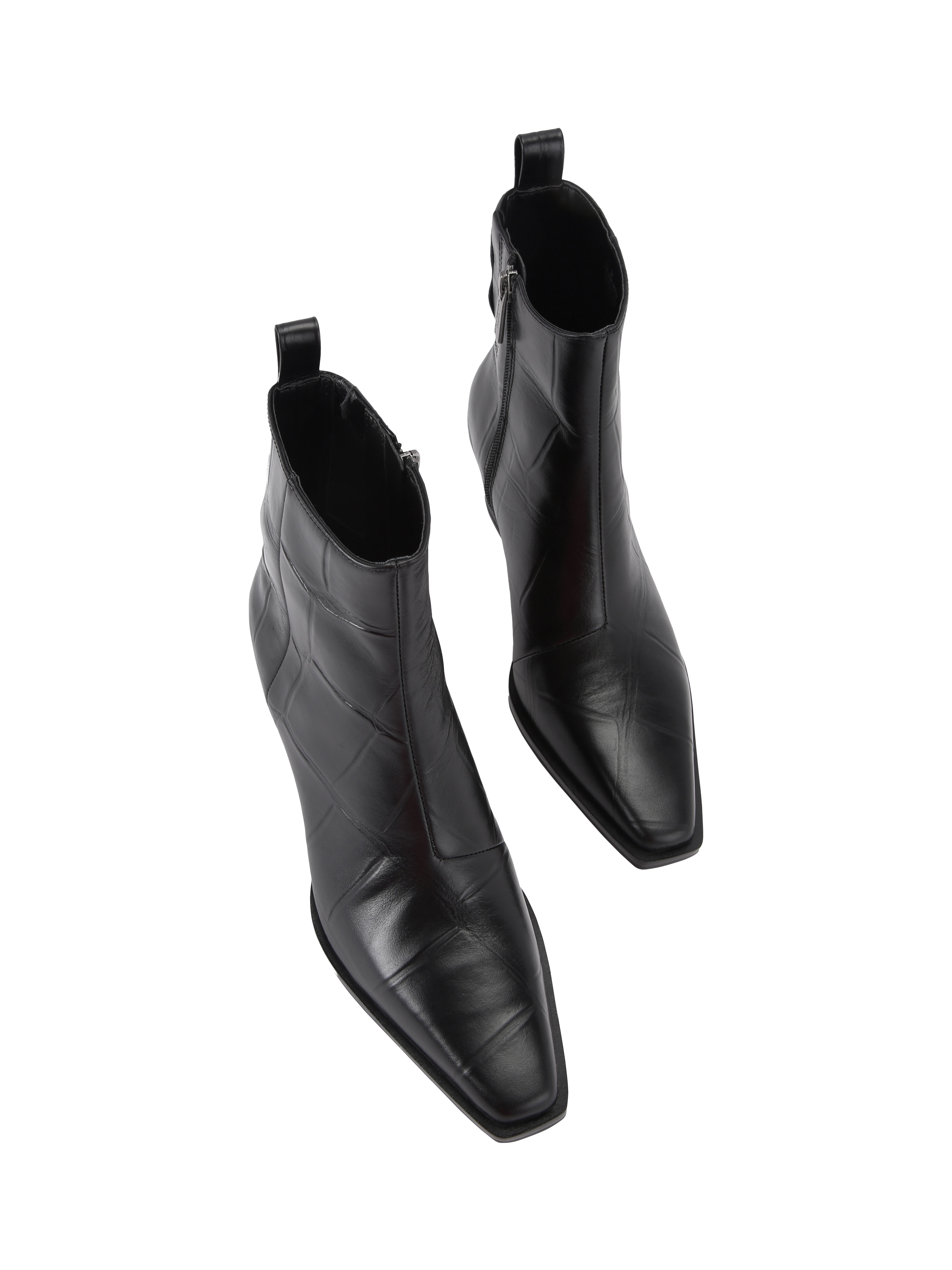 Step confidently into your day with these pointed toe ankle boots in a croc-effect, featuring a 5cm cone heel for all-day ease and flair. Effortlessly pair them with your favourite looks for any occasion.