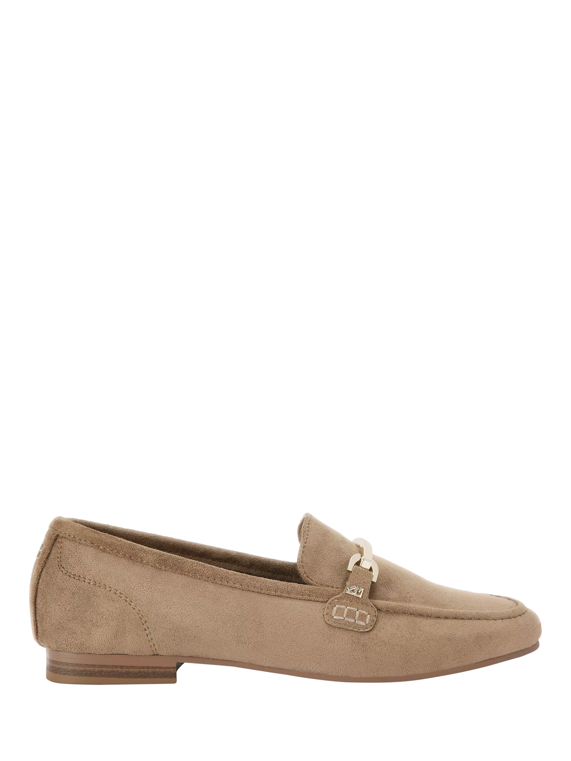 These classic slip-on loafers from Kurt Geiger London are designed with an antiqued brass horse bit chain across the toe and small KG Kurt Geiger stud.