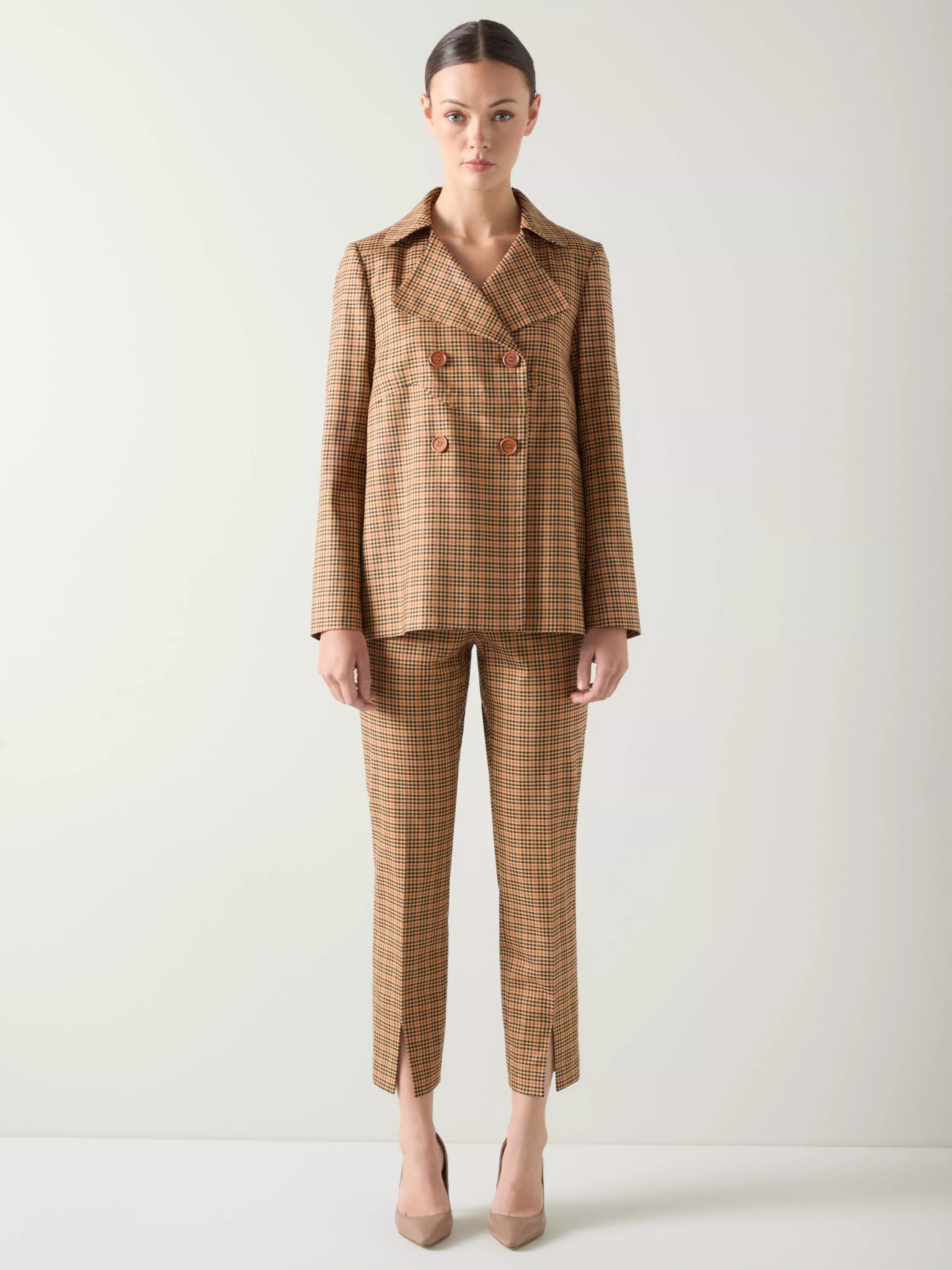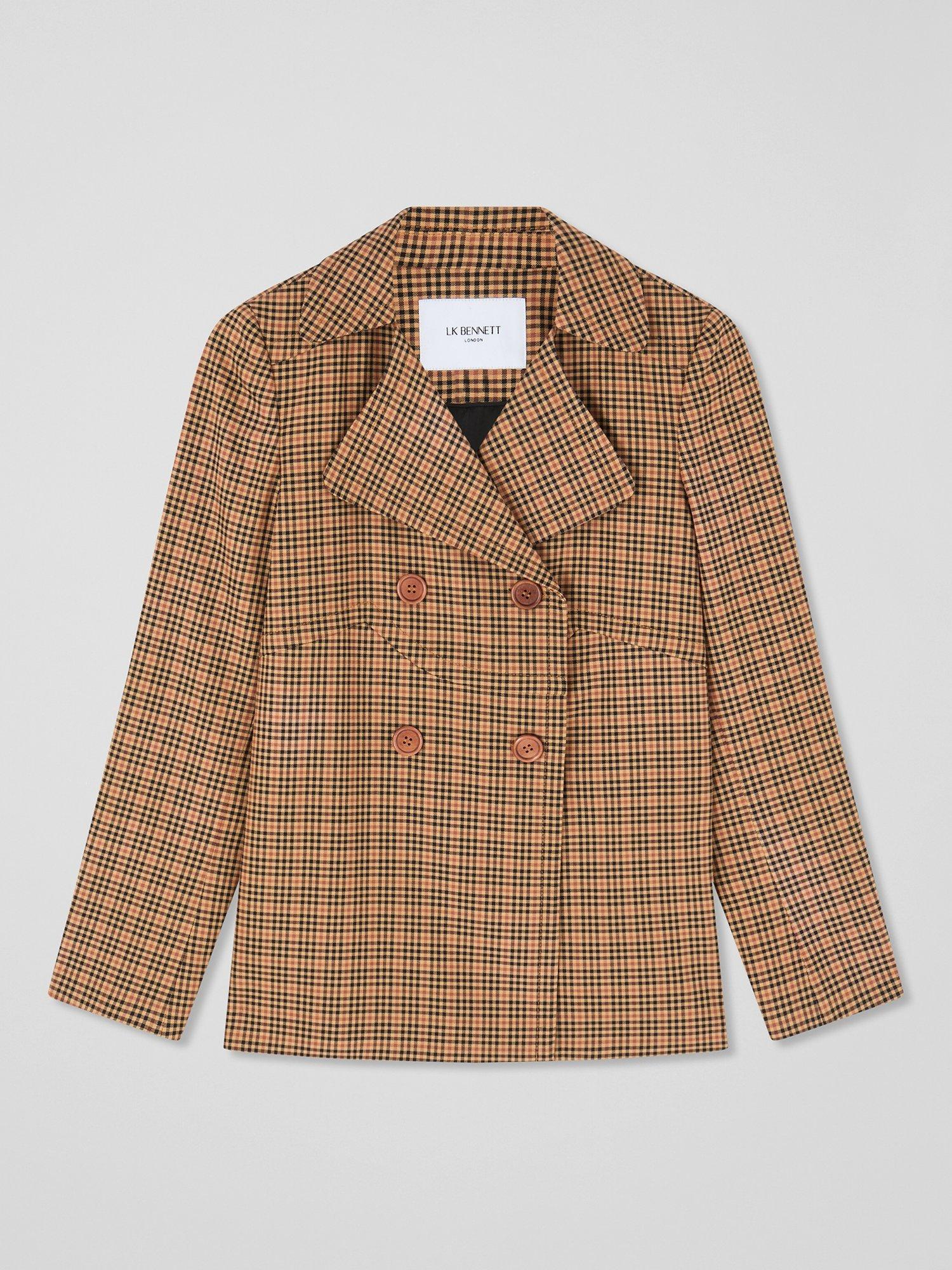 The Amber jacket brings smart casual style to life with its beautiful check pattern. This double-breasted outerwear feels soft against your skin while moving with you all day. The classic collar and long sleeves create a timeless look for your wardrobe. Pair with tailored trousers for work or dress down with jeans for weekend wear. Your new go-to coat that effortlessly completes any outfit.