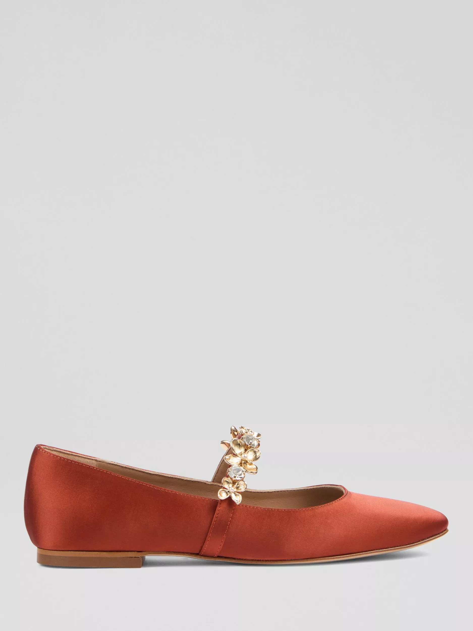 Meet Amber, L.K.Bennett's elegant flat shoe that also features floral embellishments that give the style a distinctly feminine look and feel.