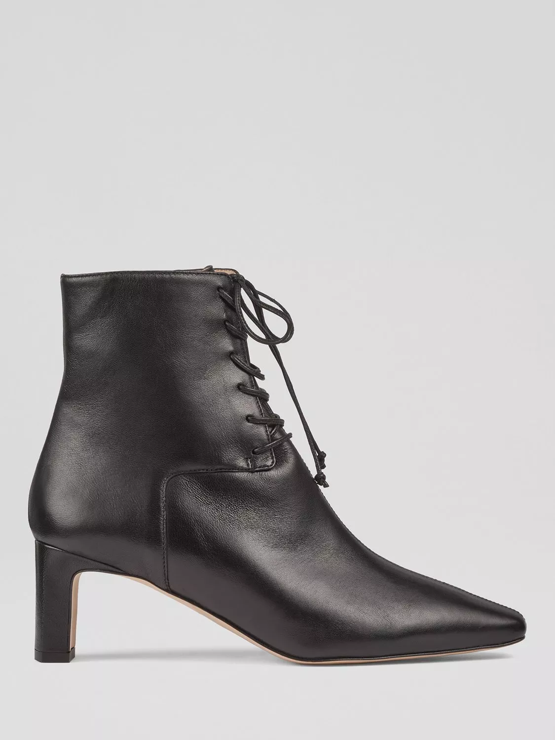 These Betty lace-up block heel boots offer elegance in supple leather. This Italian-crafted ankle boot features a contemporary square toe and secure lacing system that provides both style and stability.