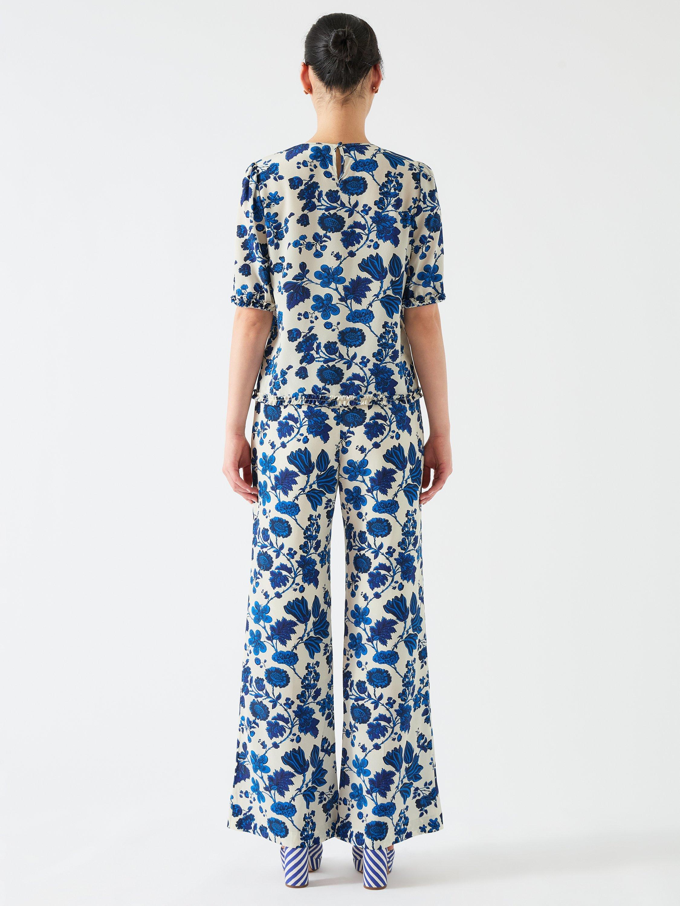 Presenting the Brielle trouser, a limited edition masterpiece crafted from pure silk, adorned with an in-house designed floral print. In a birch and blue multi-colour palette, these full-length straight trousers are perfect for a smart-casual look, befitting a garden brunch as much as a weekend art gallery stroll. Pair with a crisp white blouse and classic loafers for an effortlessly stylish ensemble.