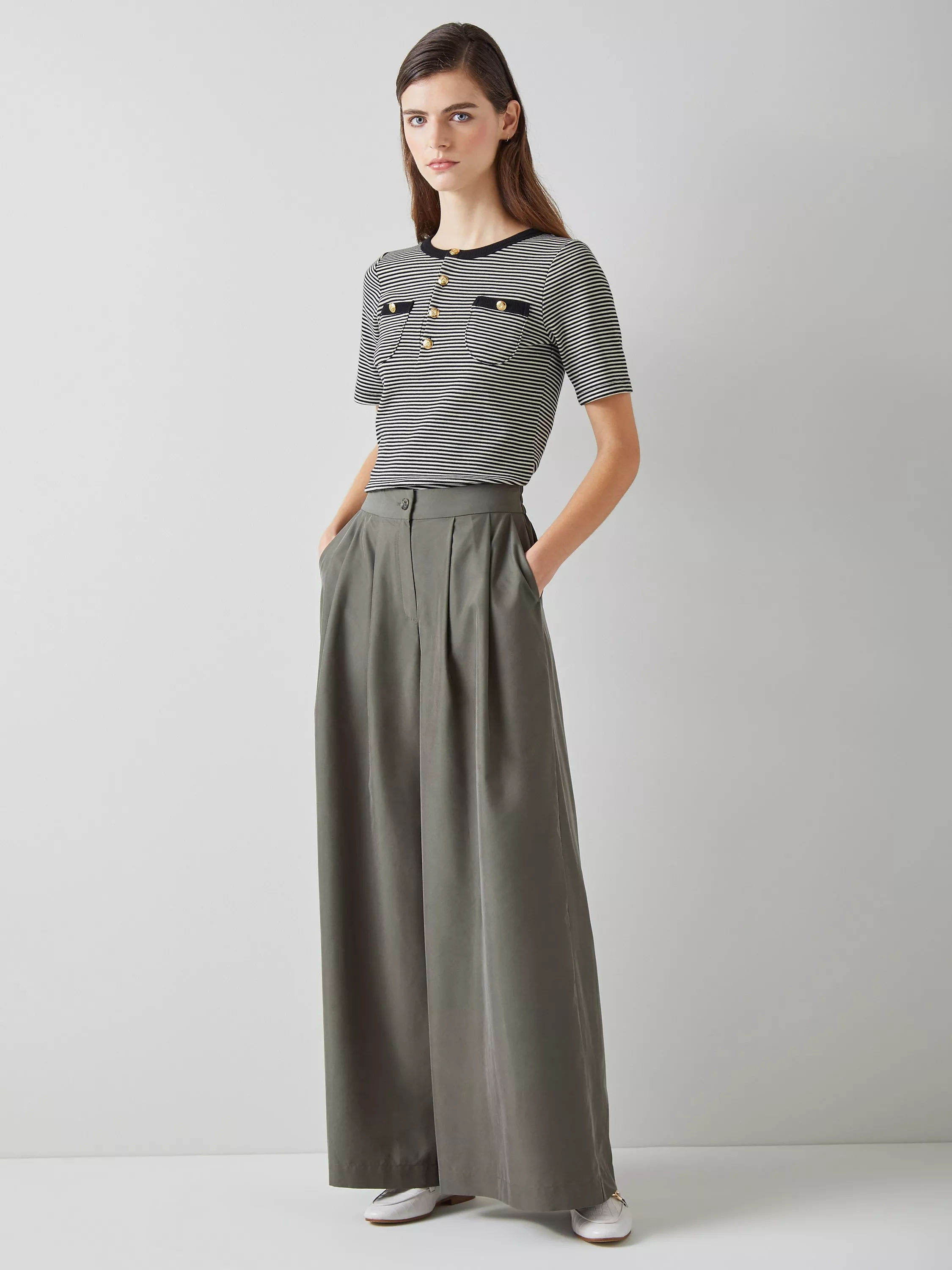 A striped tee is a spring wardrobe must-have, and they don't come cuter than the Charlie T-shirt. Crafted from a super-soft cotton with a hint of stretch in skinny stripes, it has a round neck with a trim, short sleeves, a half placket of gold buttons, small patch pockets with matching gold button detail, and a classic fit. Tuck it into tailored trousers, a pair of jeans or go really sailor-inspired with shorts.