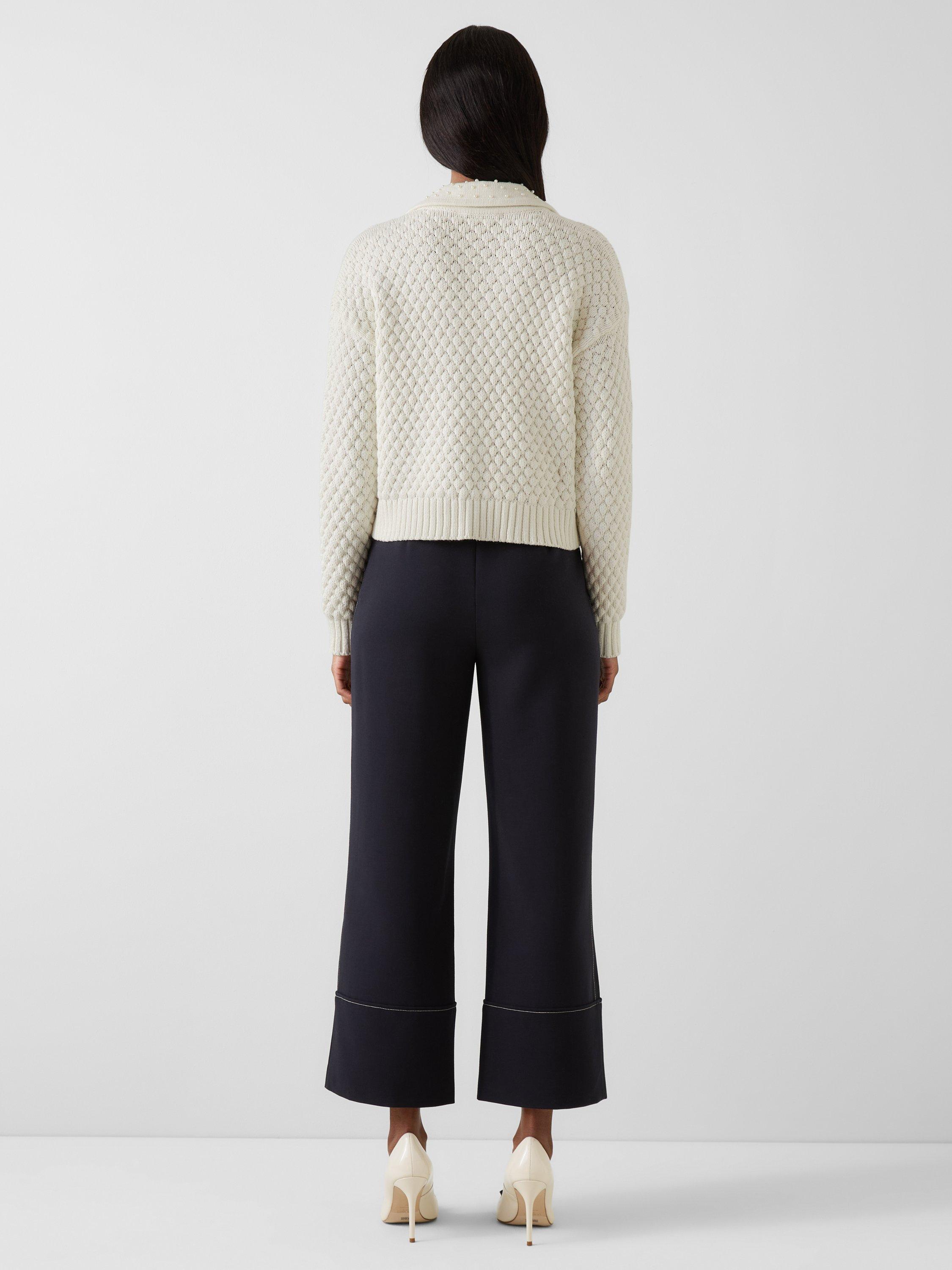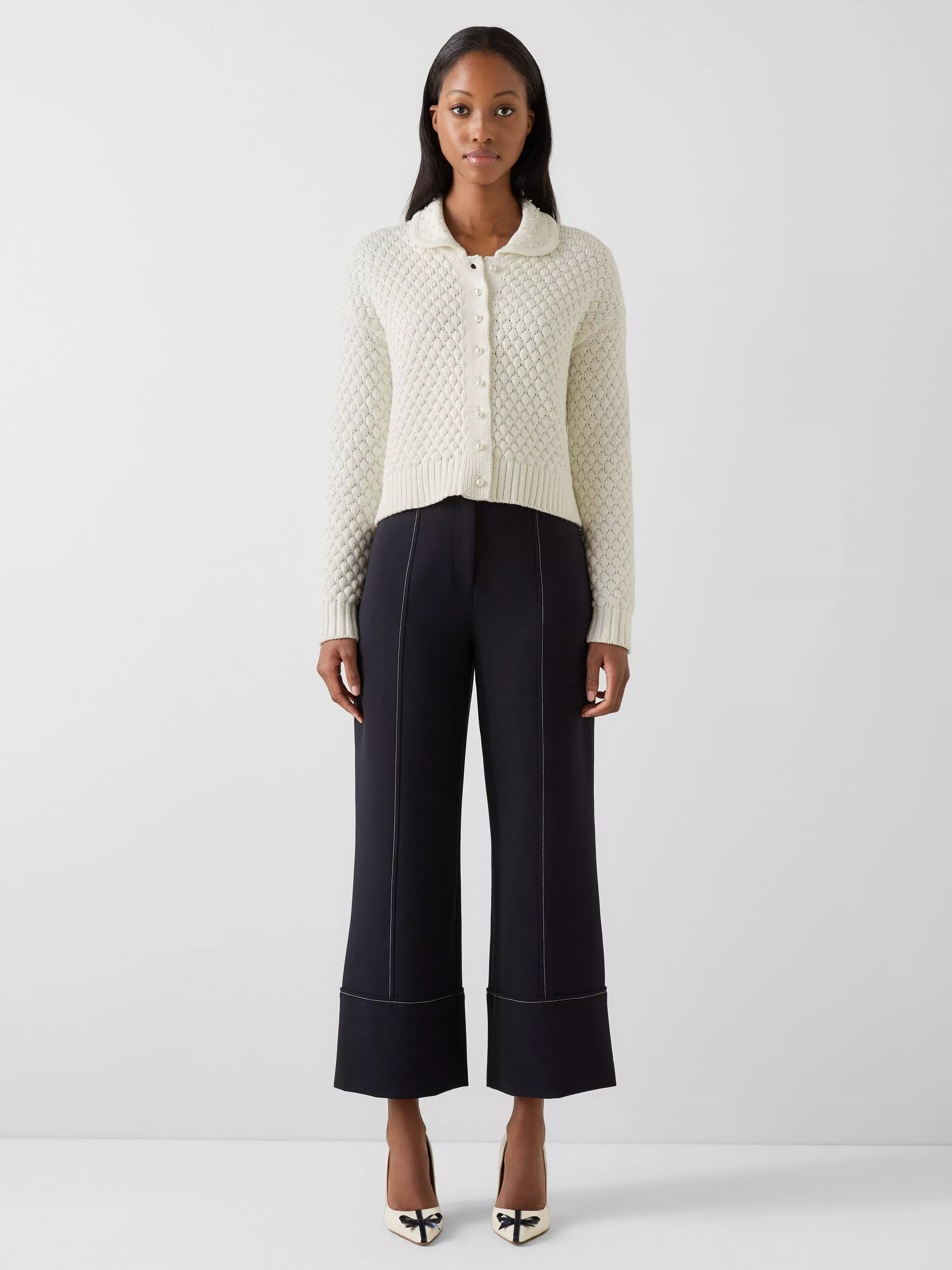 Introducing the Clo cardigan, a refined knitted jacket. This button-through design features faux pearl buttons, adding elegance to its clean silhouette. The classic collar and long sleeves create a polished look that transitions effortlessly from day to evening. Style this cardigan over a silk camisole with tailored trousers for work, or layer over a floral dress for brunch. The Clo's lightweight cotton makes it perfect for year-round wear, completing any outfit.