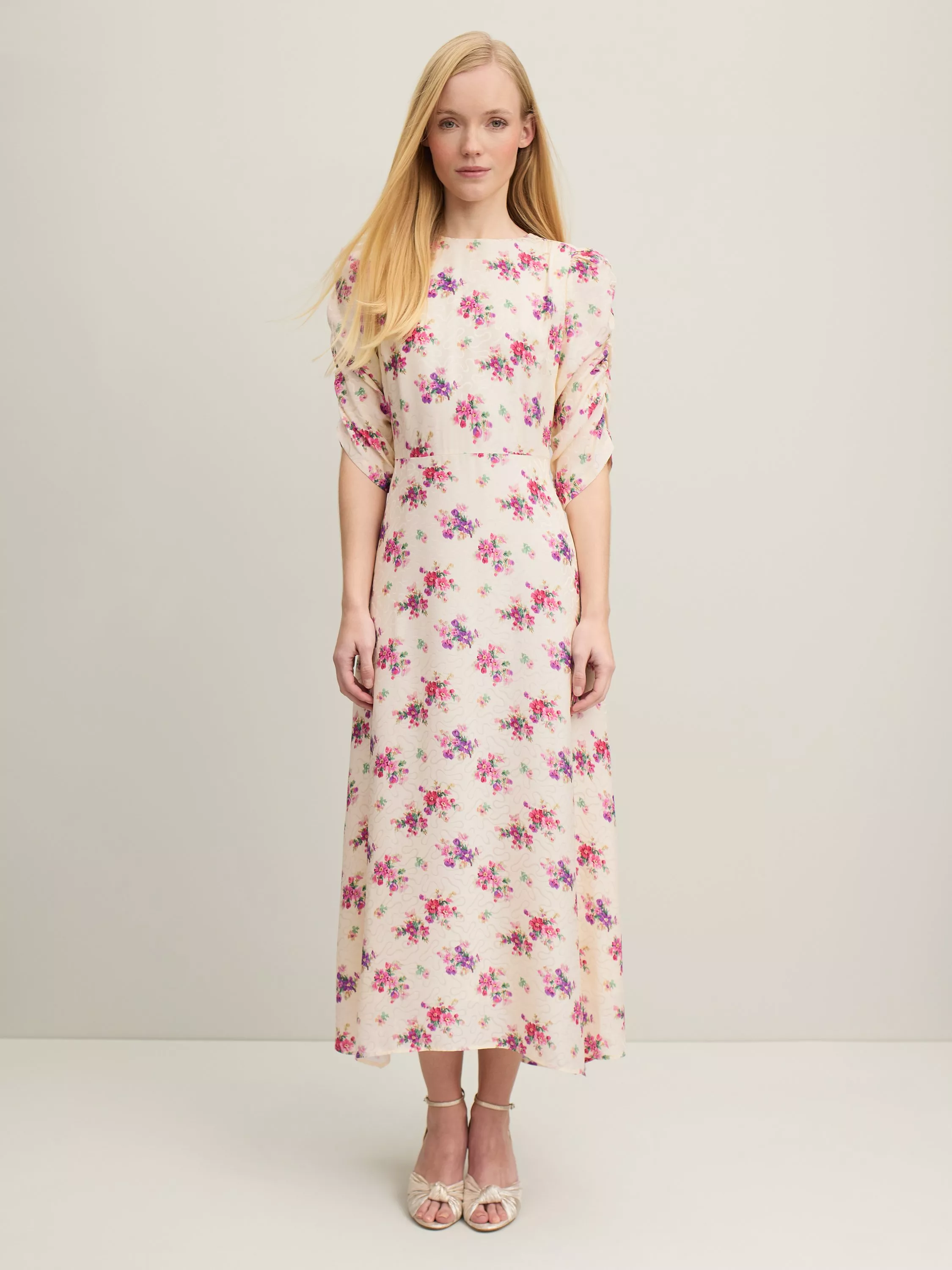 L.K.BennettDelilah Floral Bouquet Print Jacquard Silk Midi Dress, Cream/Multi