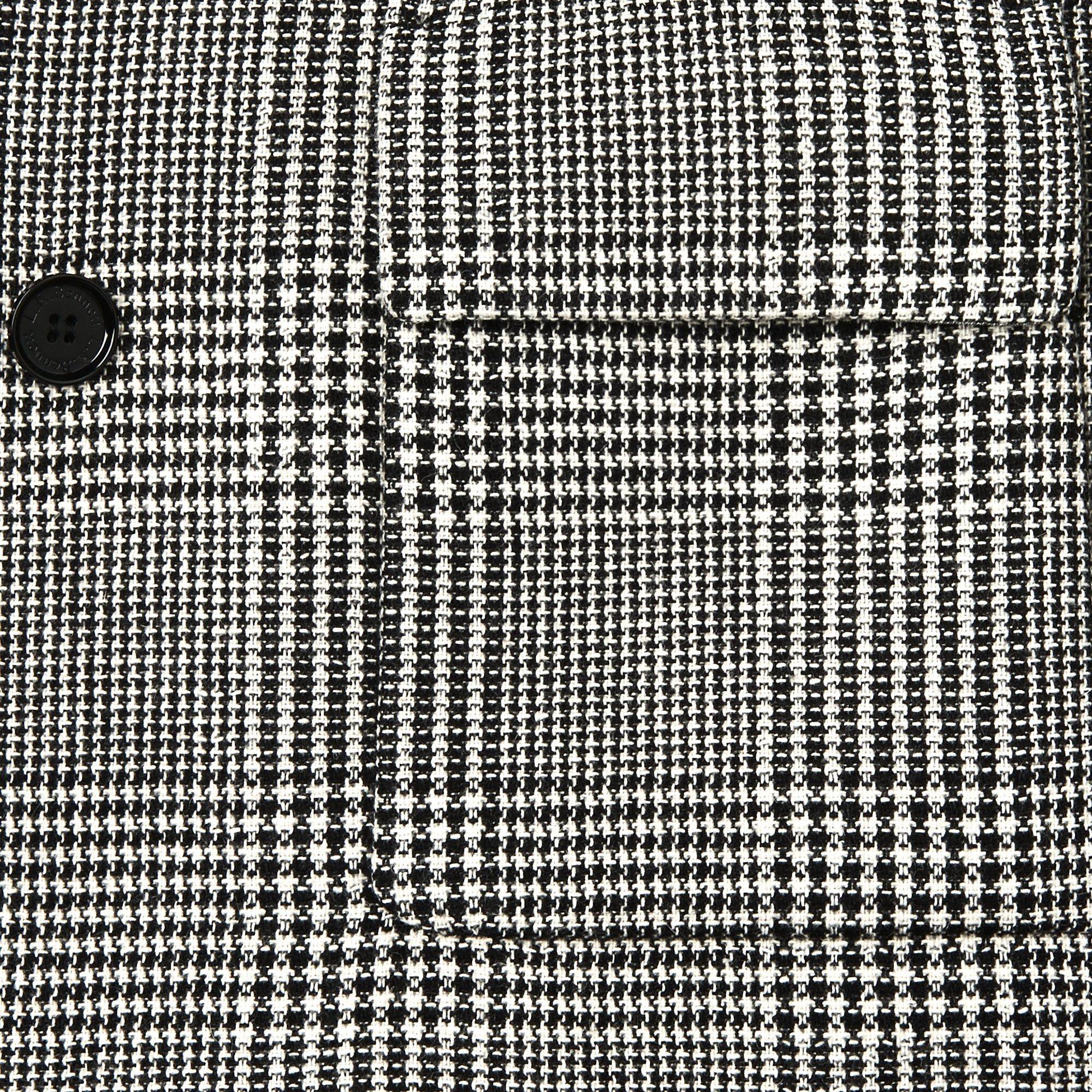 Cut from a fine houndstooth weave in virgin wool, its sleek and tailored silhouette is designed with a high crew neckline, concealed button-down front and two useful flap pockets to the front that boast a military-inspired aesthetic.